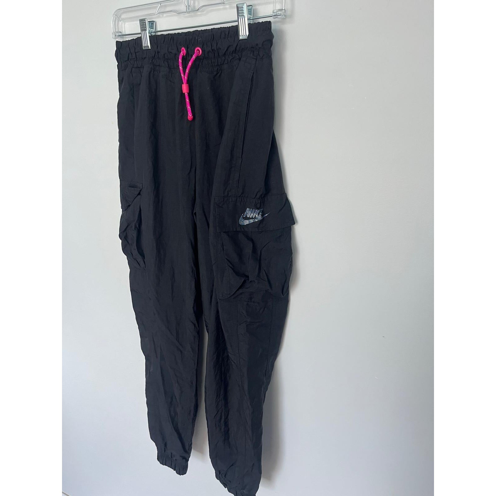 Nike Cargo Pants Women XS Black Nylon Elastic Waist Pockets Jogger Style