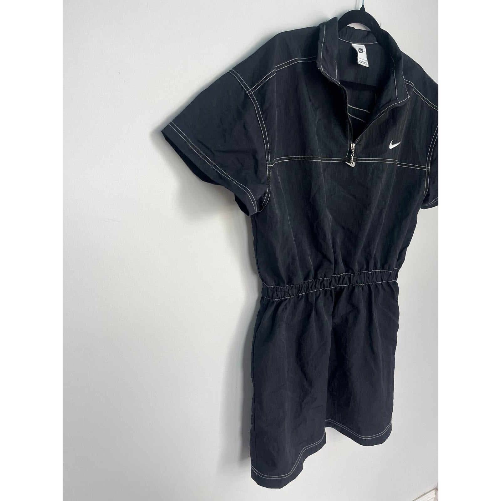 Nike Quarter Zip Mini Dress Women L Black Athletic Dress With Contrast Stitching