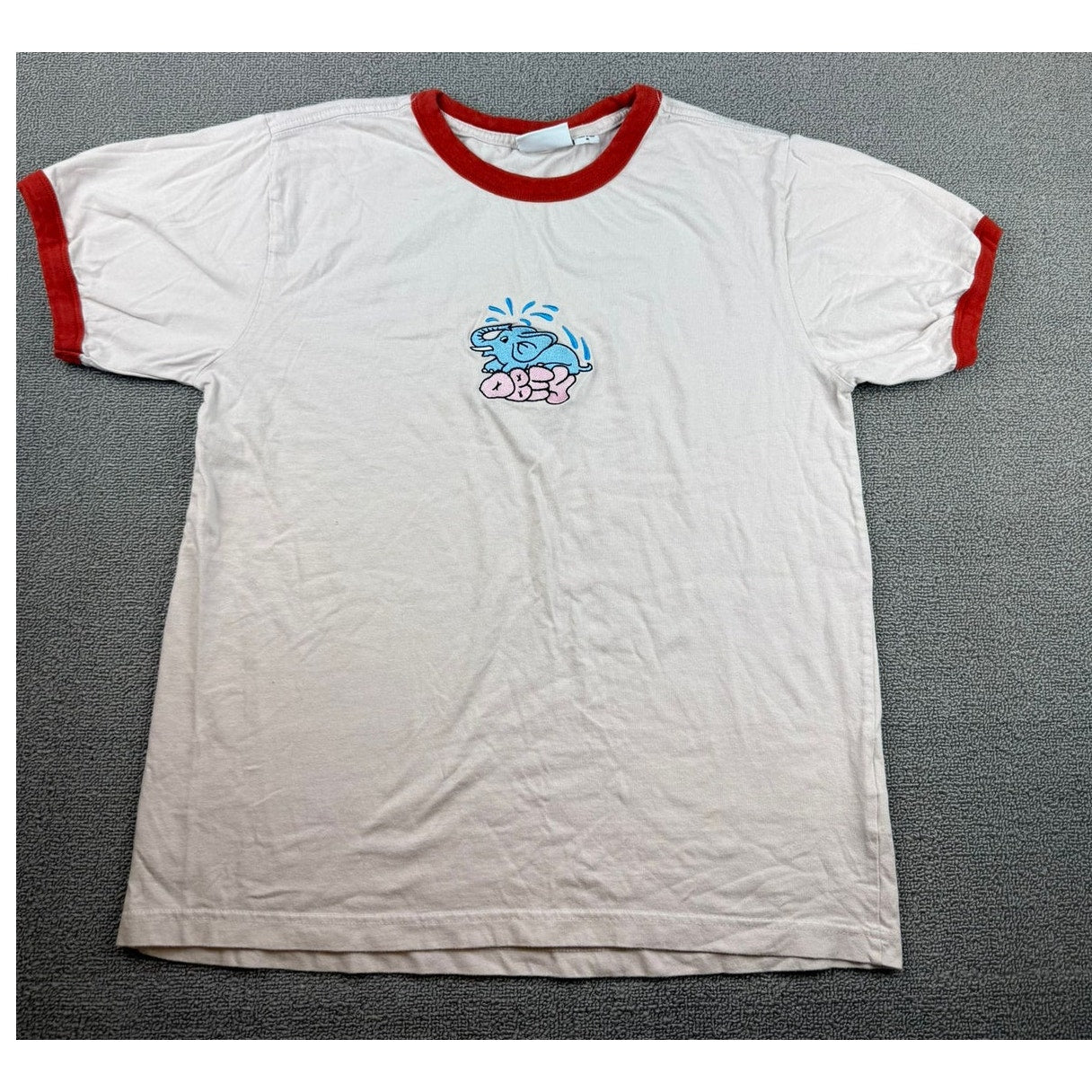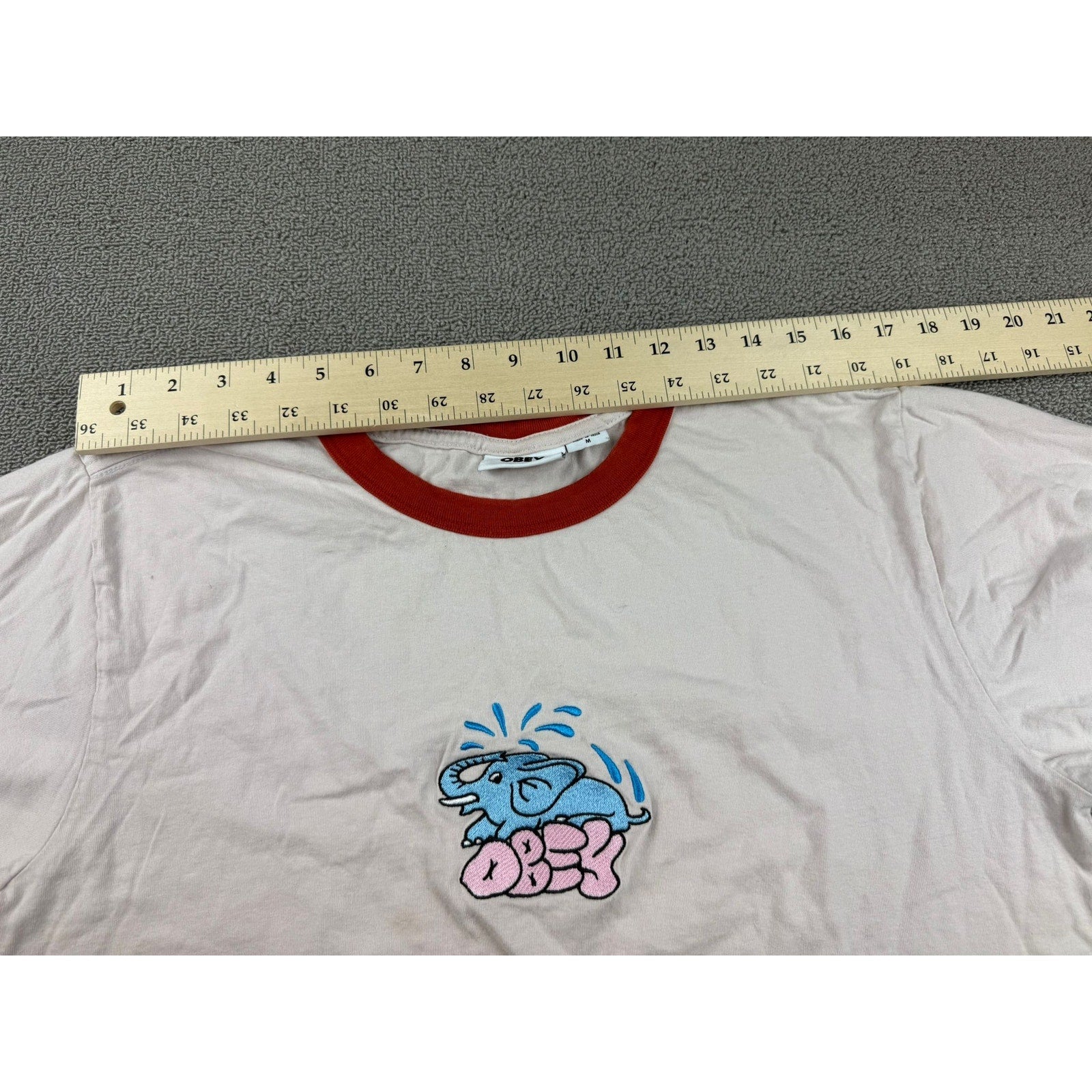 Obey Men Medium White Red Ringer T-Shirt Graphic Streetwear Casual Top