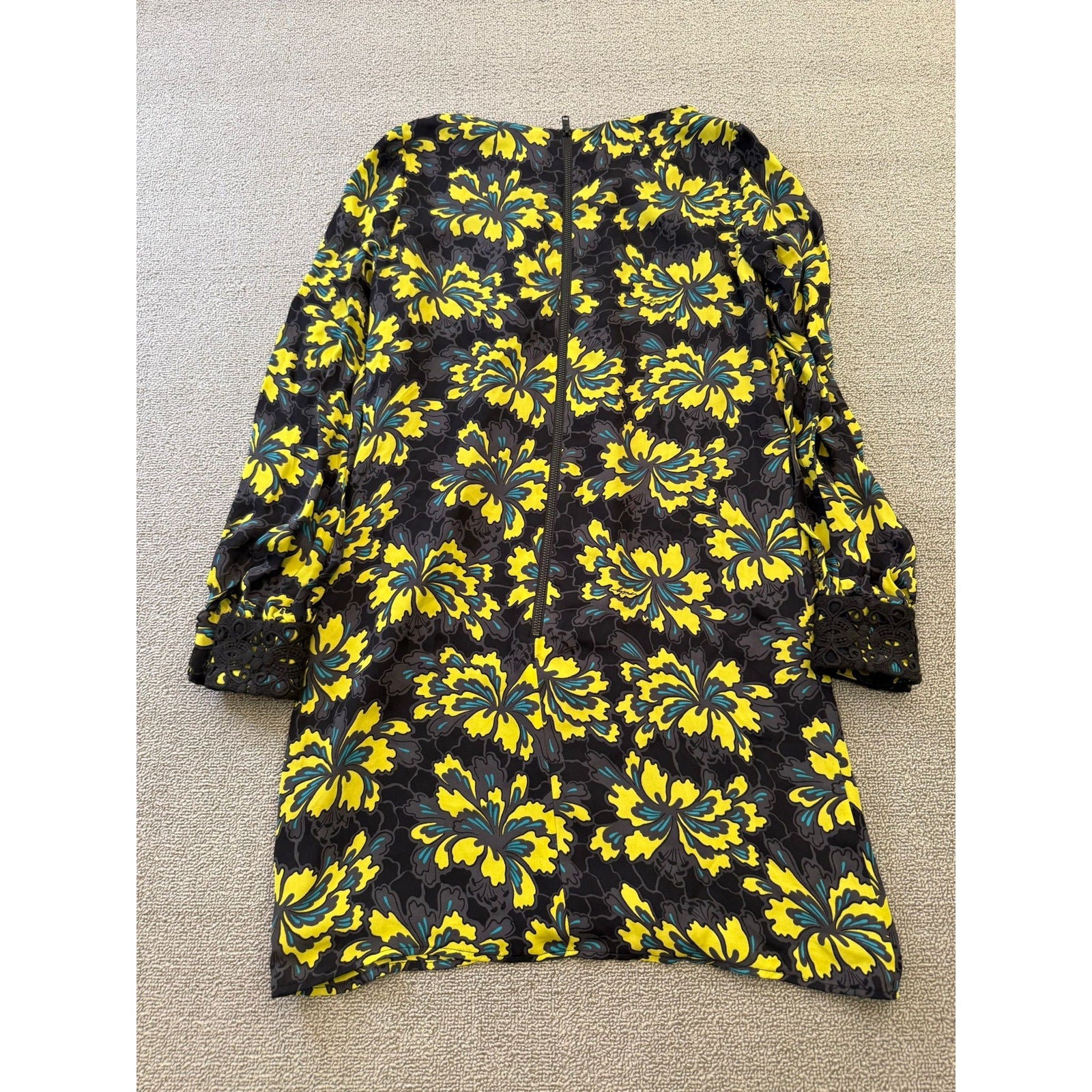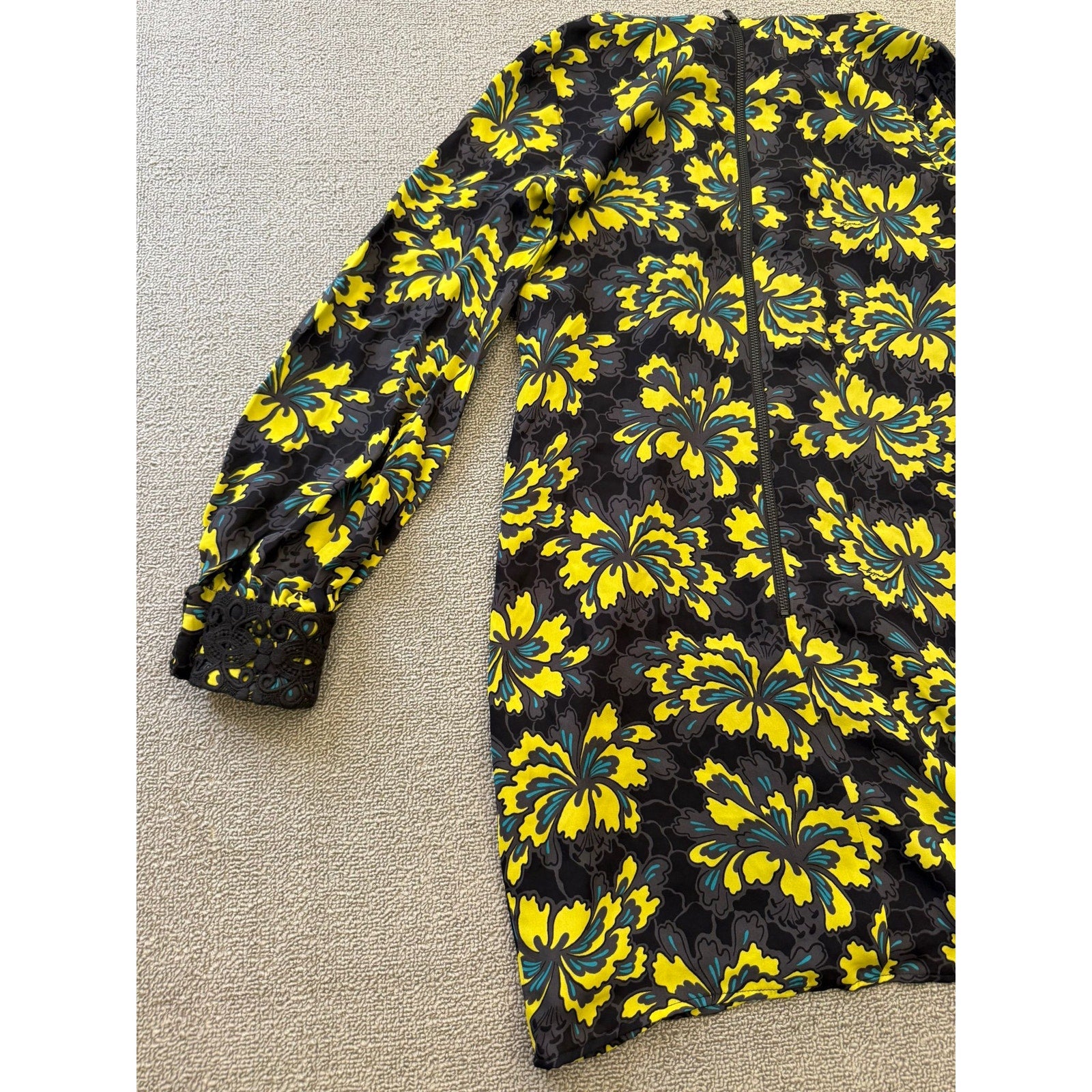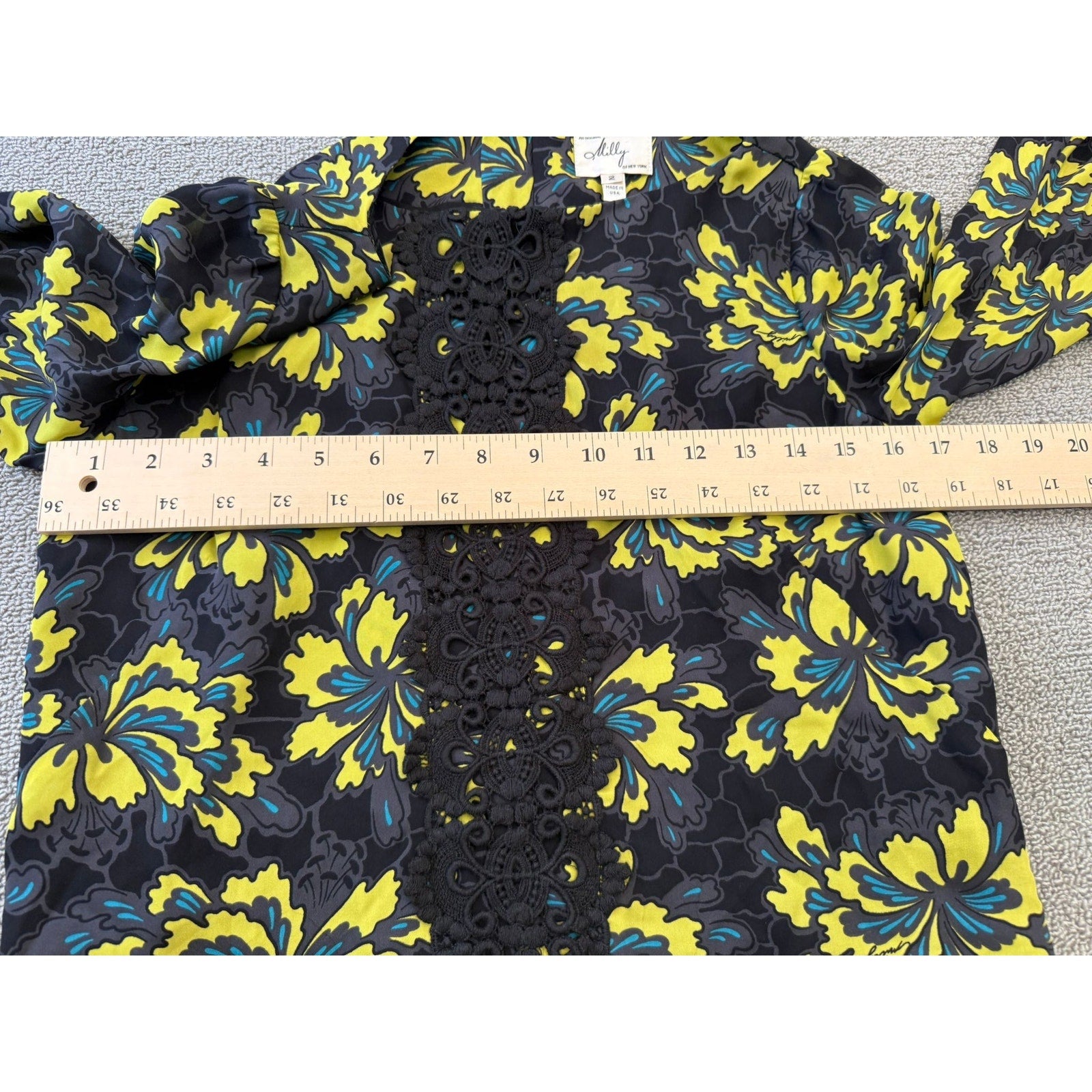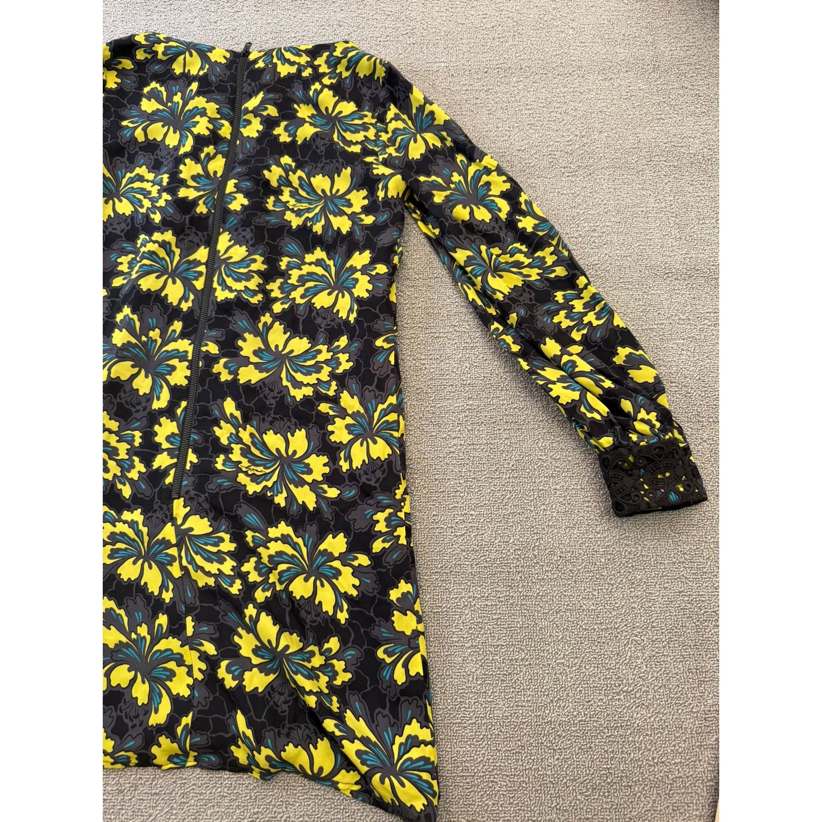 Original Milly Women's Size 2 Black Yellow Floral Mini Dress Long Sleeve