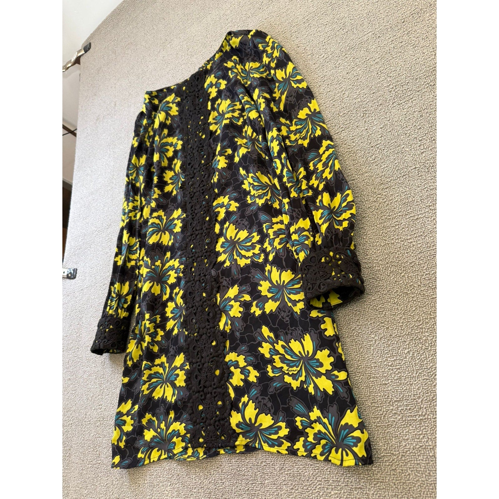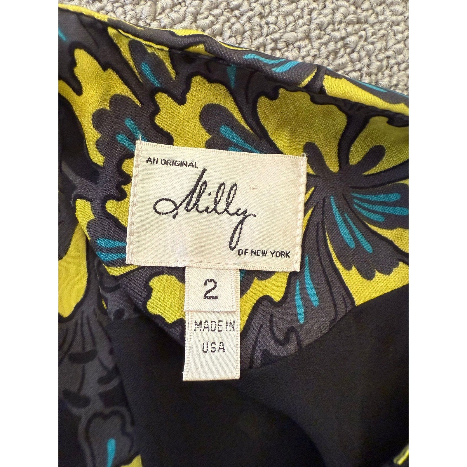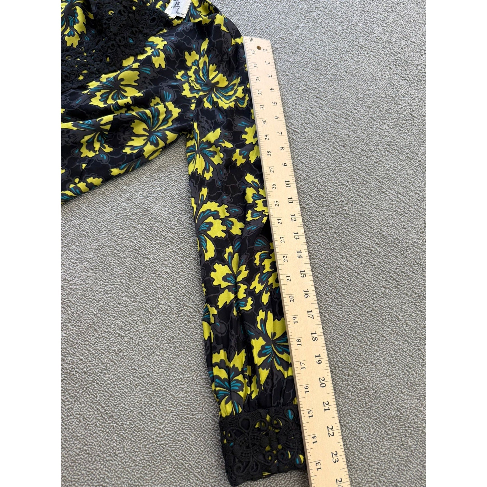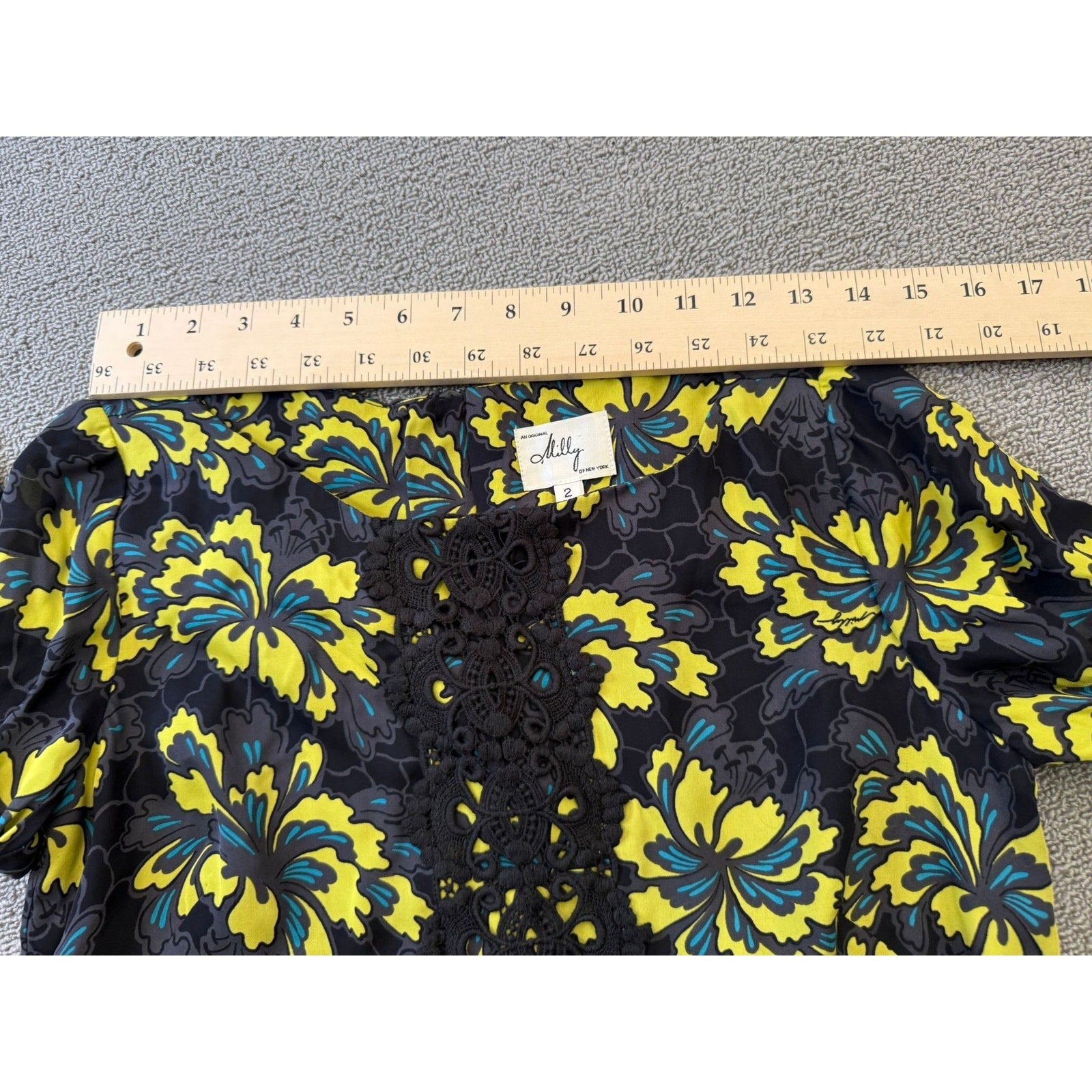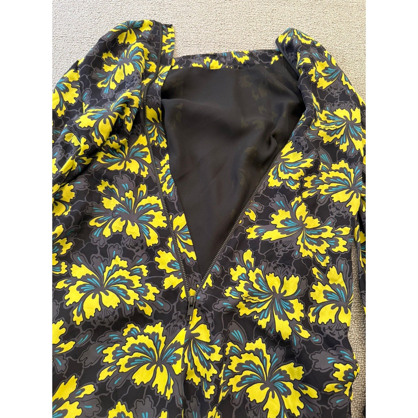 Original Milly Women's Size 2 Black Yellow Floral Mini Dress Long Sleeve