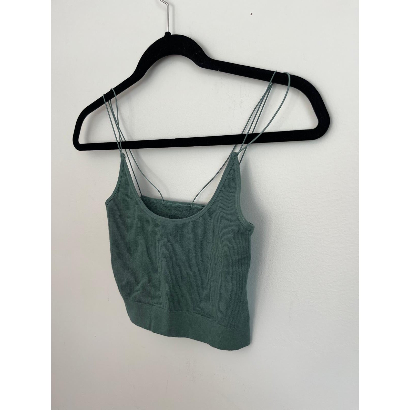 Out From Under Crop Tank Top Women S Green Ribbed Minimalist Y2K