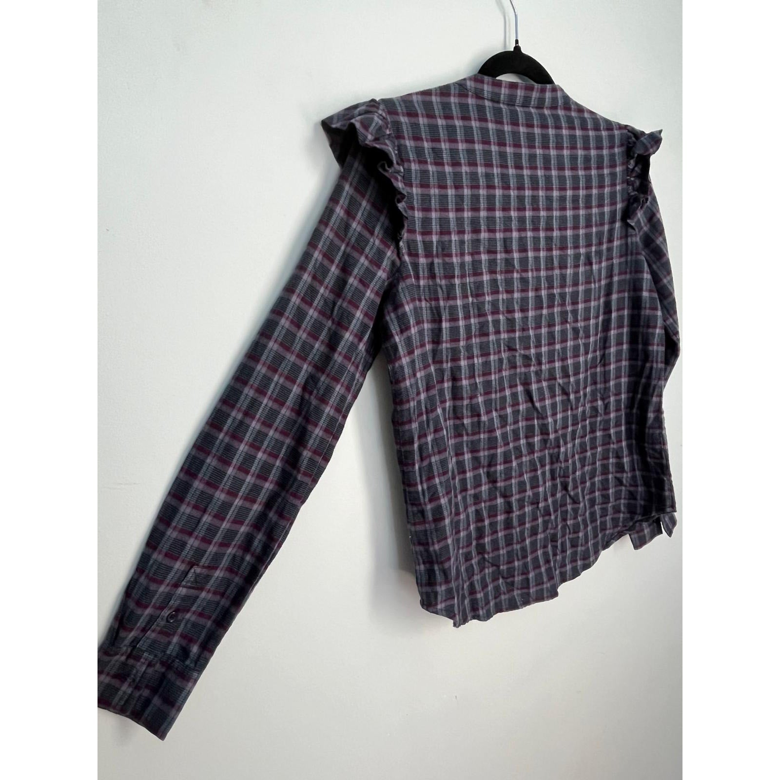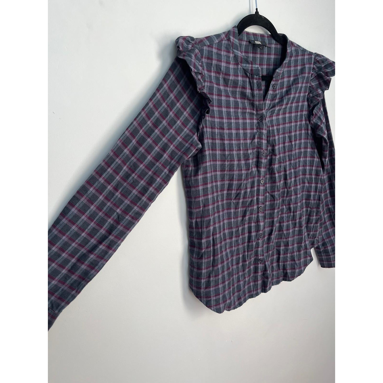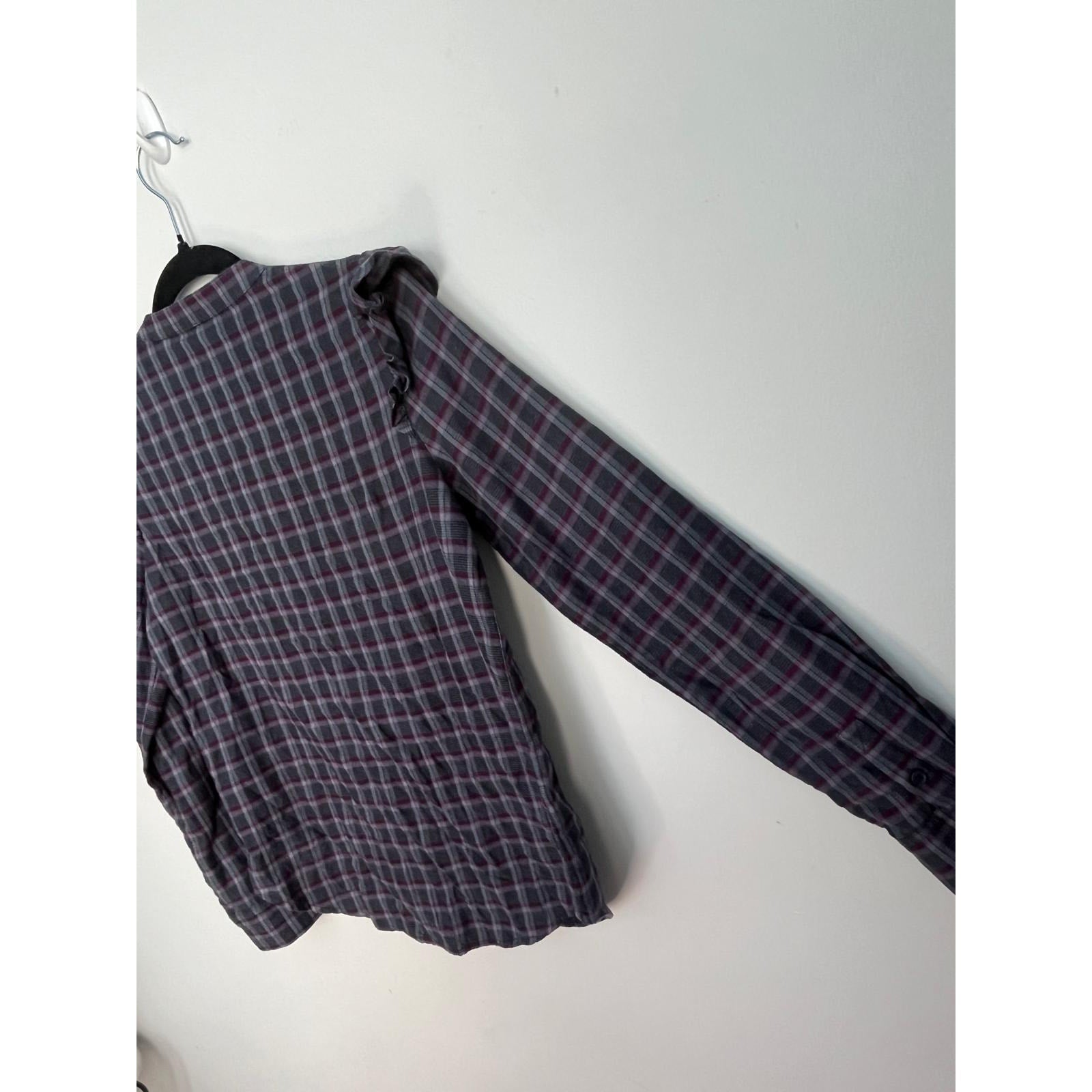 PAIGE Ruffle Shoulder Plaid Button Shirt Women XS Purple Gray Long Sleeve Top