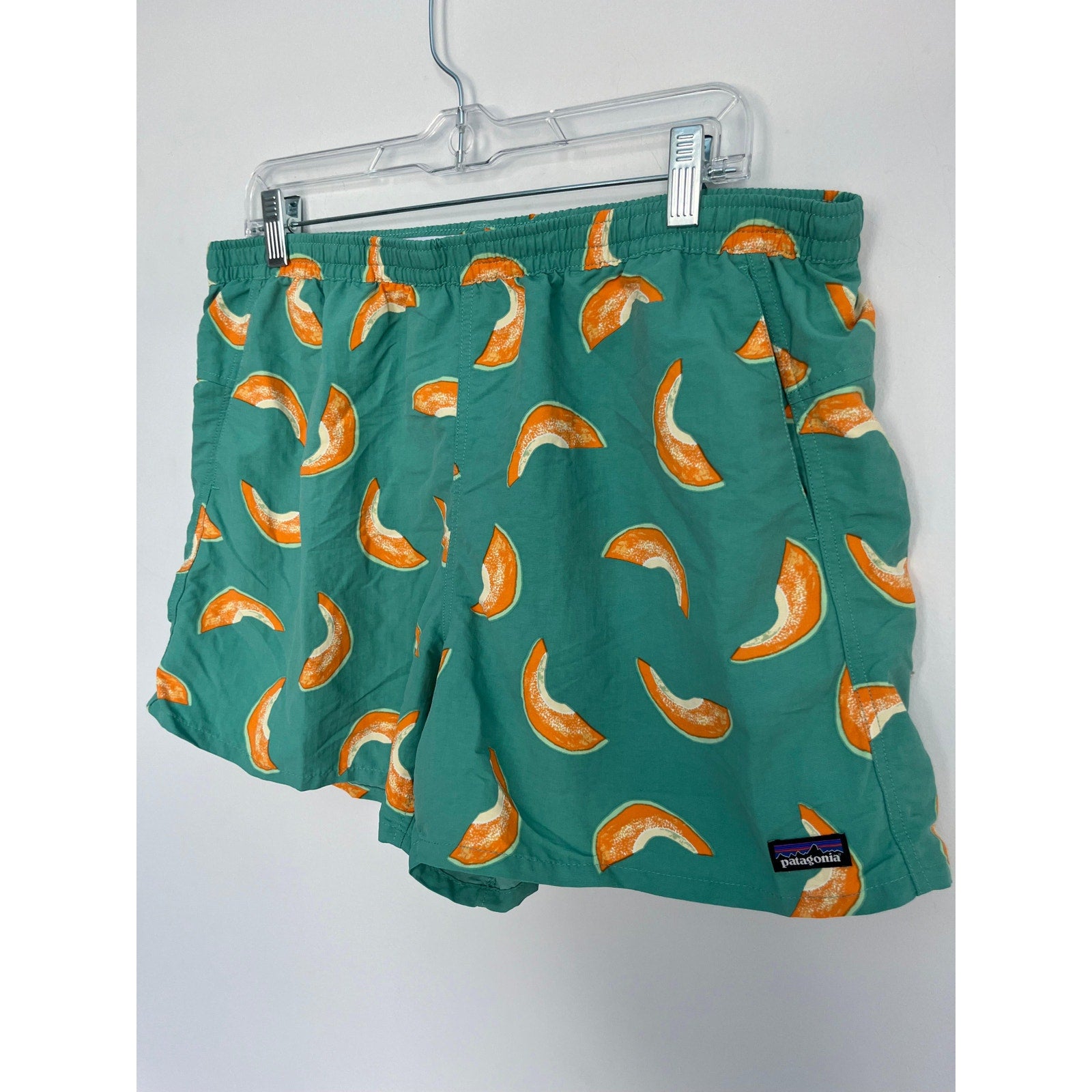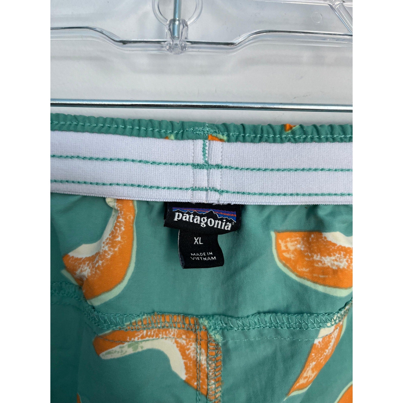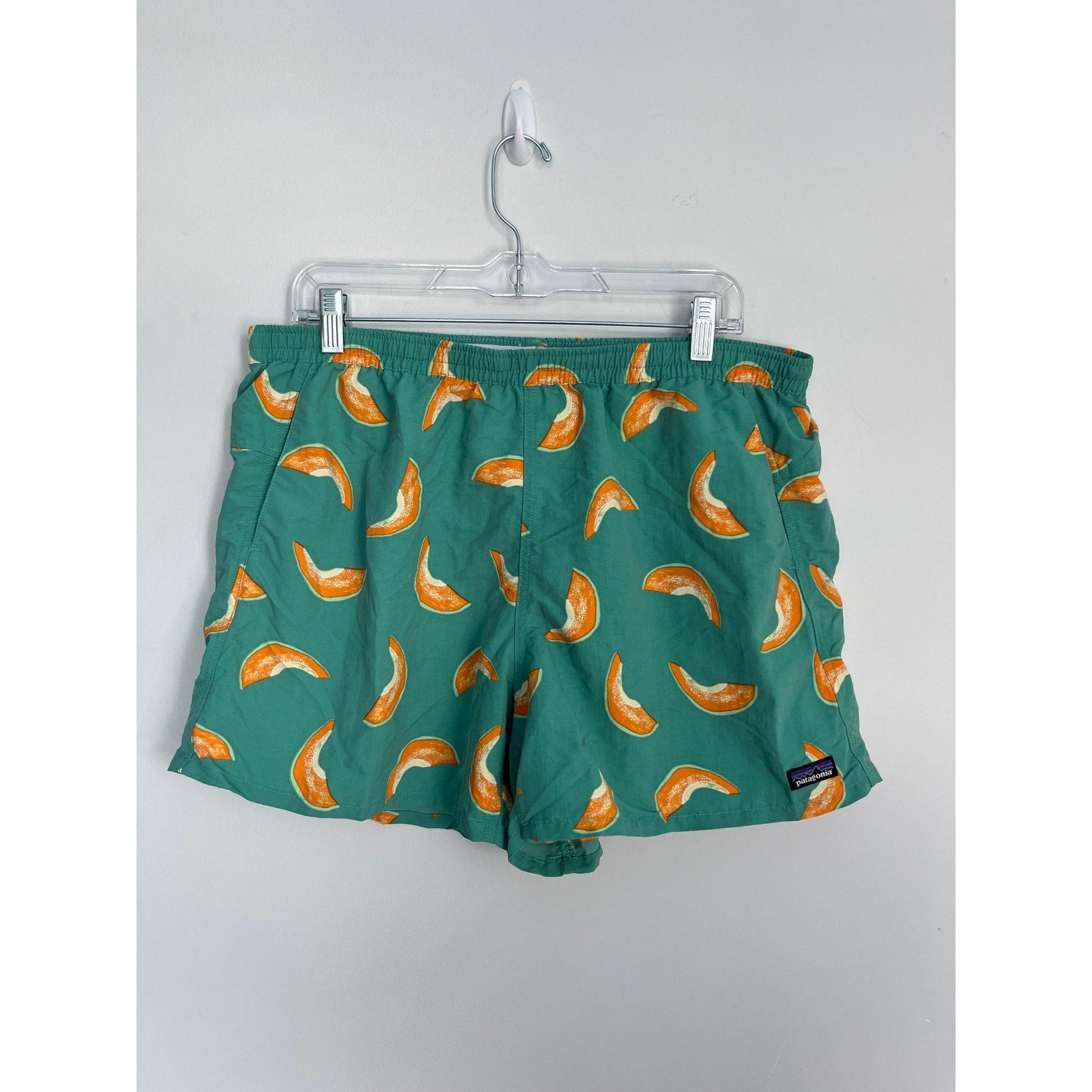 Patagonia Swim Trunks Women XL Green Orange Fruit Print Board Shorts