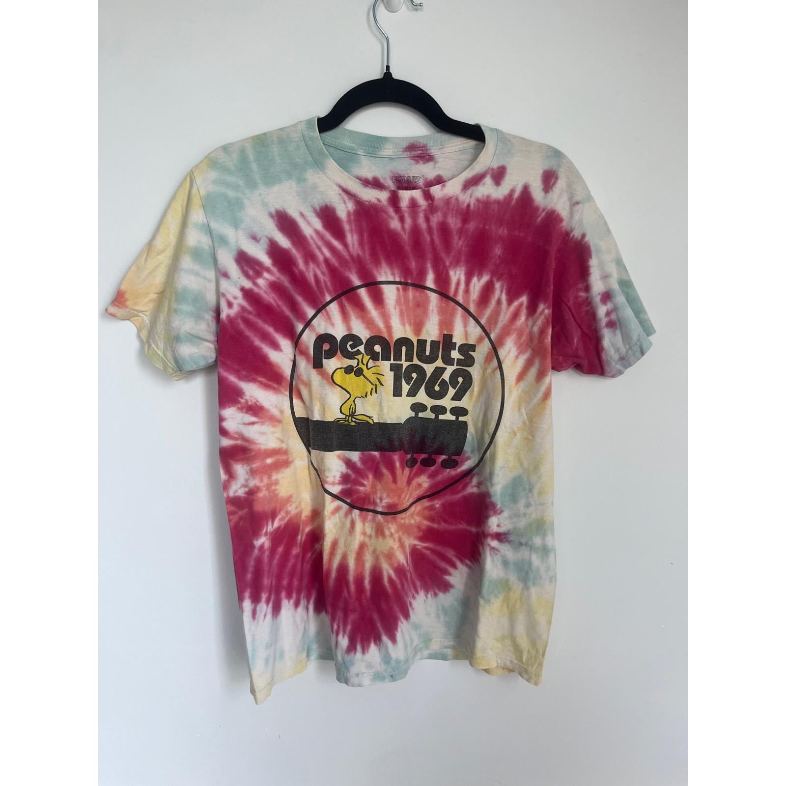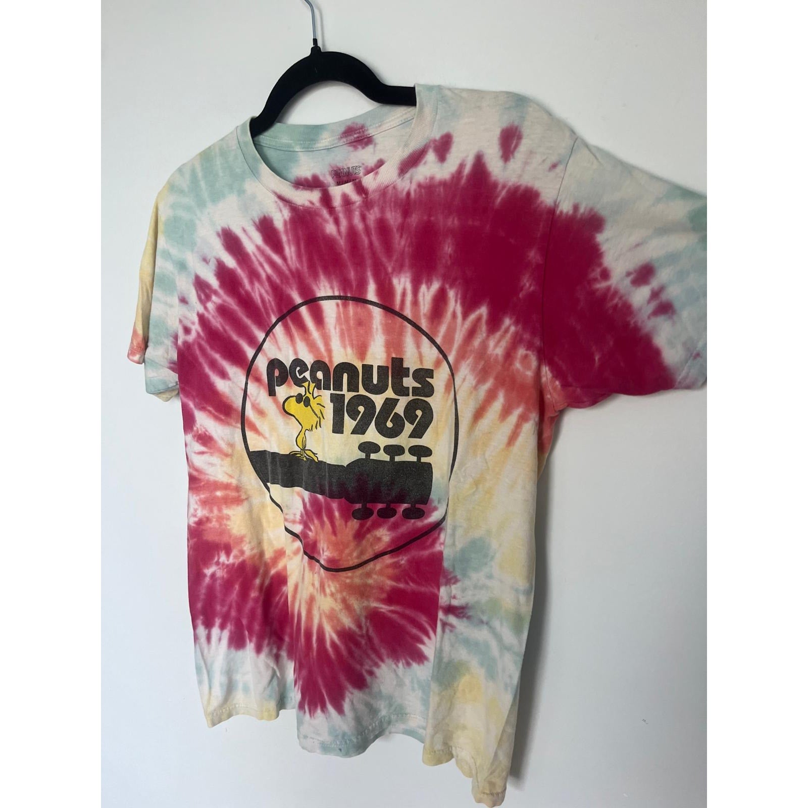 Peanuts Tie Dye T Shirt Men M Woodstock 1969 Rainbow Spiral Graphic Tee