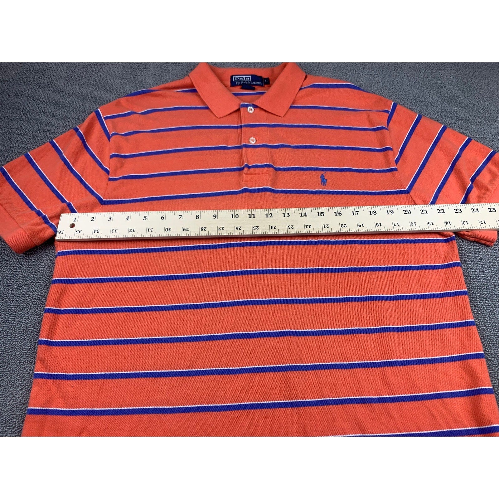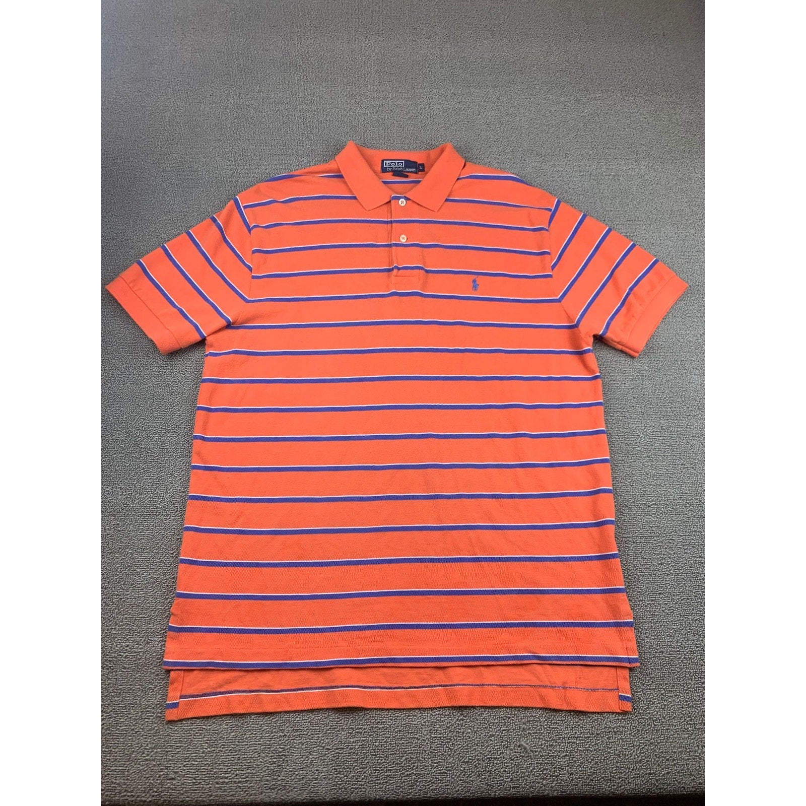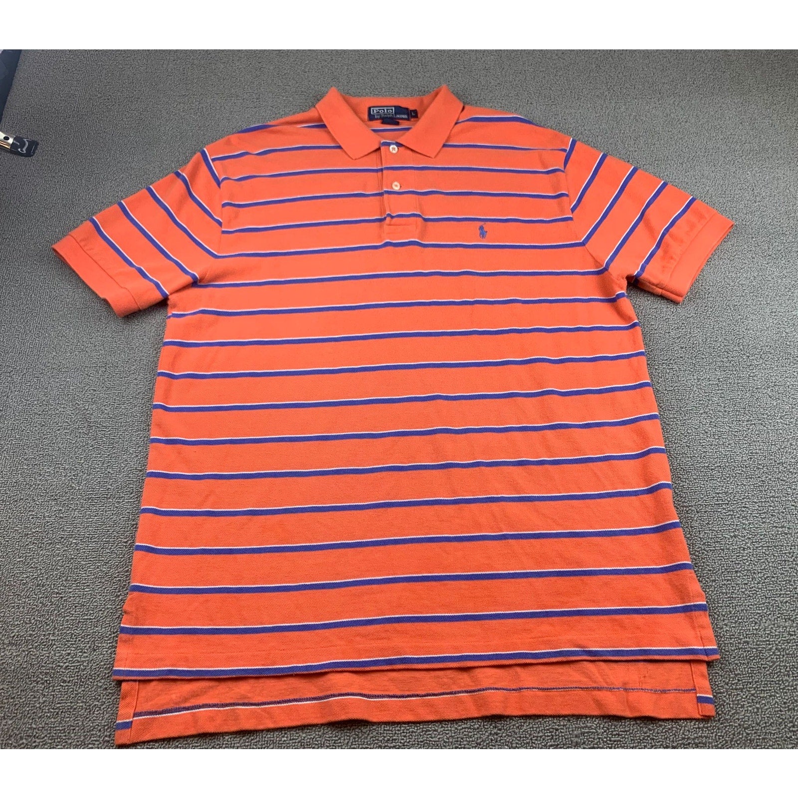 Polo By Ralph Lauren Men's L Orange Blue Striped Short Sleeve Polo Shirt