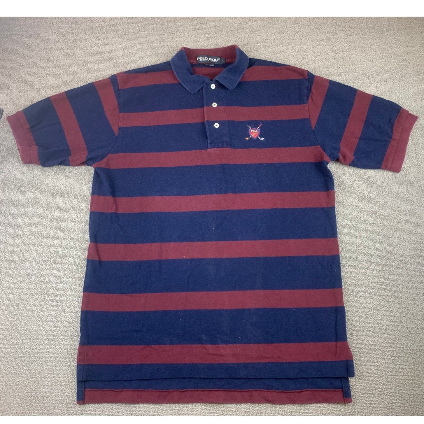 Polo Golf Ralph Lauren Polo Shirt Men's L Navy Burgundy Rugby Stripe Crest
