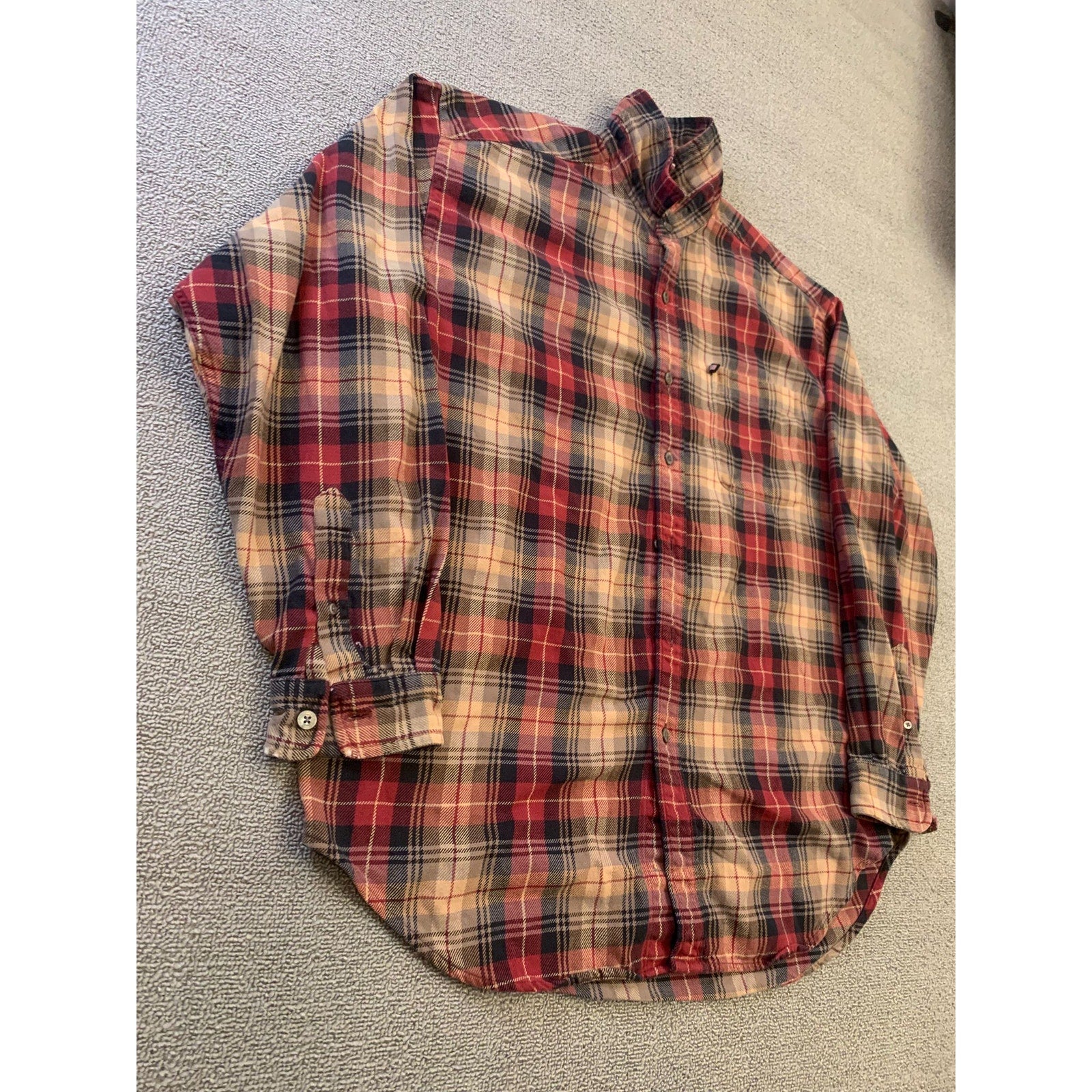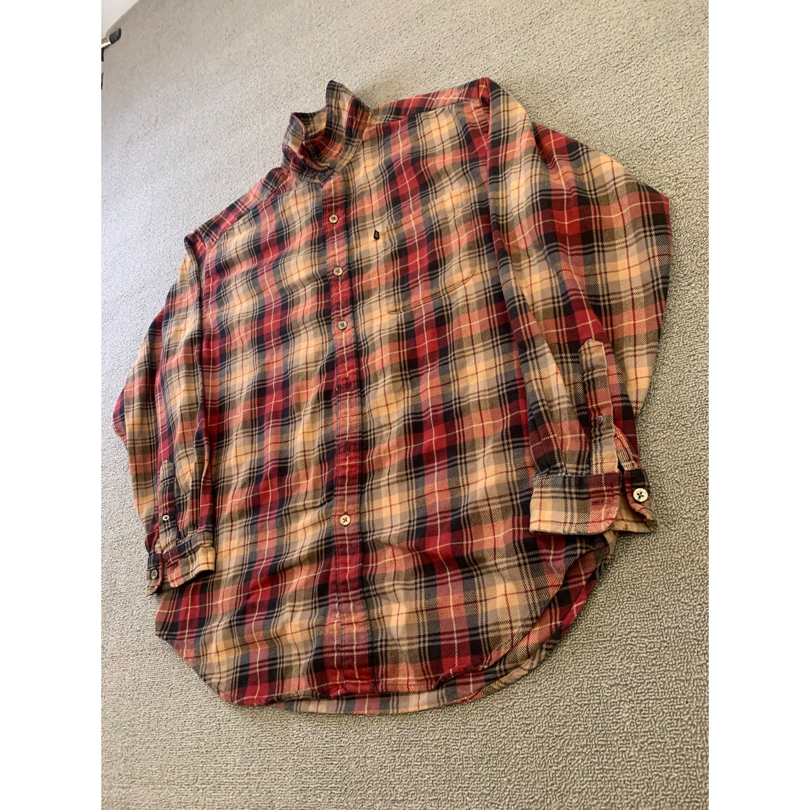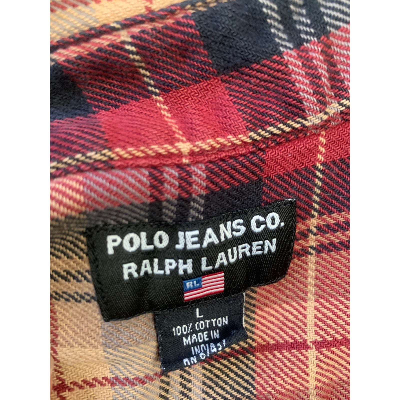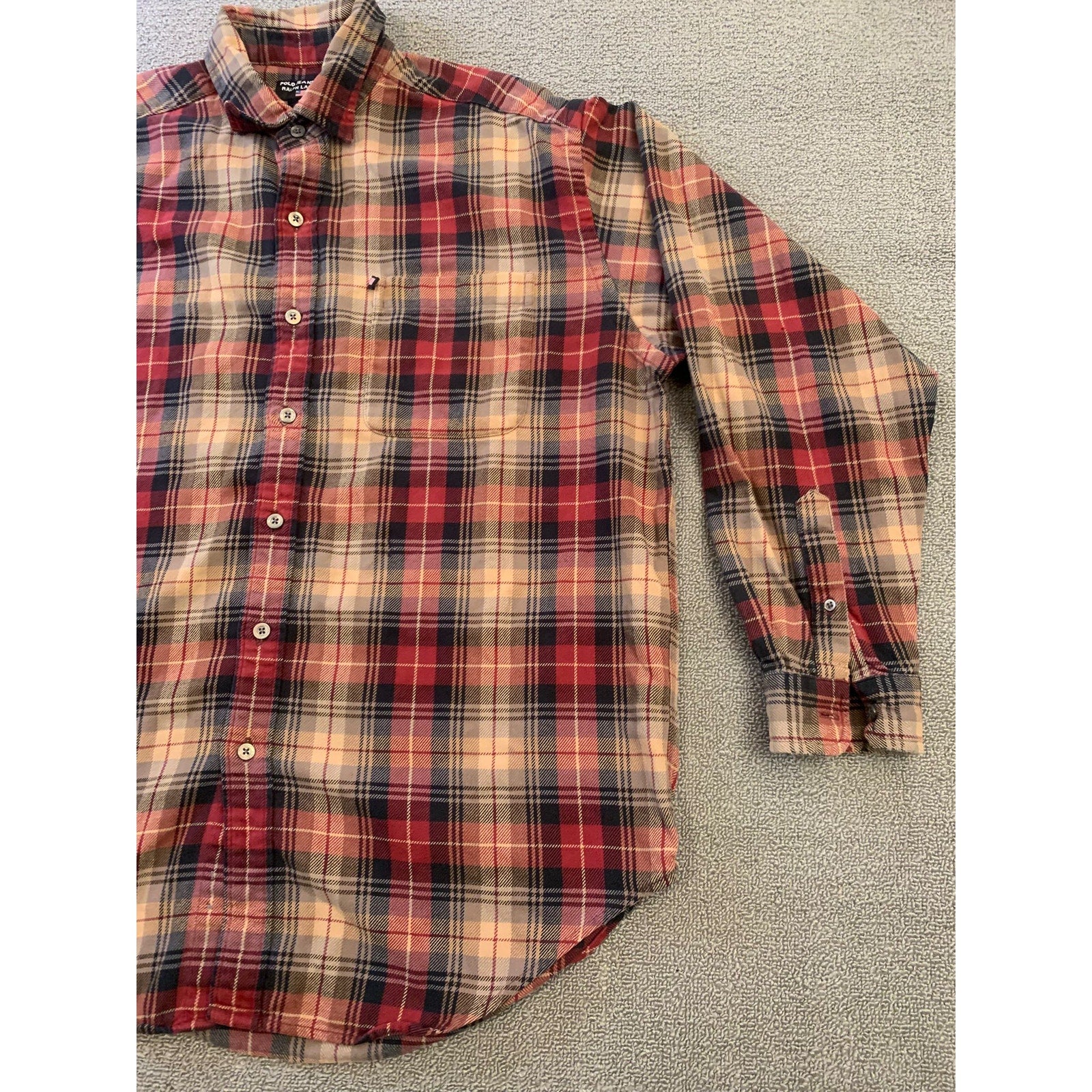 POLO JEANS CO. RALPH LAUREN Men's L Red Plaid Wool Blend Button Down Shirt