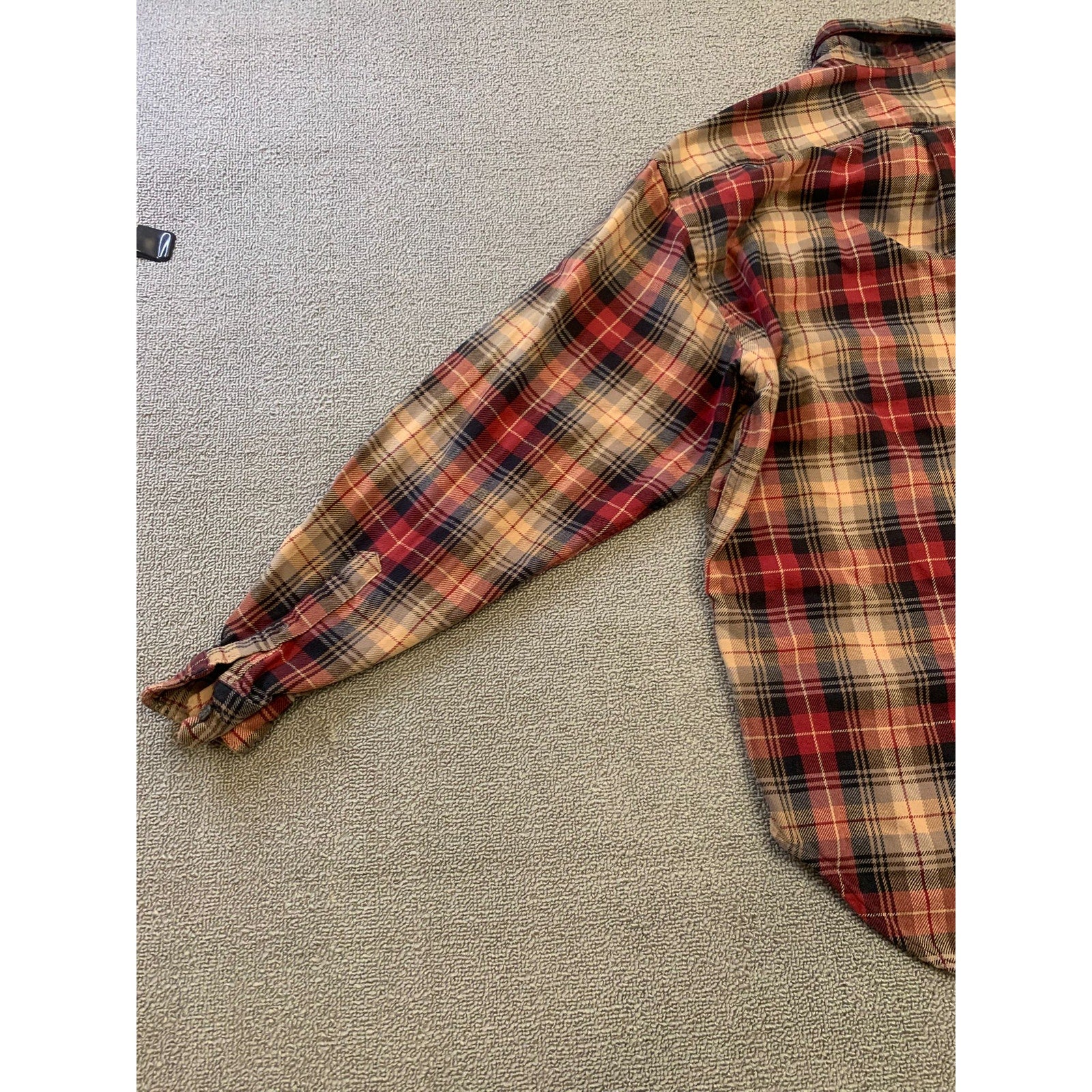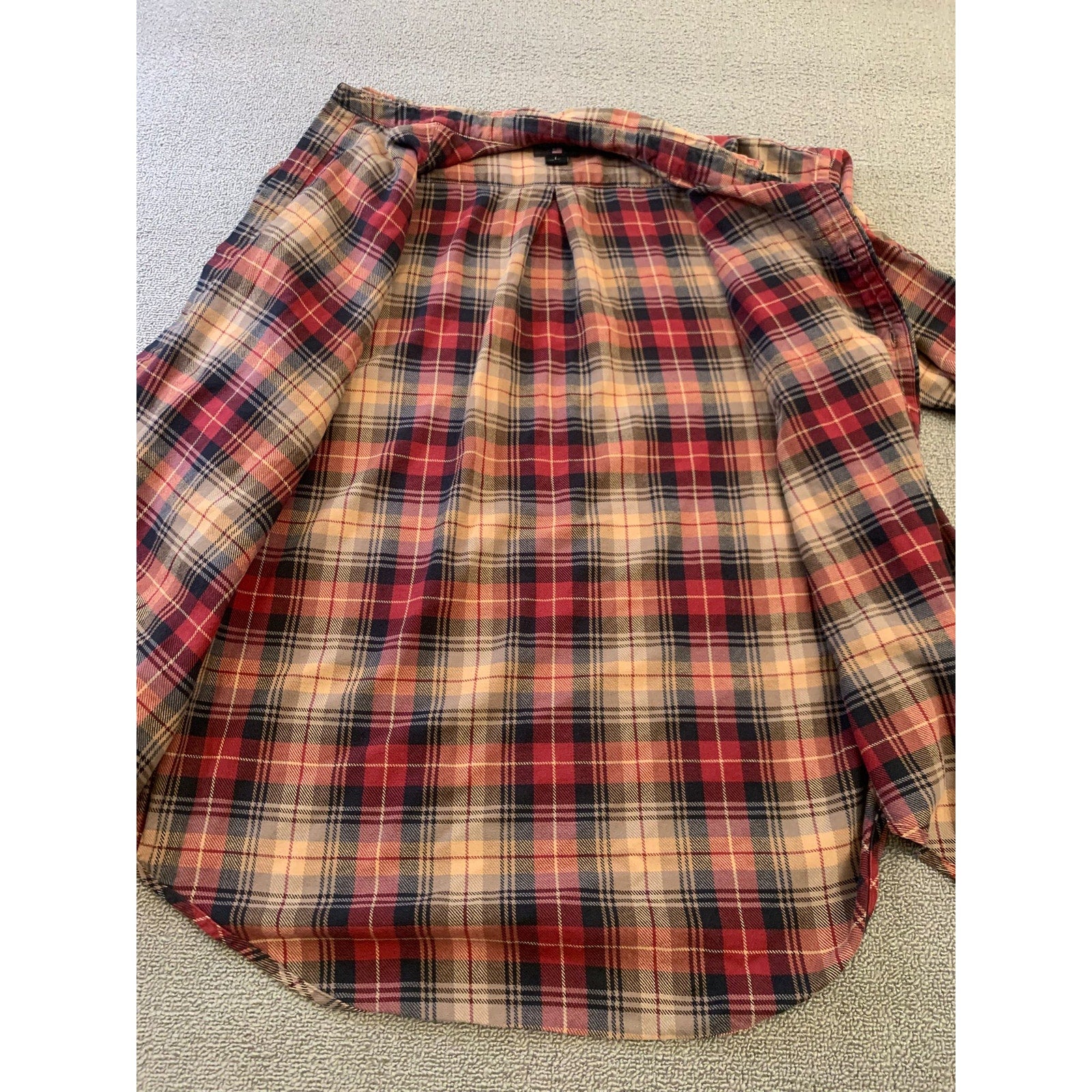 This Polo Jeans Co by Ralph Lauren button‑down plaid shirt features a classic red, navy, and tan flannel design with a relaxed silhouette and cozy fabric—perfect for casual layering through the fall or winter.