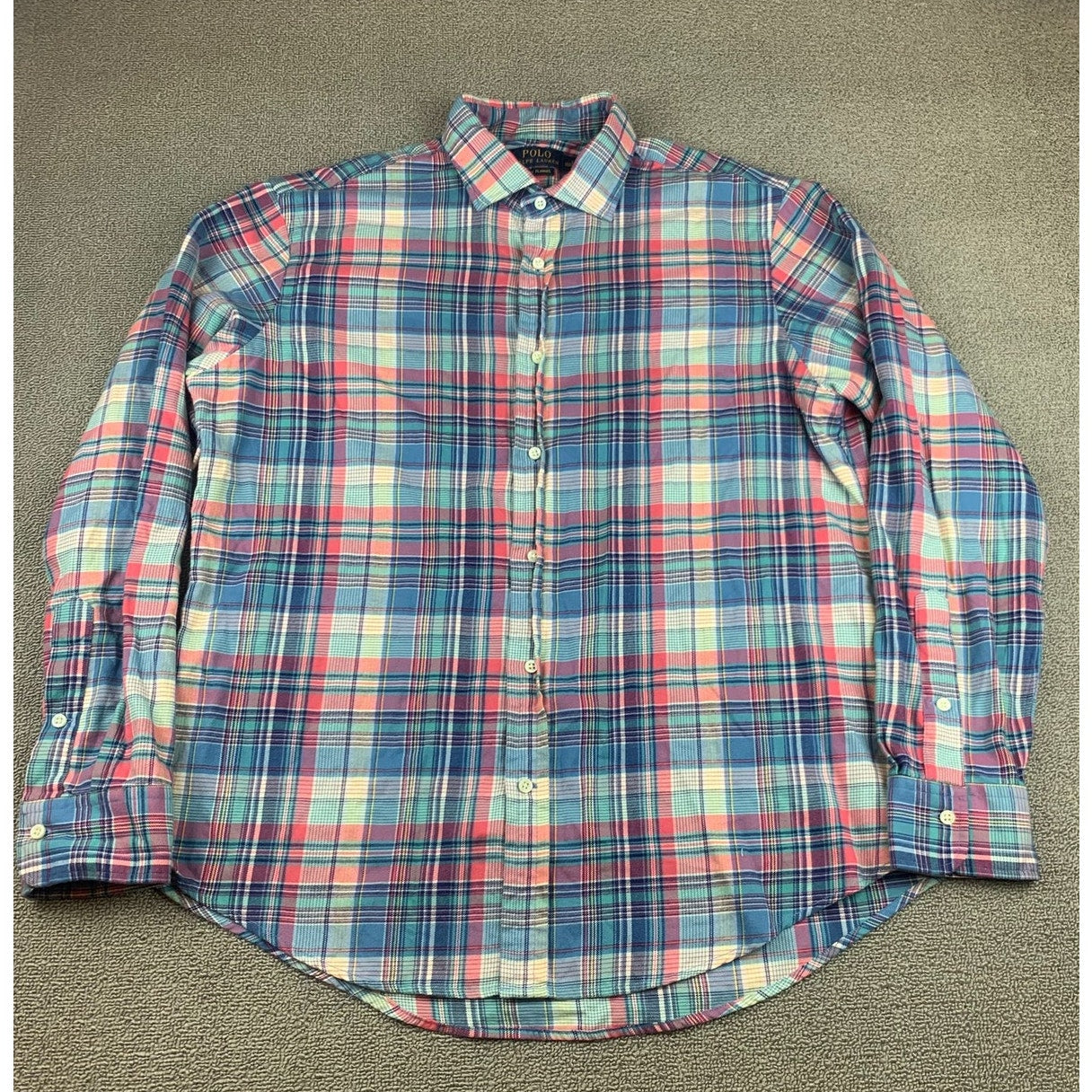 Polo Ralph Lauren Men Large Red Multi Color Plaid Cotton Flannel