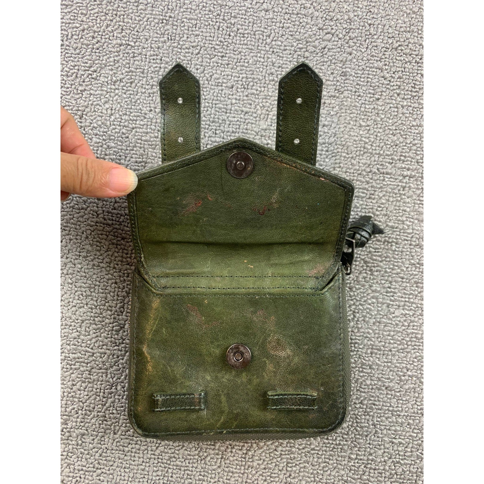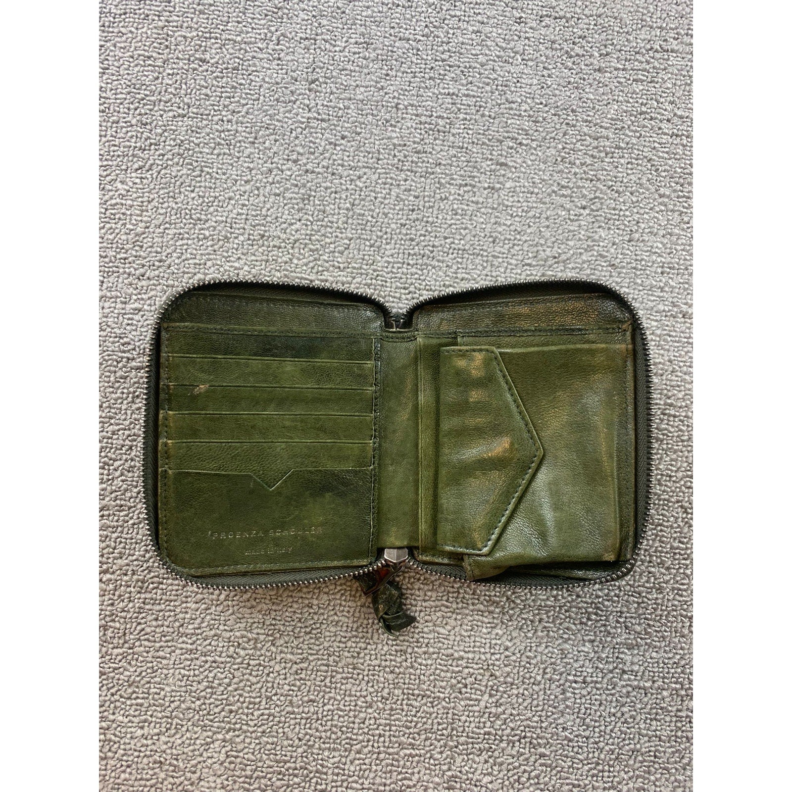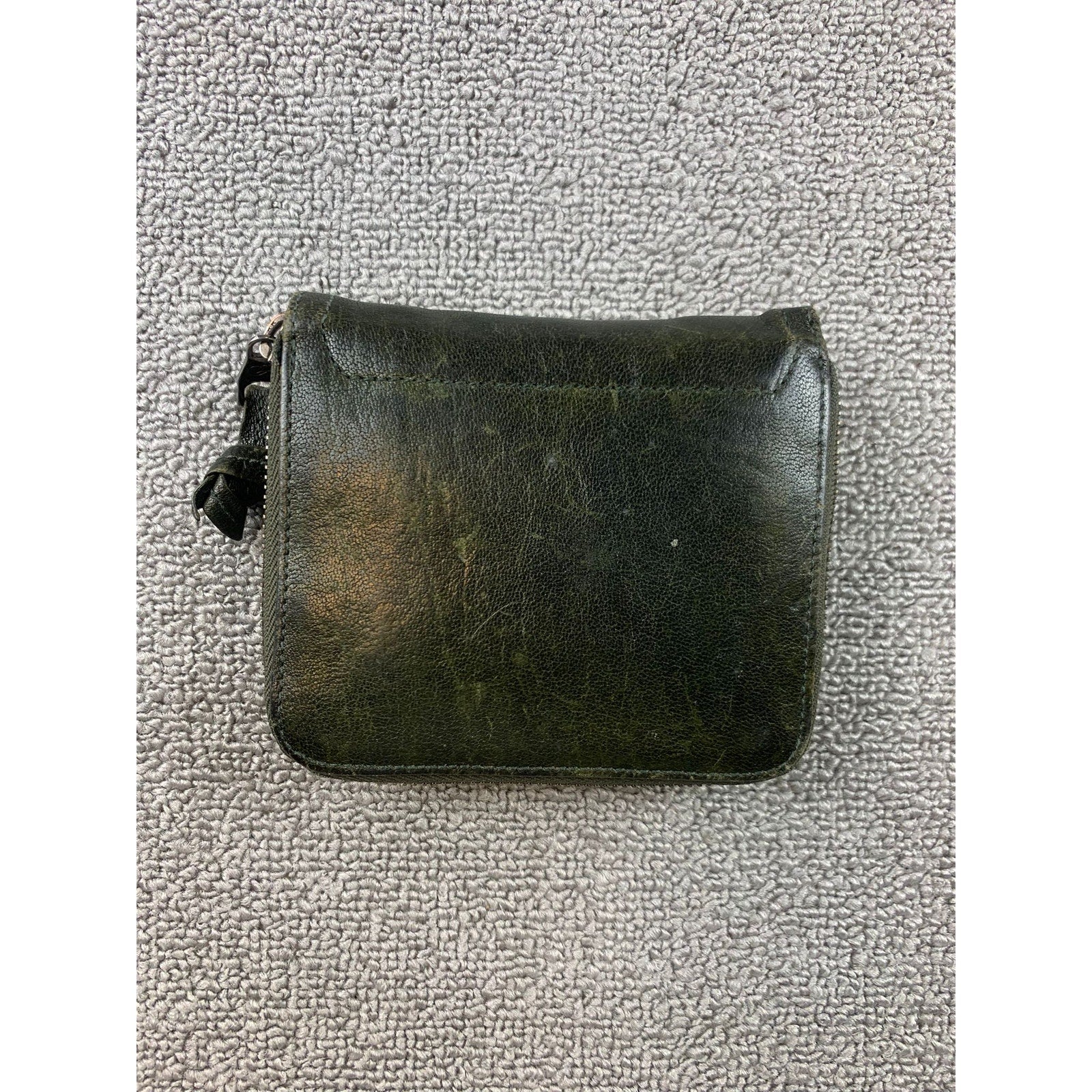 Authentic Proenza Schouler leather wallet in green with a front snap pocket, multiple card slots, and zip-around closure. Compact design ideal for everyday use.