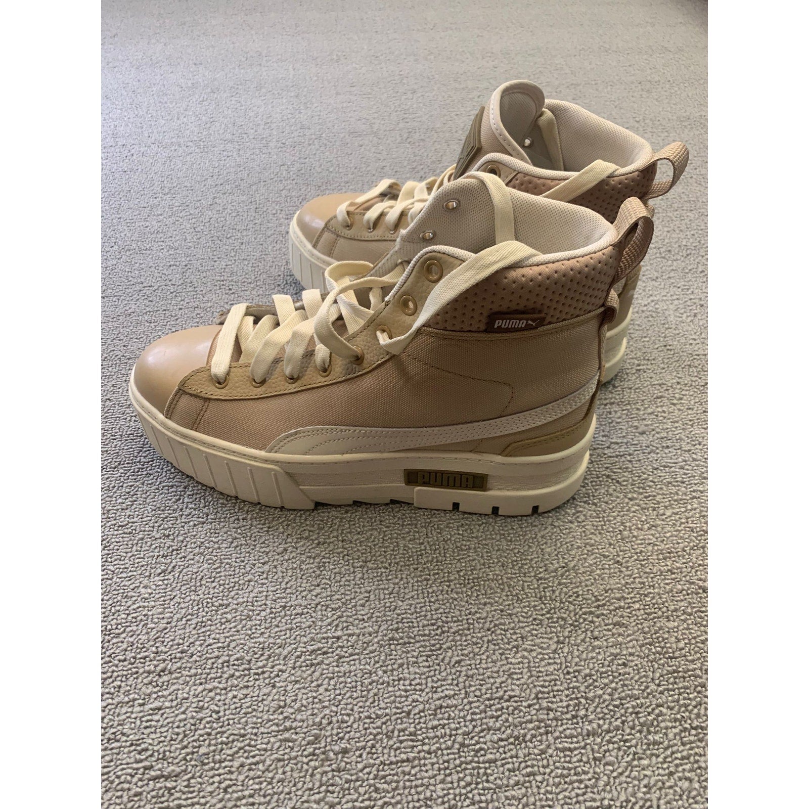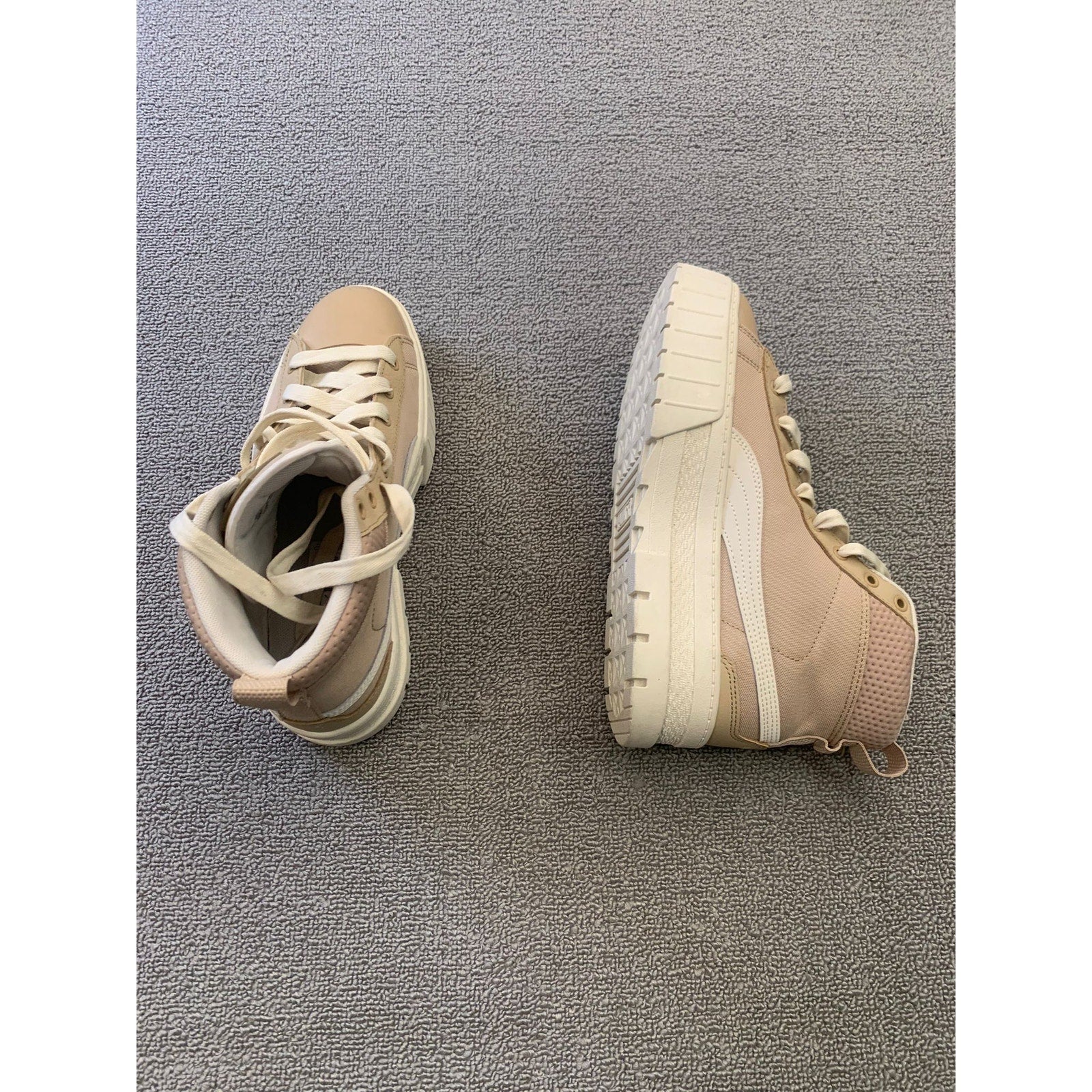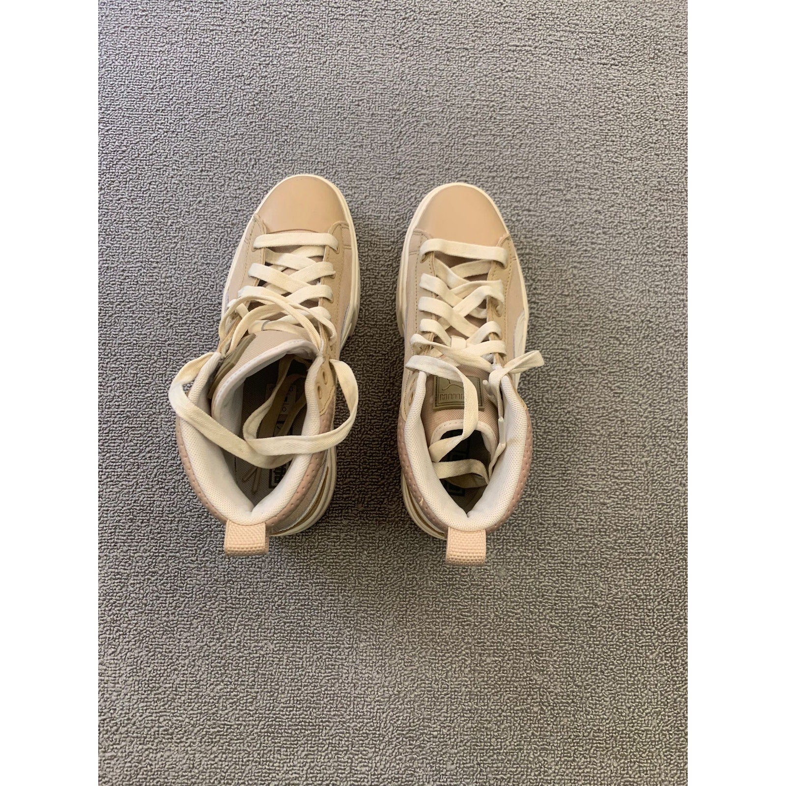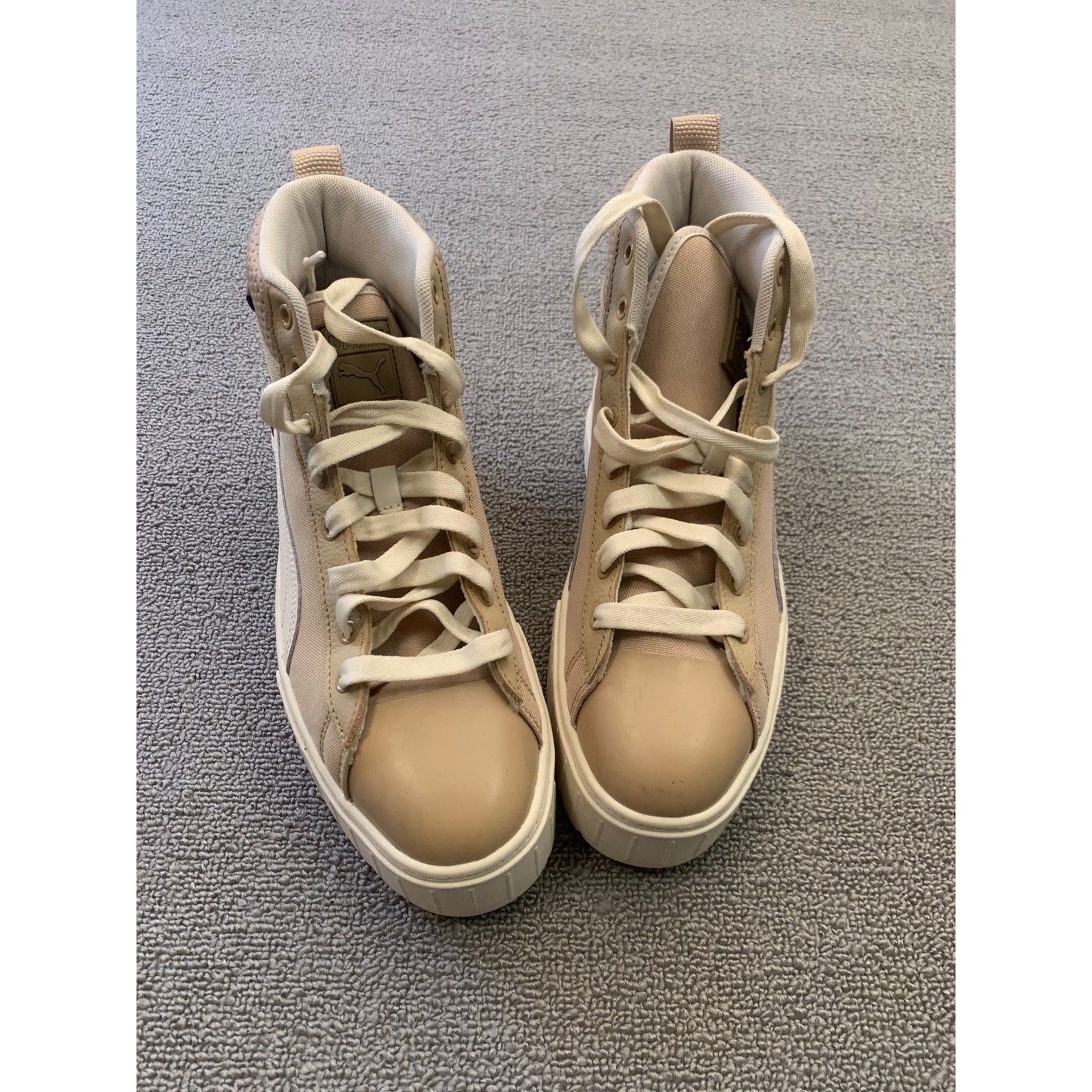 Elevated high-top sneakers by Puma, rendered in a sophisticated beige palette. Featuring a tall silhouette with lace-up closure, padded ankle support, and a chunky platform sole.