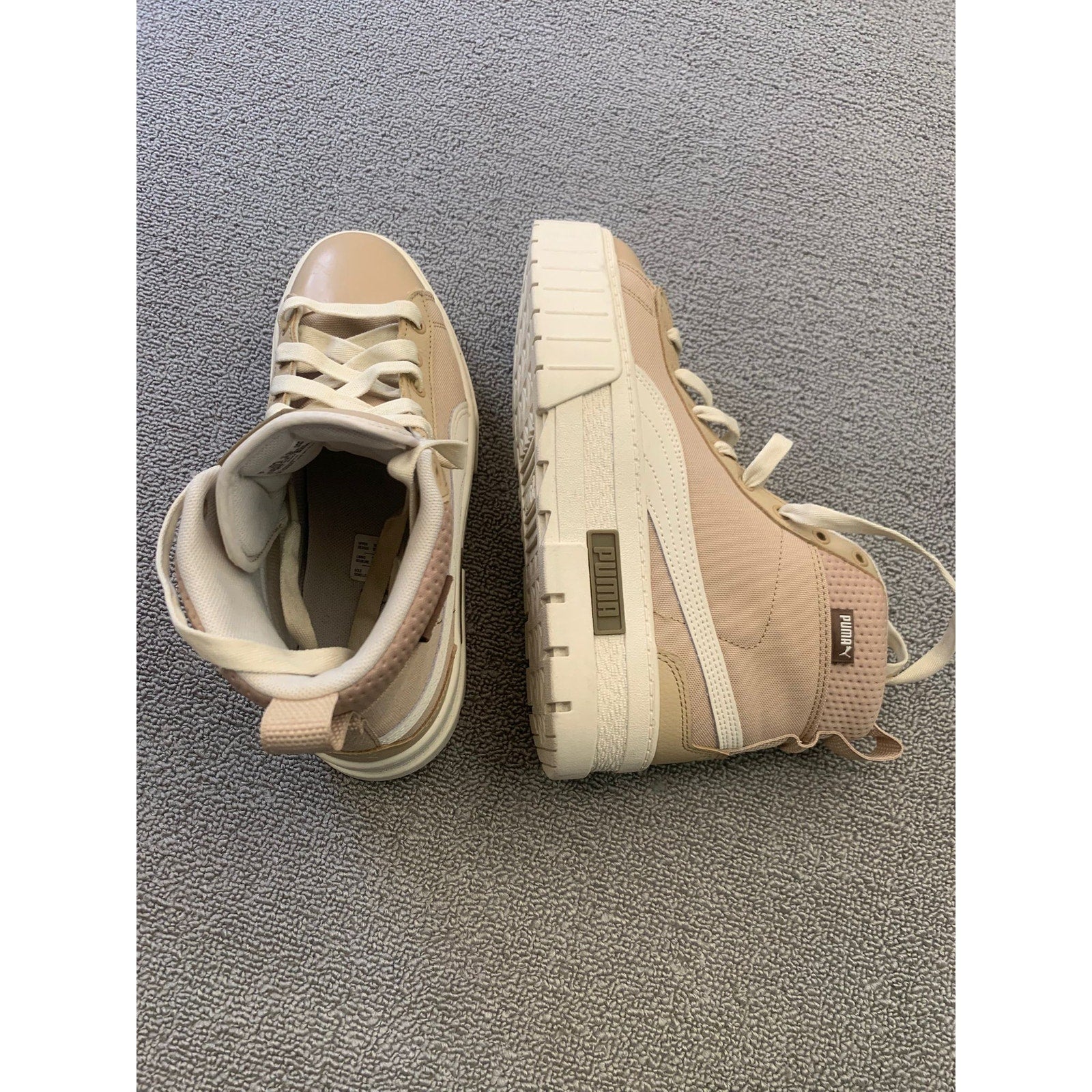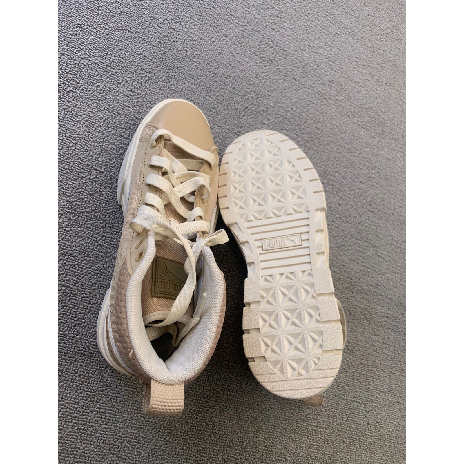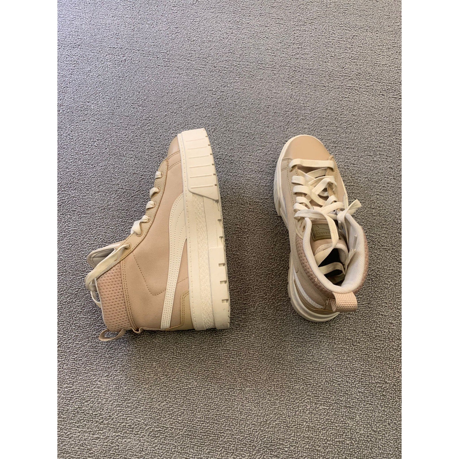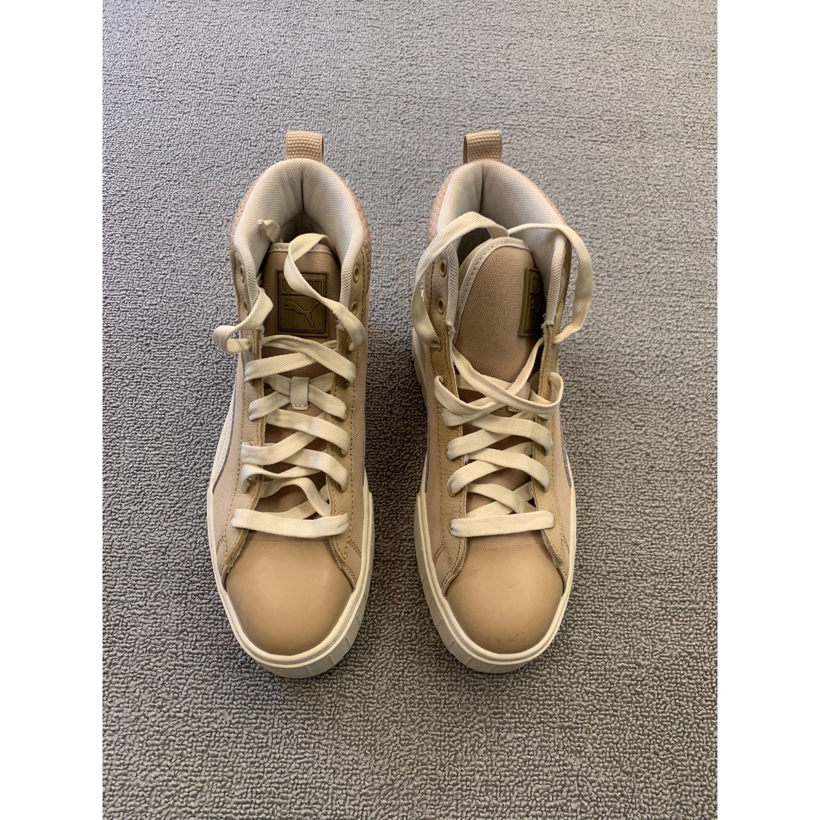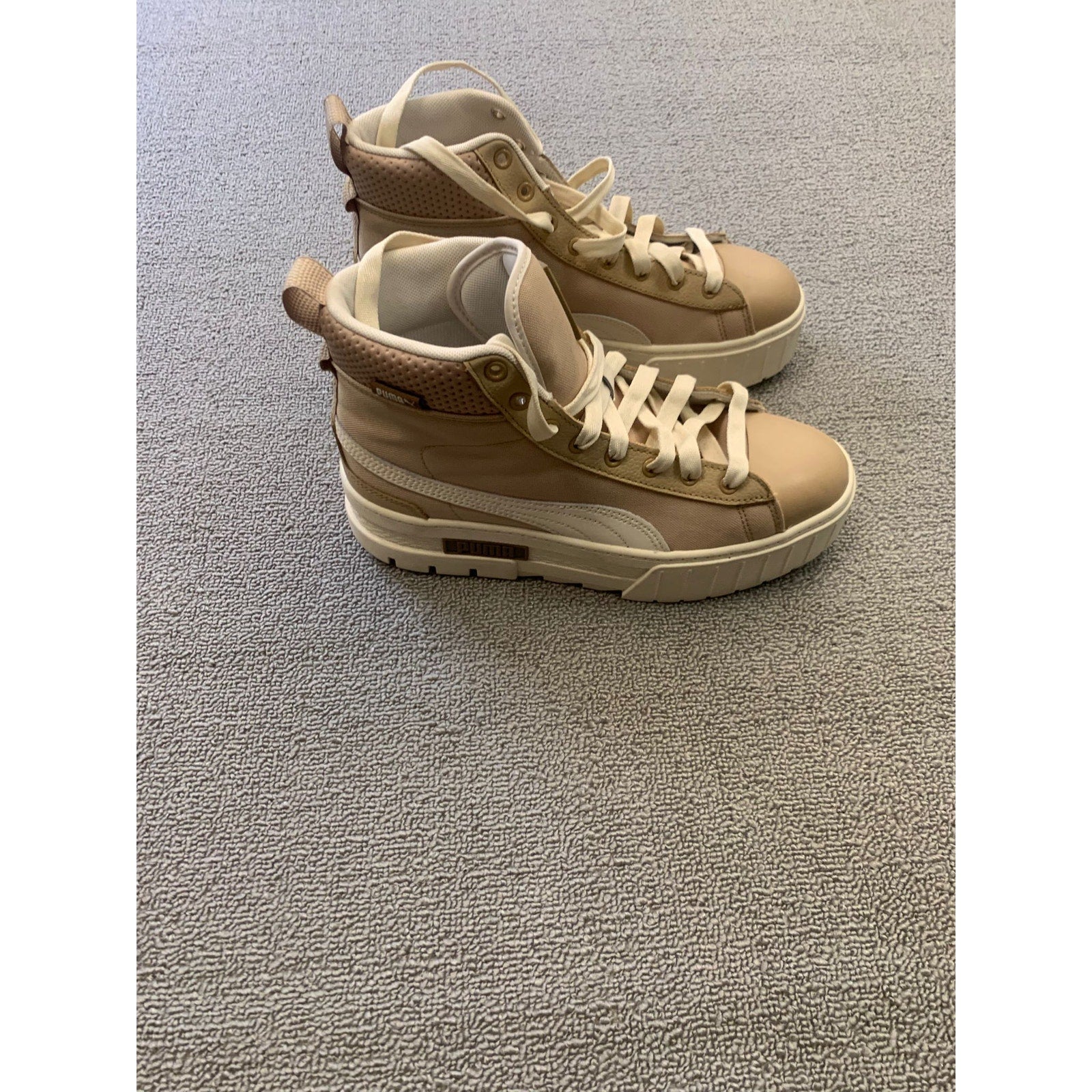 Elevated high-top sneakers by Puma, rendered in a sophisticated beige palette. Featuring a tall silhouette with lace-up closure, padded ankle support, and a chunky platform sole.