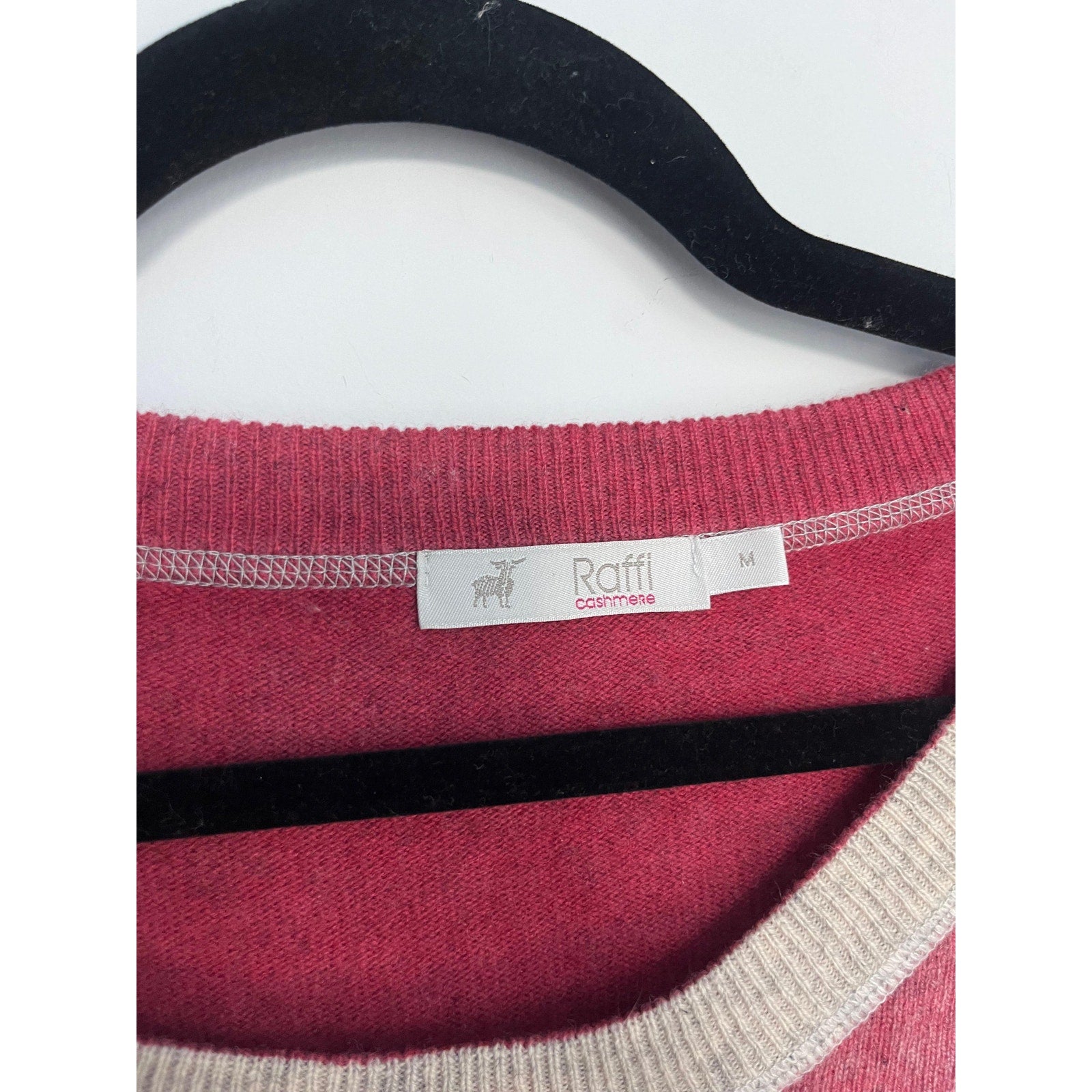 Raffi Cashmere Raglan Sweater Women M Red Contrast Stitch Crewneck