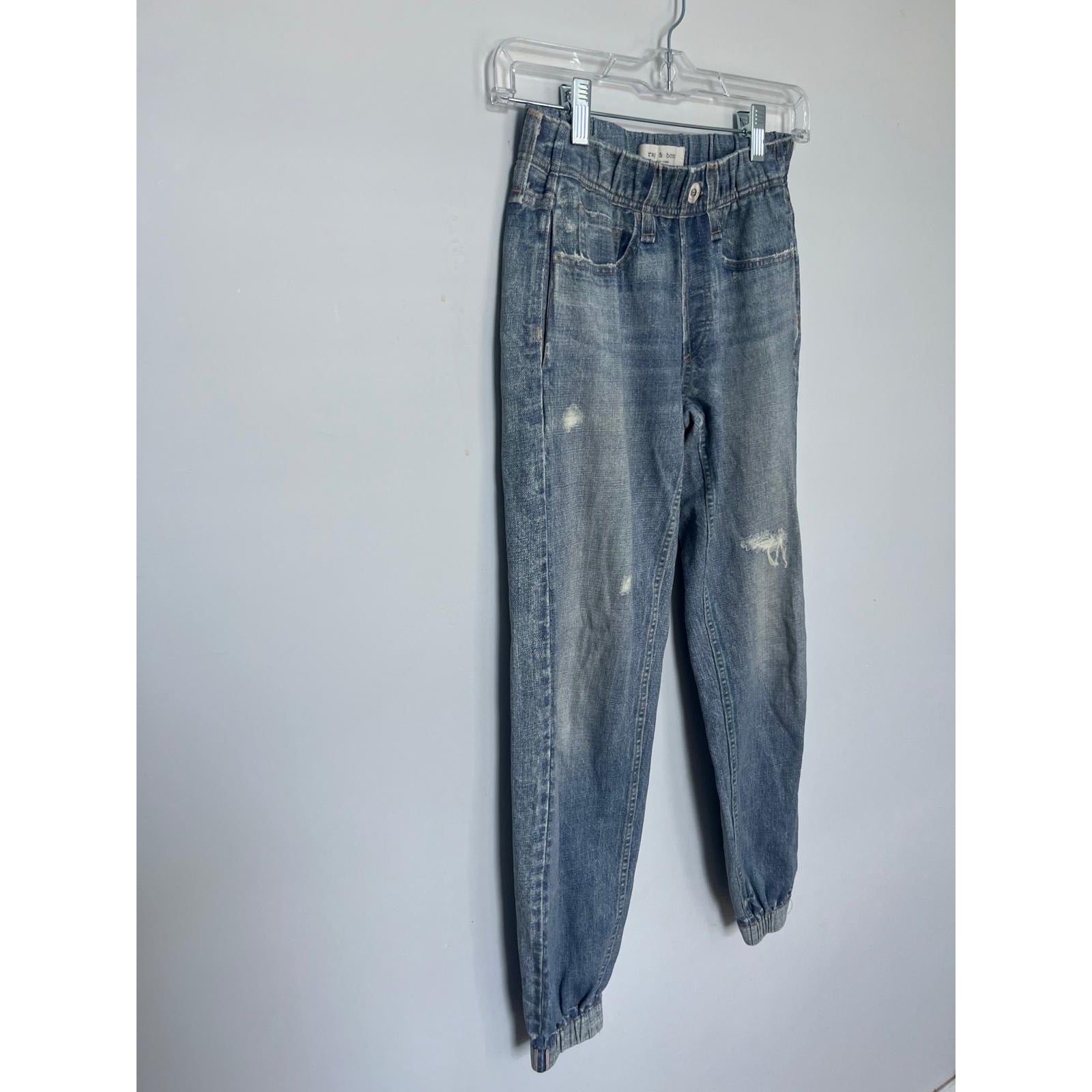 Rag & Bone Denim Jogger Pants Women XXS Elastic Waist Distressed Cuffs