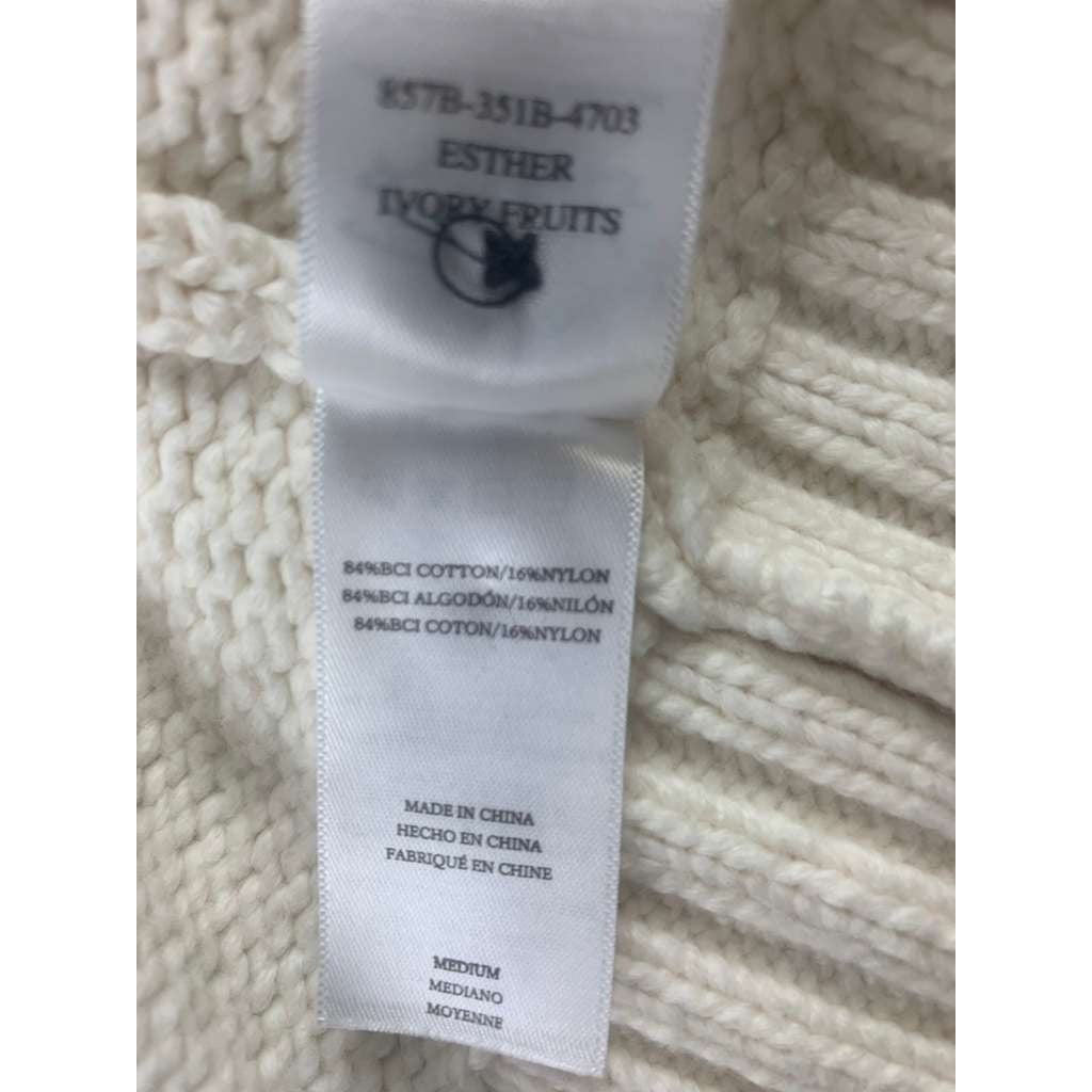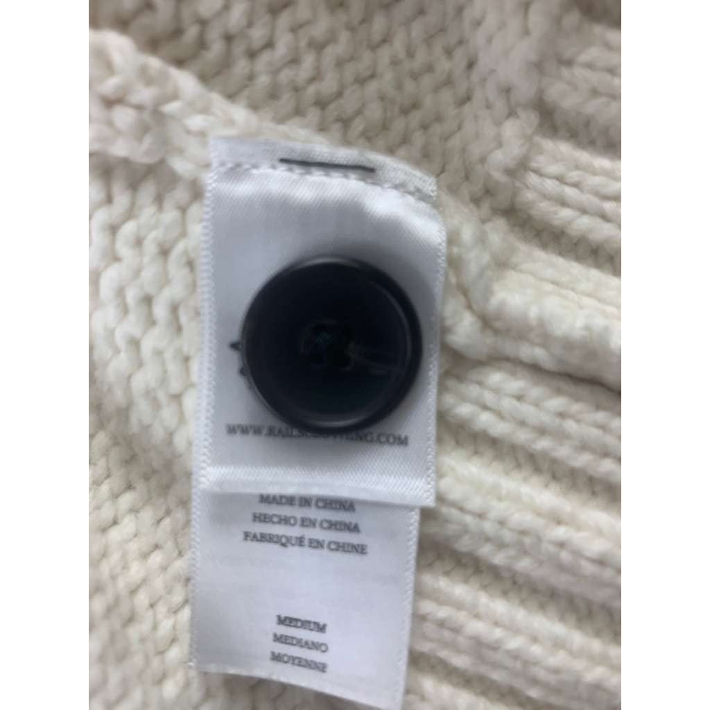 Rails cardigan in white Women M. Made of 84% cotton 16% nylon. V-neck button front knit with cherry and strawberry embroidery and puff sleeves—great for casual wear and layering.