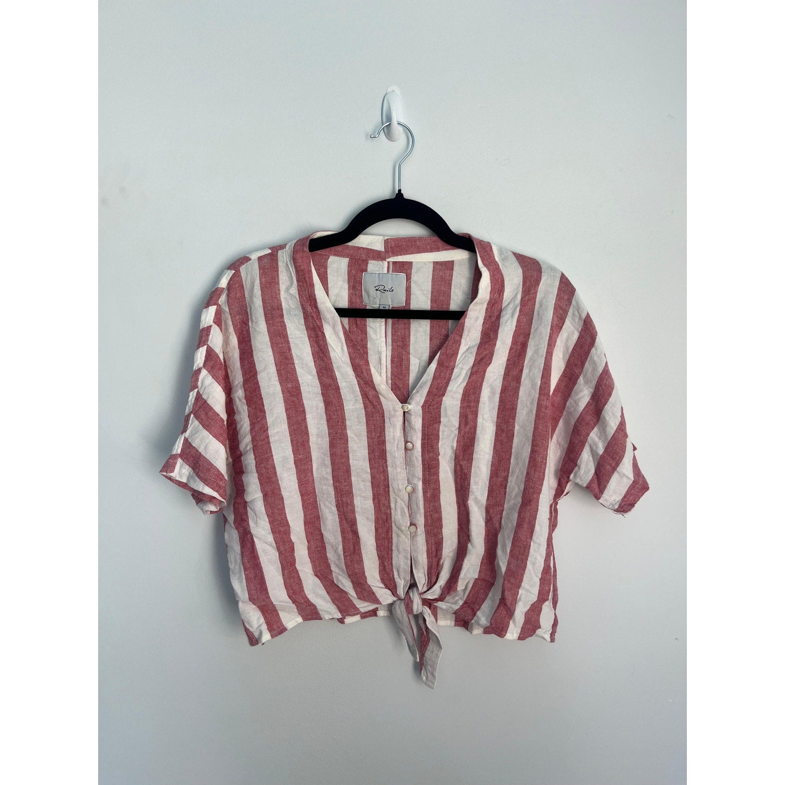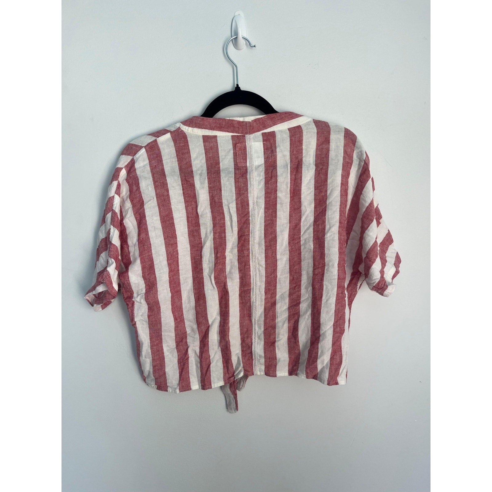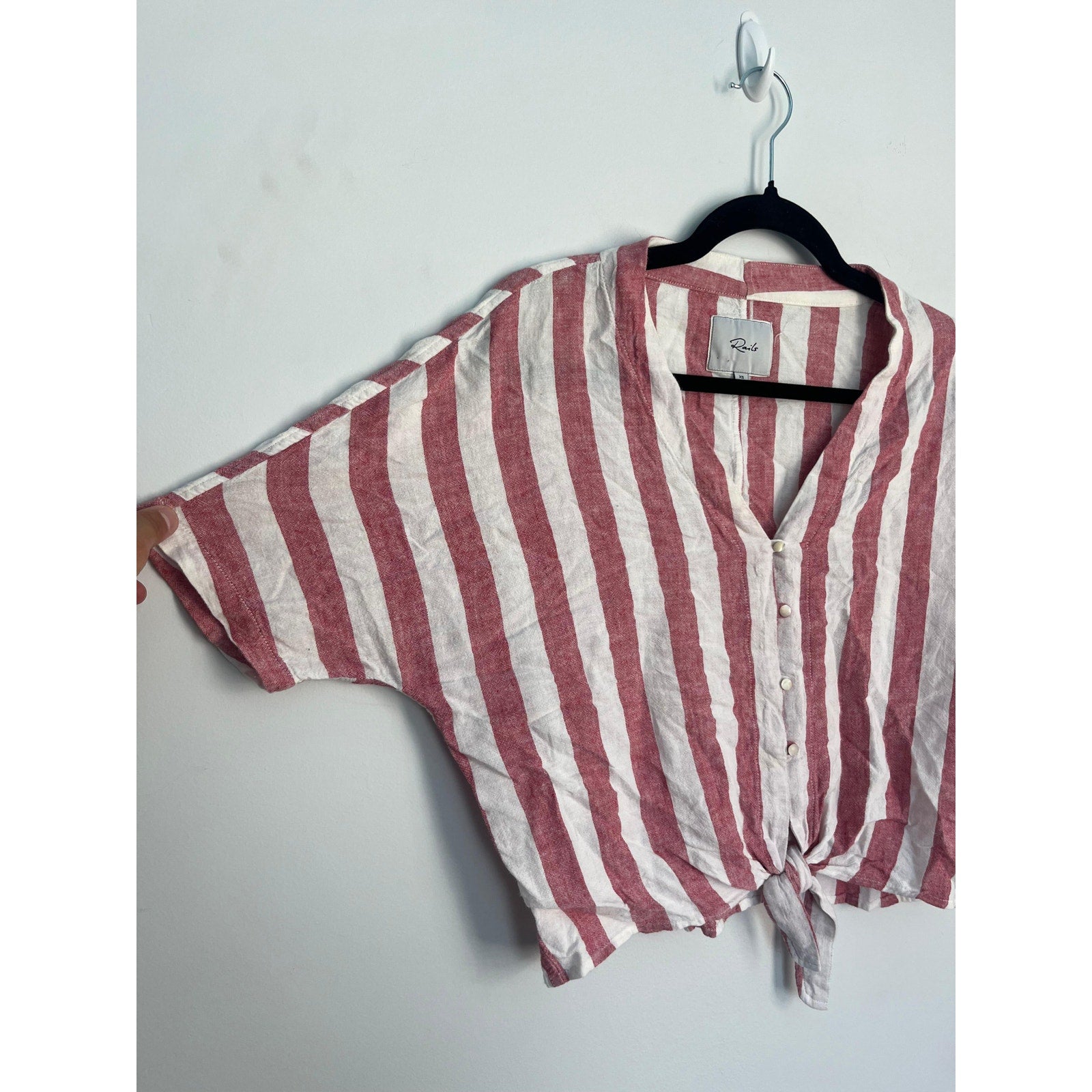 Rails Striped Button Front Shirt Women XS Red White Linen Tie Hem Summer