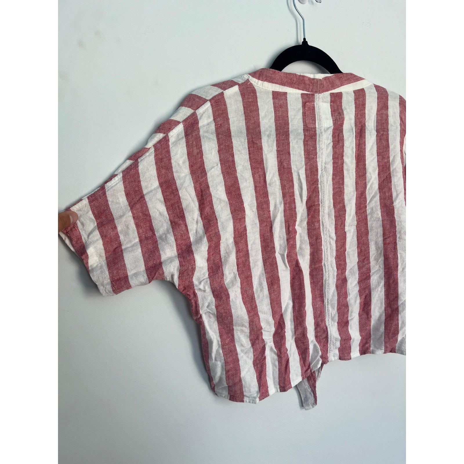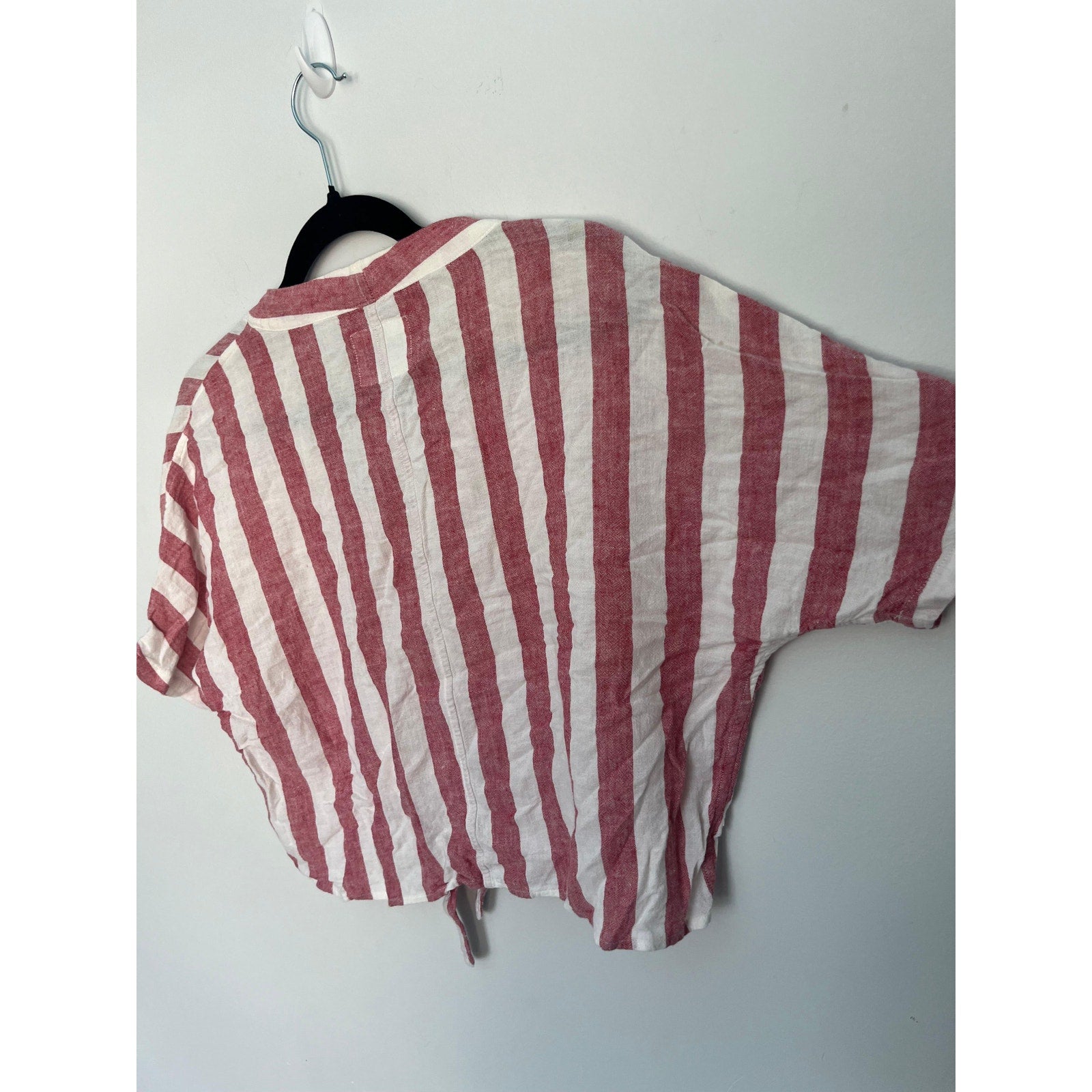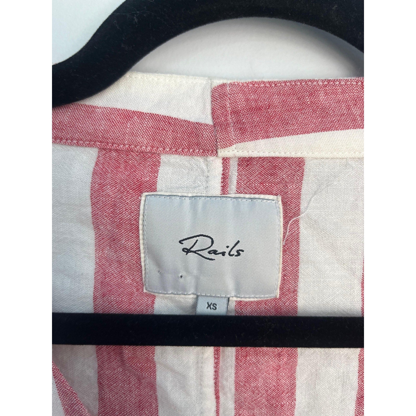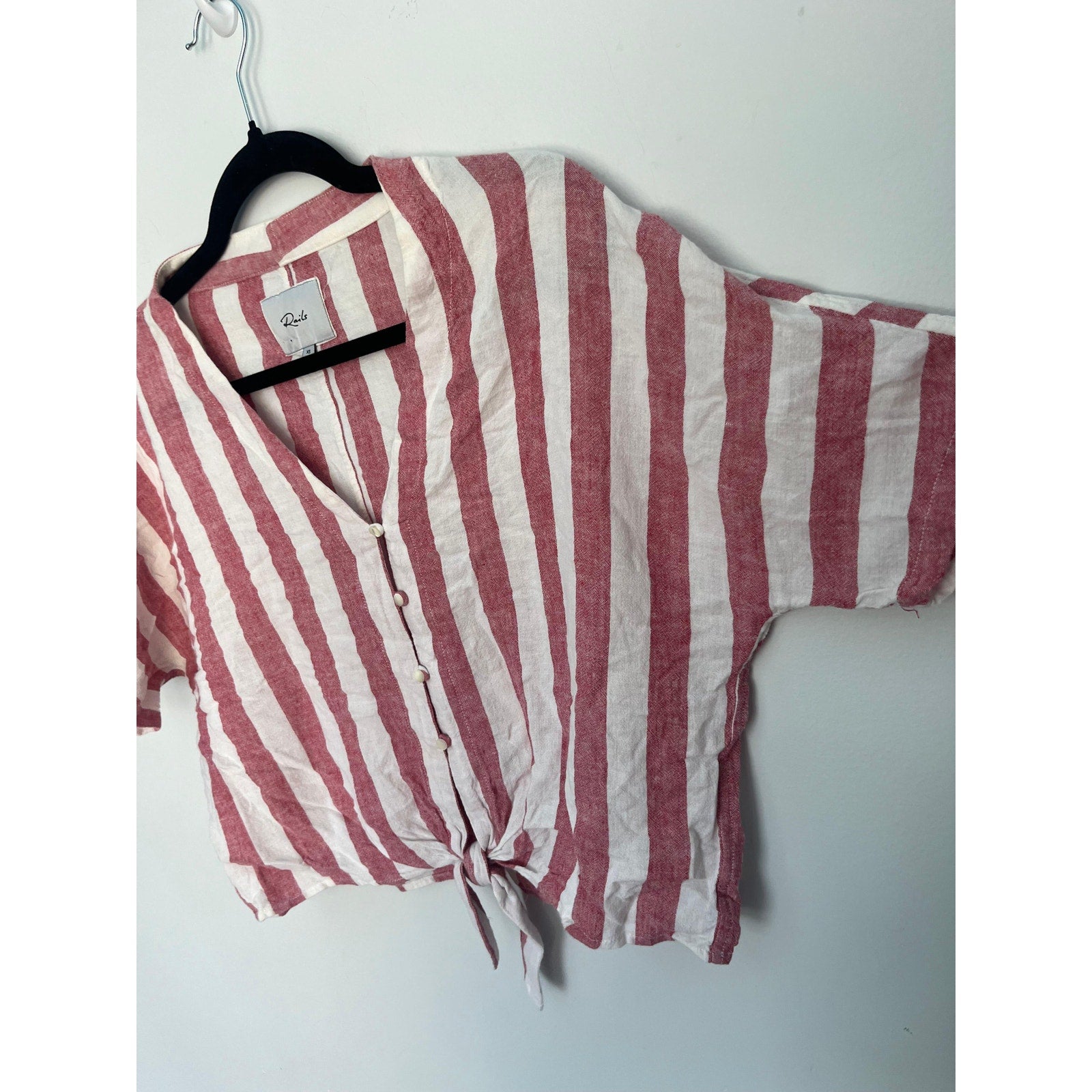 Rails Striped Button Front Shirt Women XS Red White Linen Tie Hem Summer