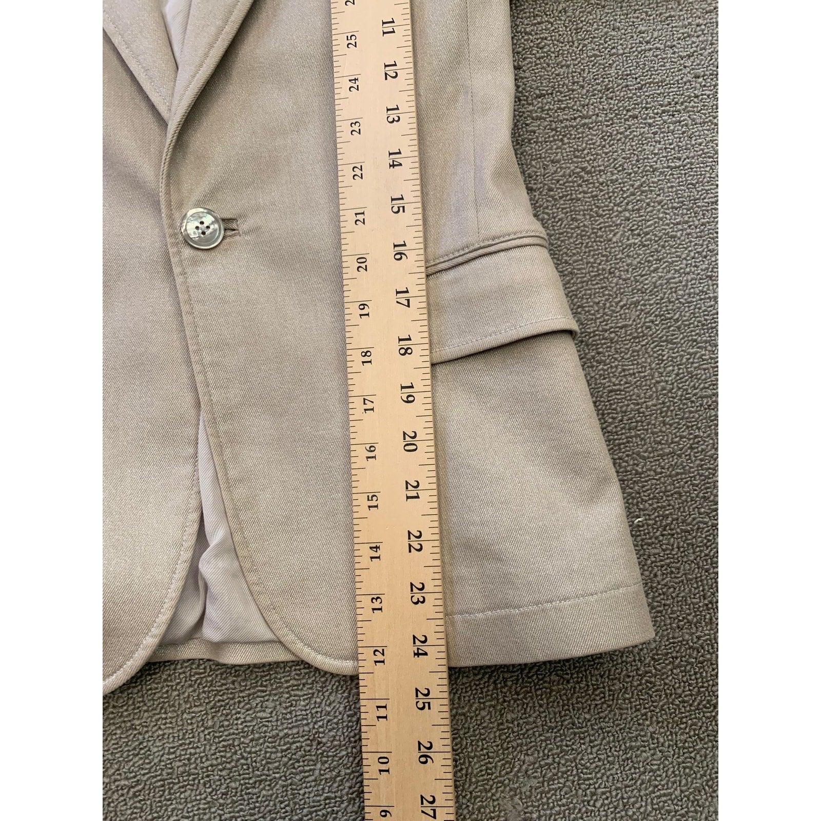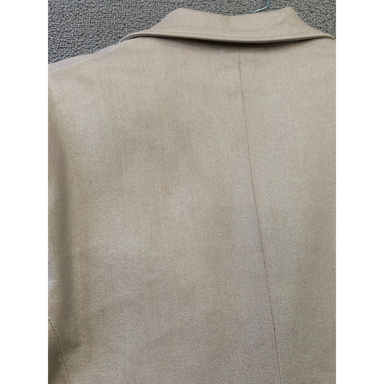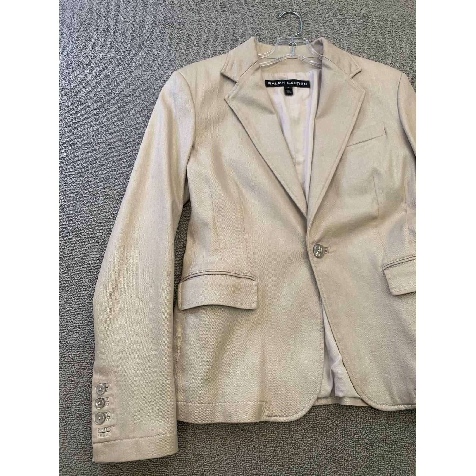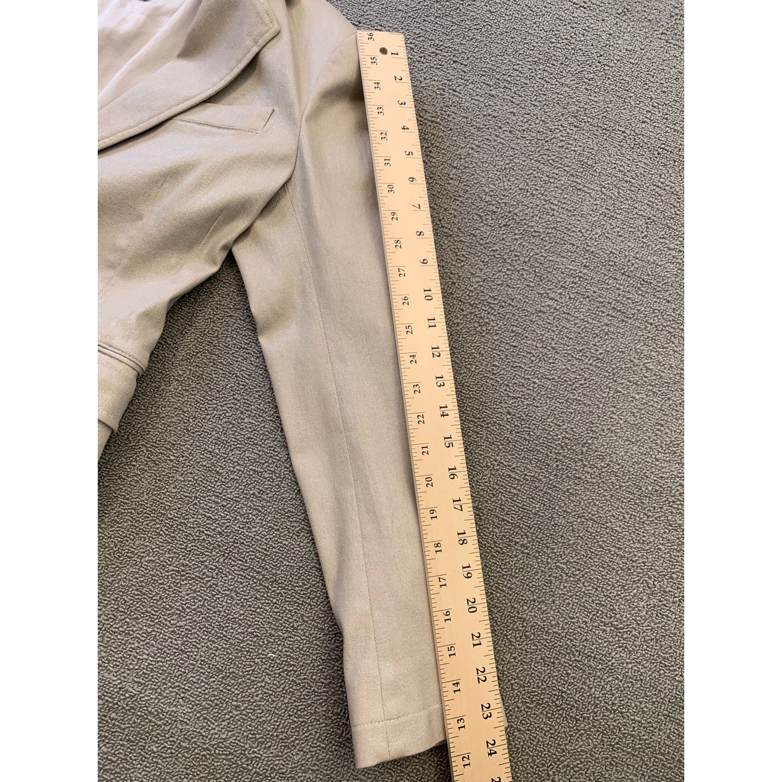 A tailored women’s Ralph Lauren single‑button blazer in size 10, crafted in Italy in a neutral beige tone. Features subtle notched lapel, structured shoulders, flap pockets, and lining visible inside—suggesting polished, professional styling.