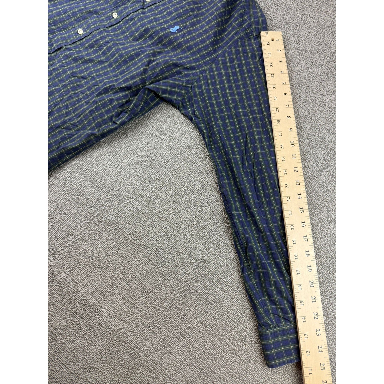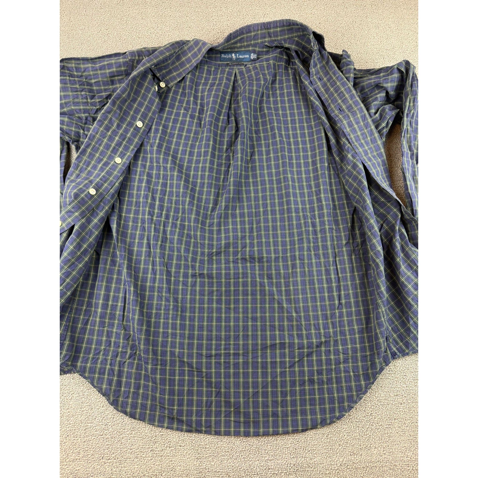 Ralph Lauren Vintage Button Down Shirt Men M 15.5 34/35 Blue Green Plaid HK