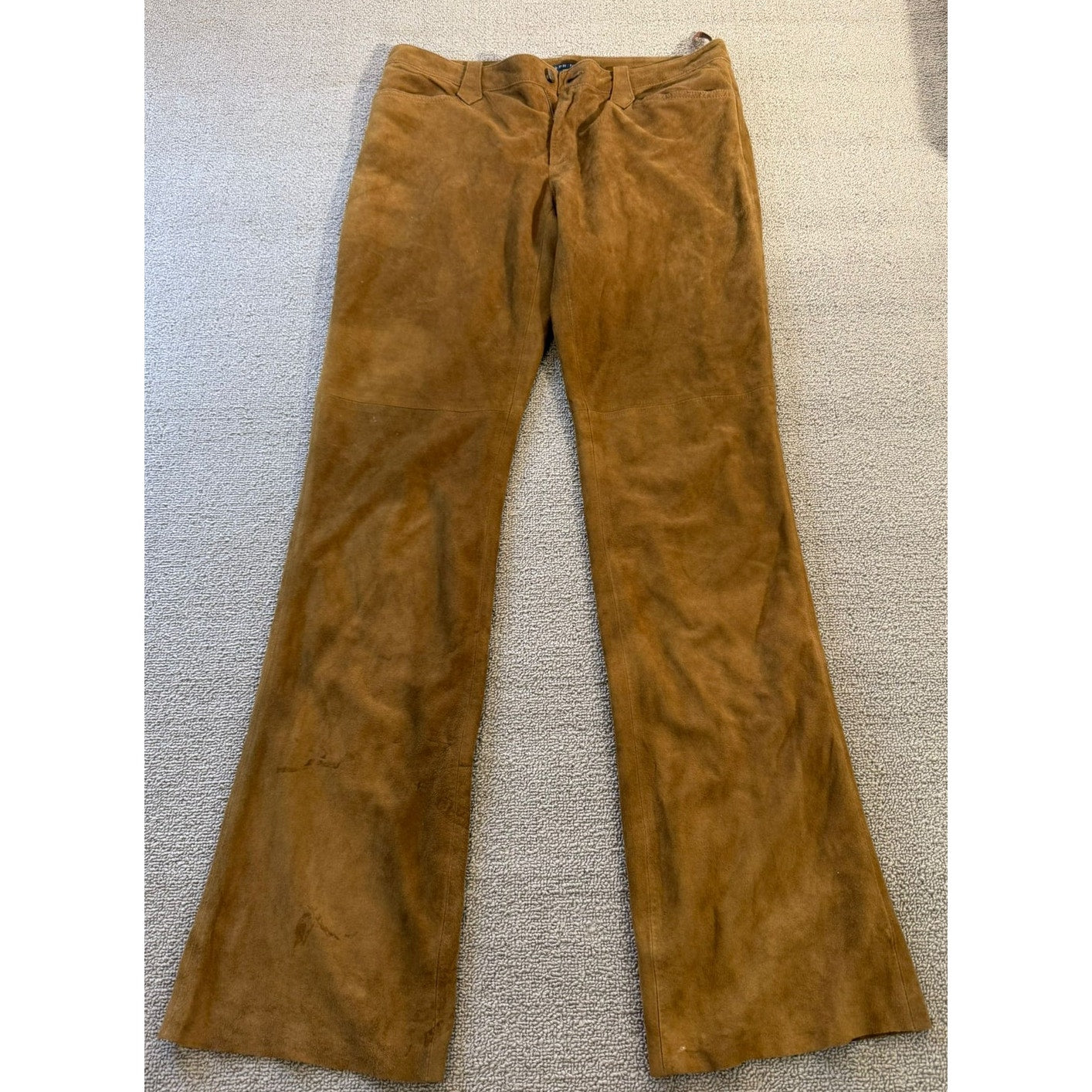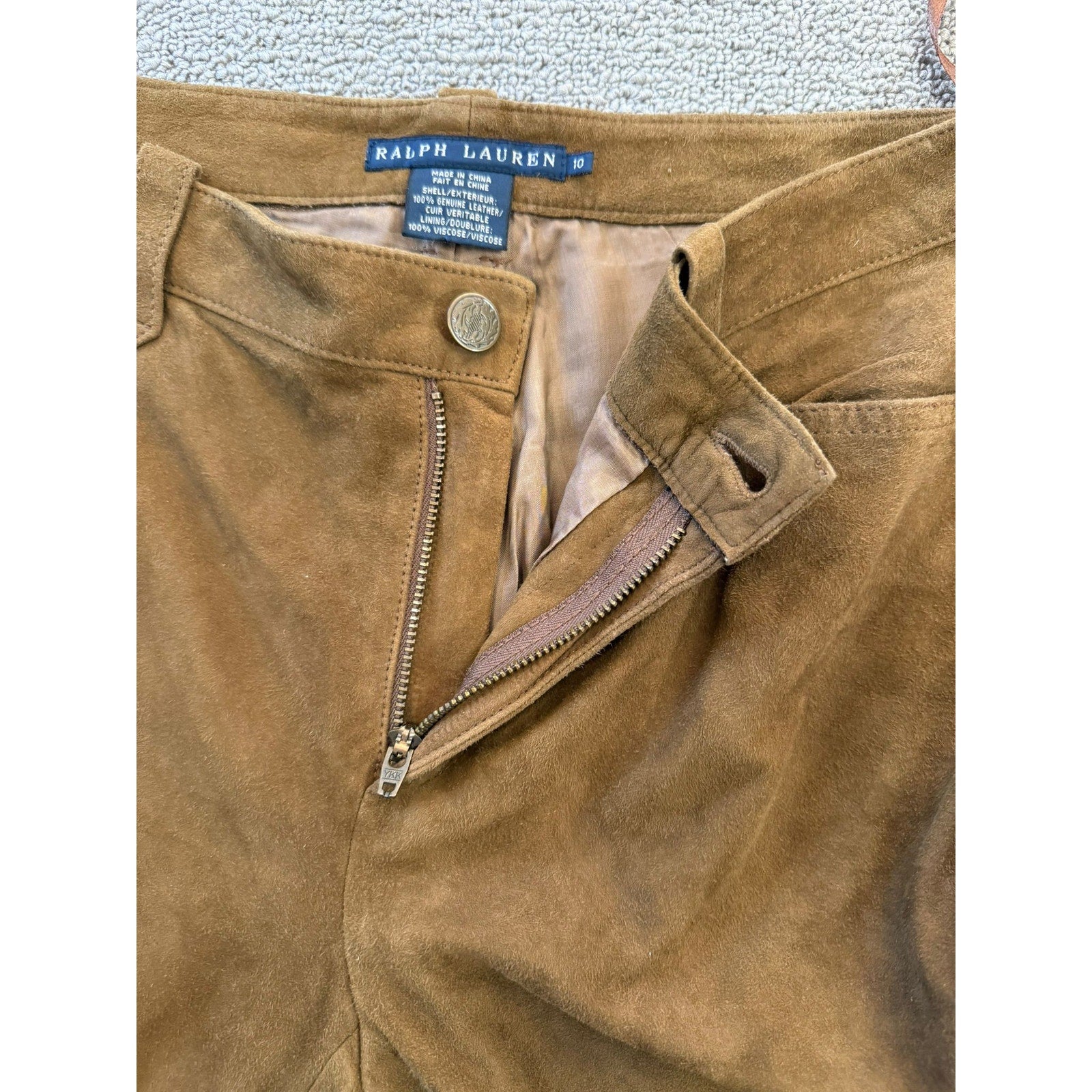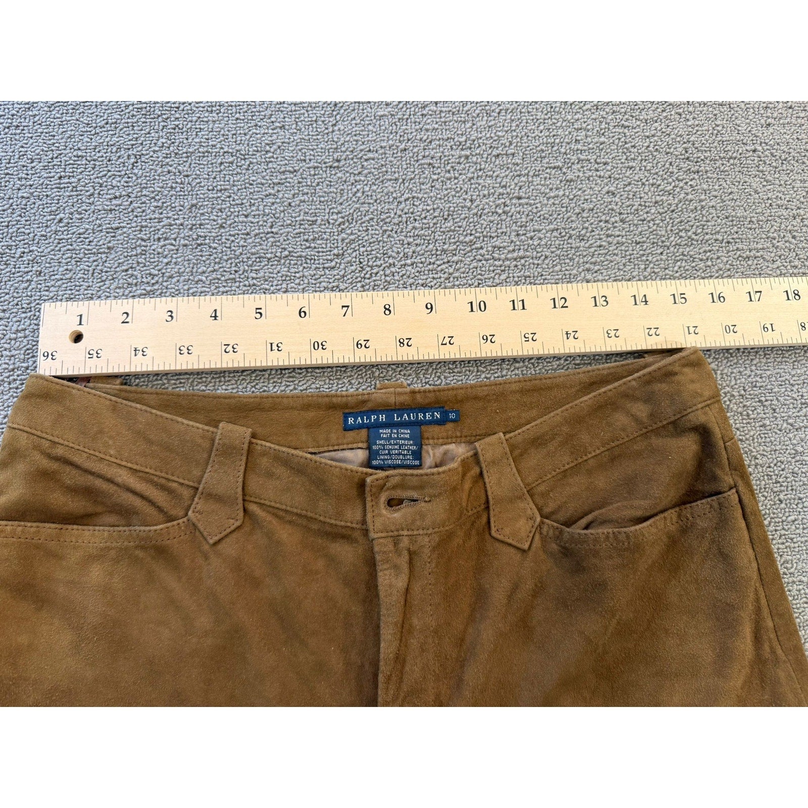 Ralph Lauren Women’s Suede Leather Pants 10 Brown Bootcut Flare Y2K Vintage.