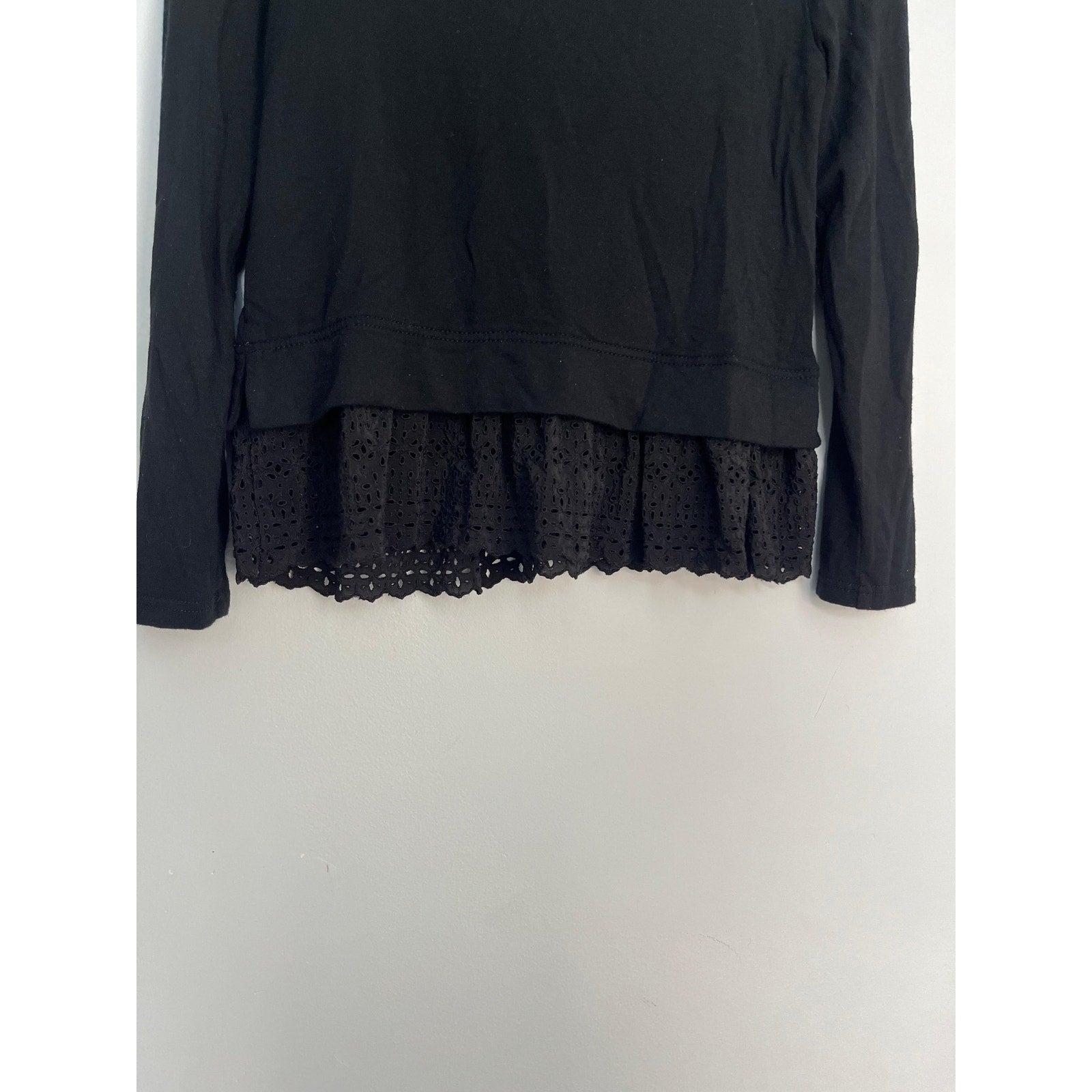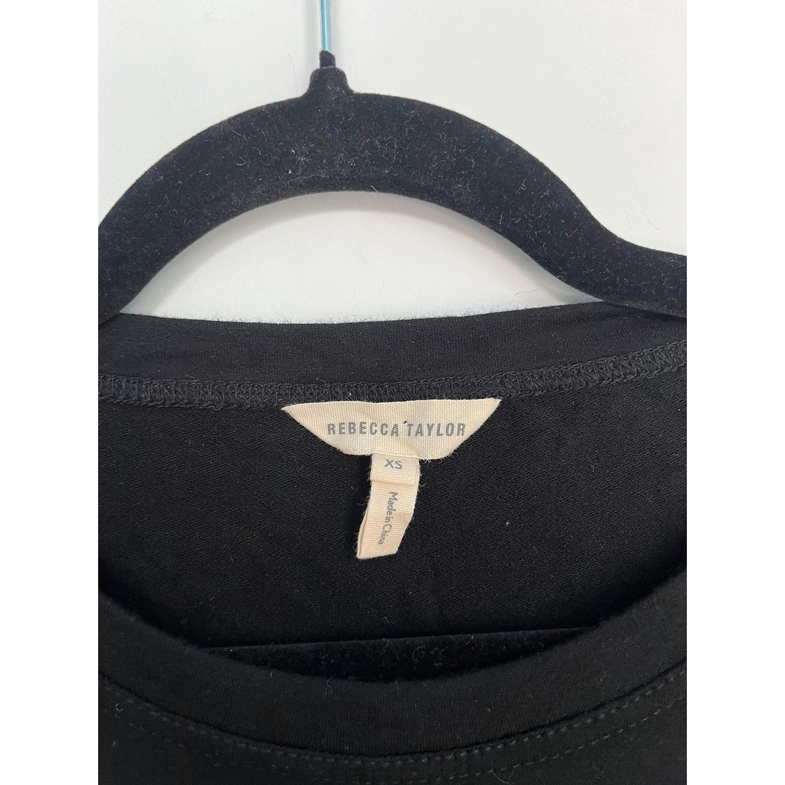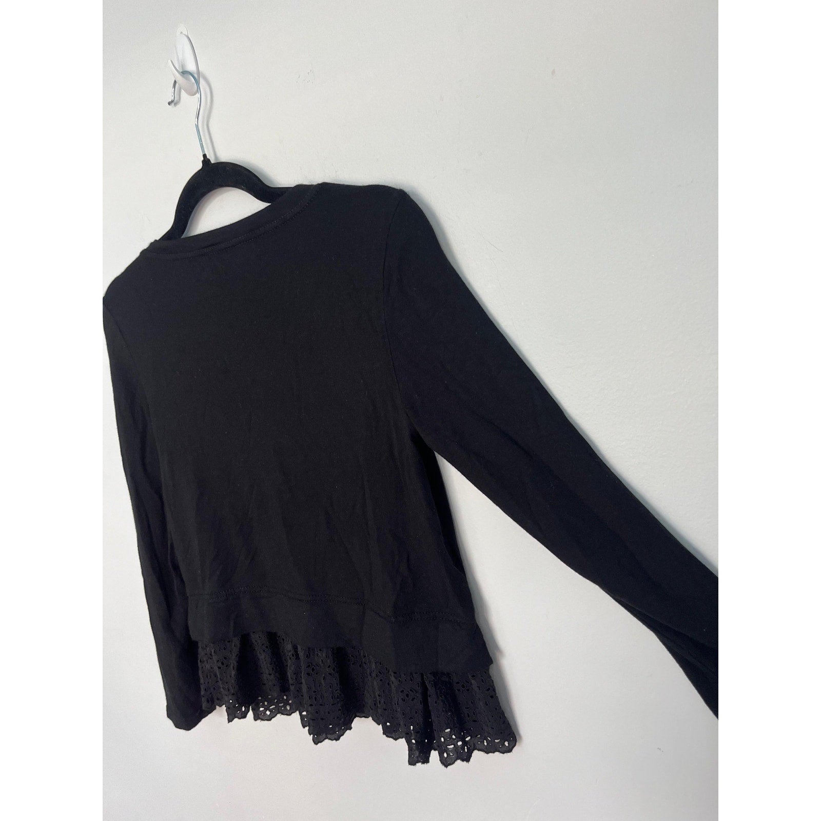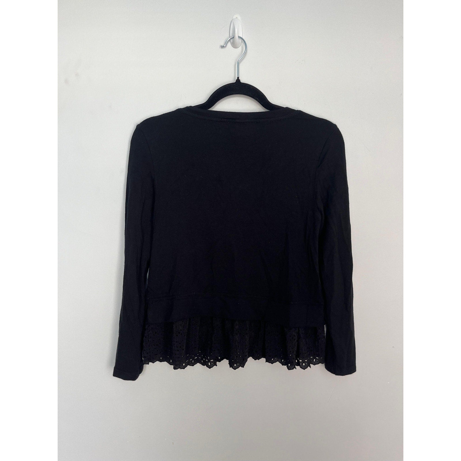 Rebecca Taylor Black Peplum Hem Top Women XS Eyelet Ruffle Long Sleeve