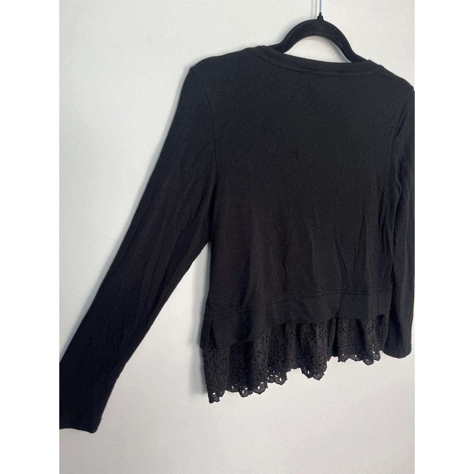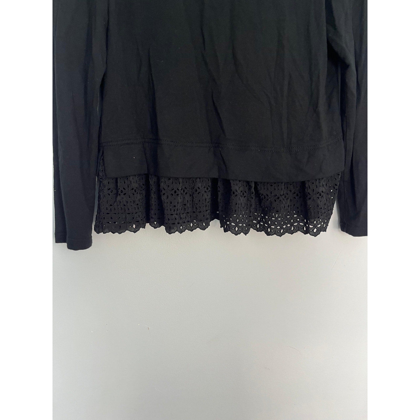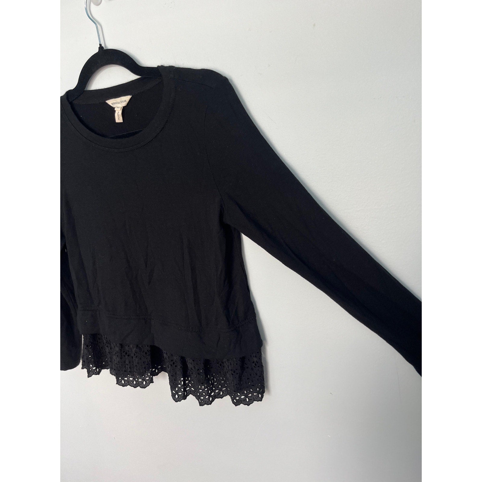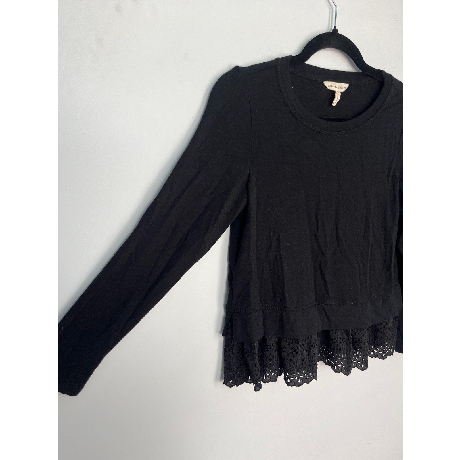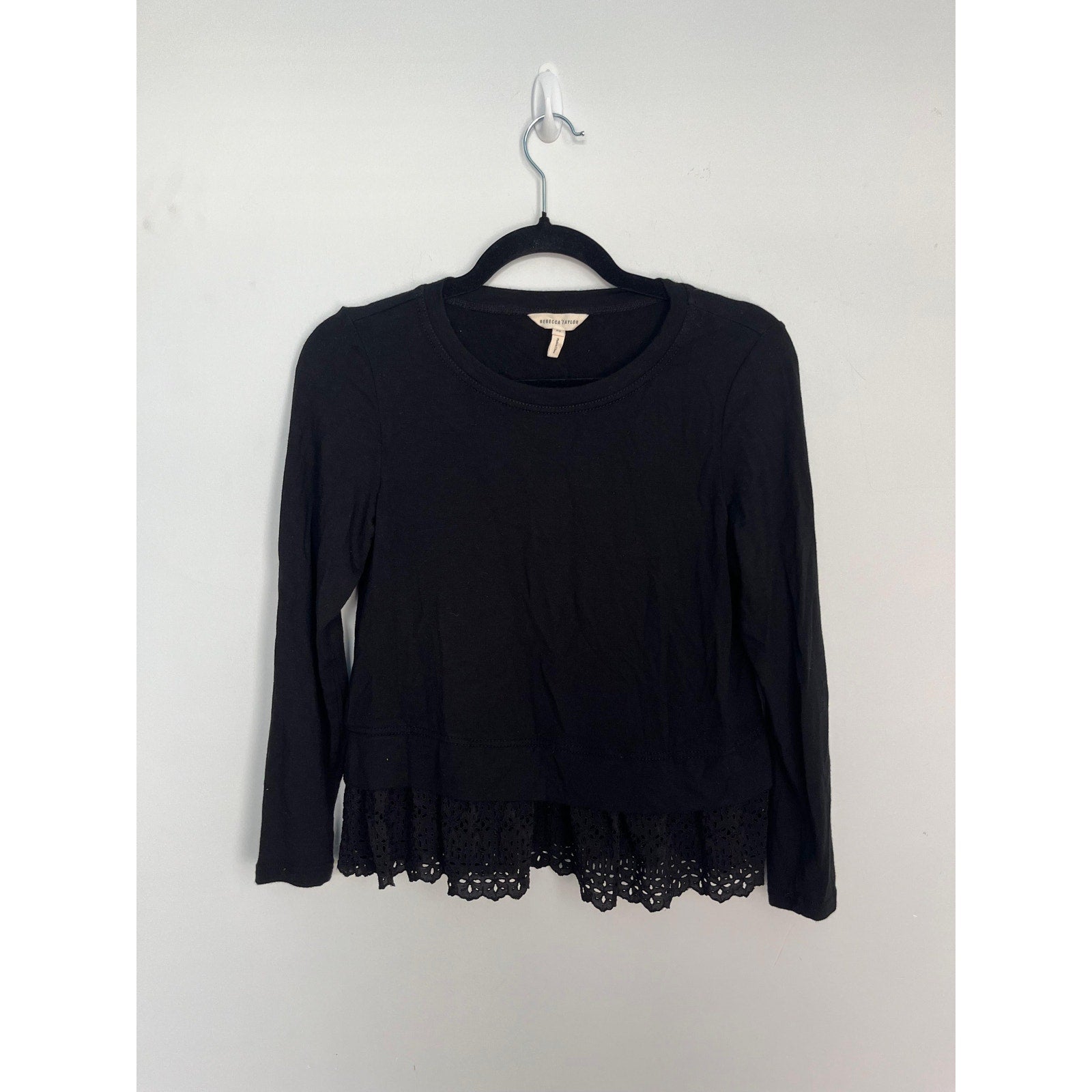 Rebecca Taylor Black Peplum Hem Top Women XS Eyelet Ruffle Long Sleeve