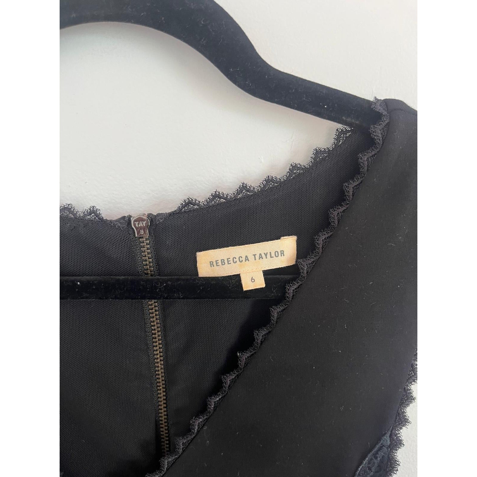 Rebecca Taylor Mini Dress Women 6 Black Lace Trim Sleeveless Cocktail