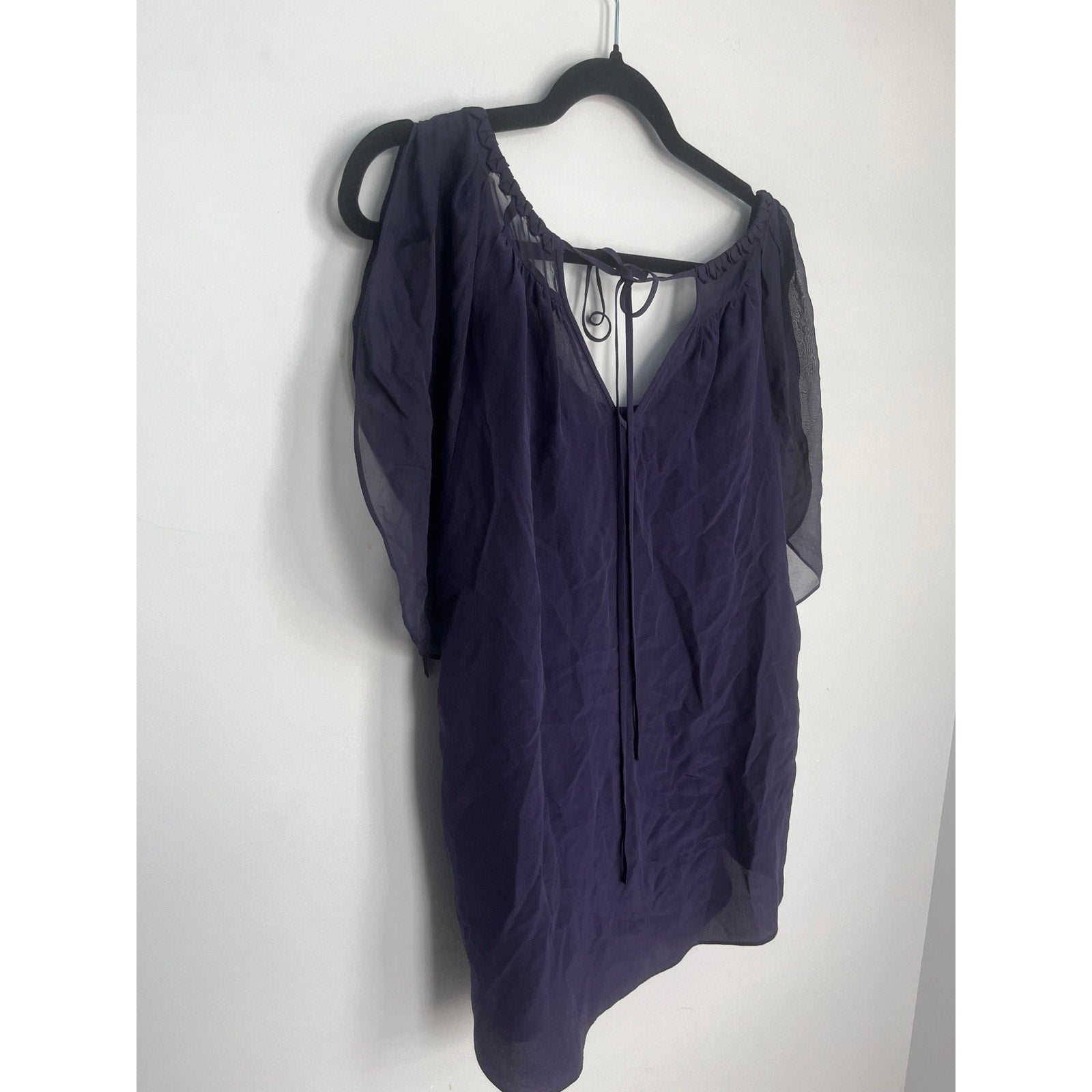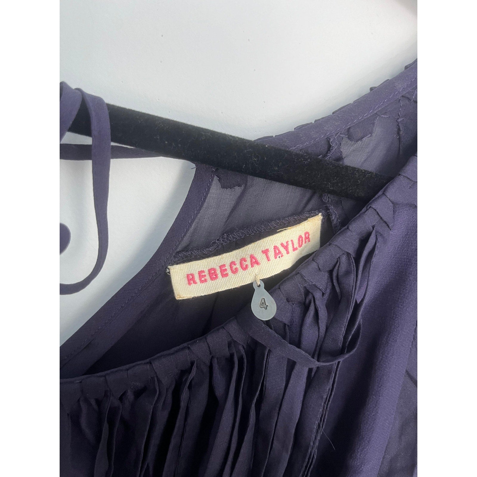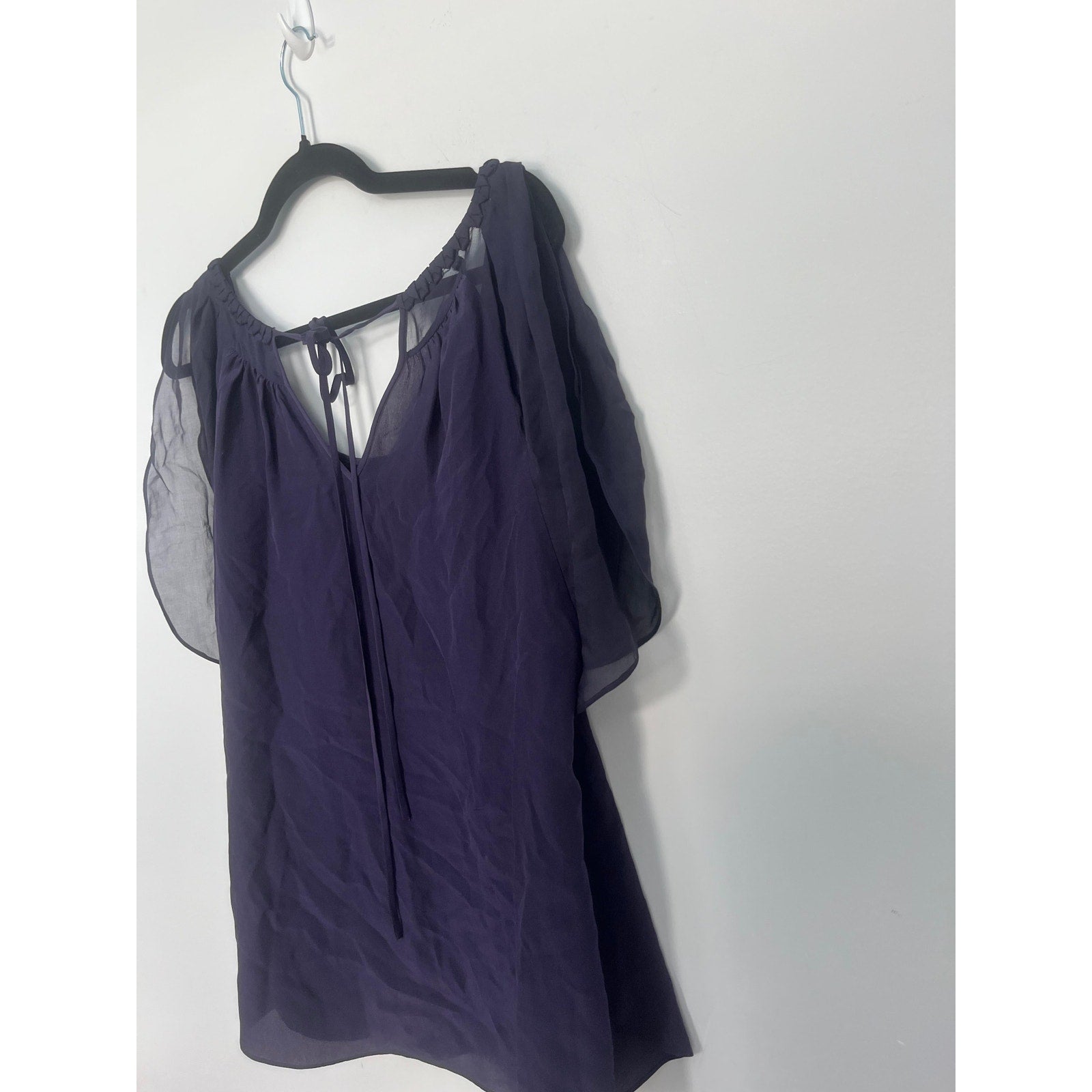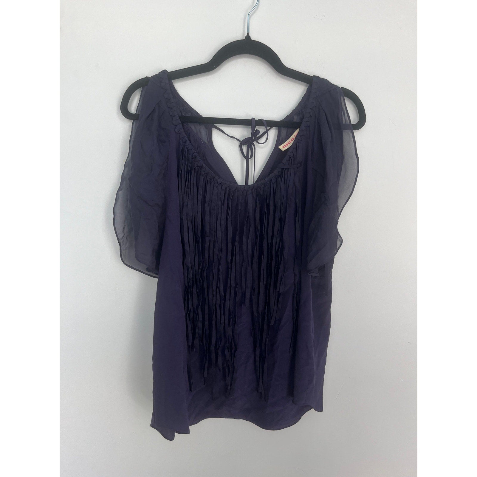 Rebecca Taylor Pleated Chiffon Blouse Women 4 Purple Flutter Sleeve Top