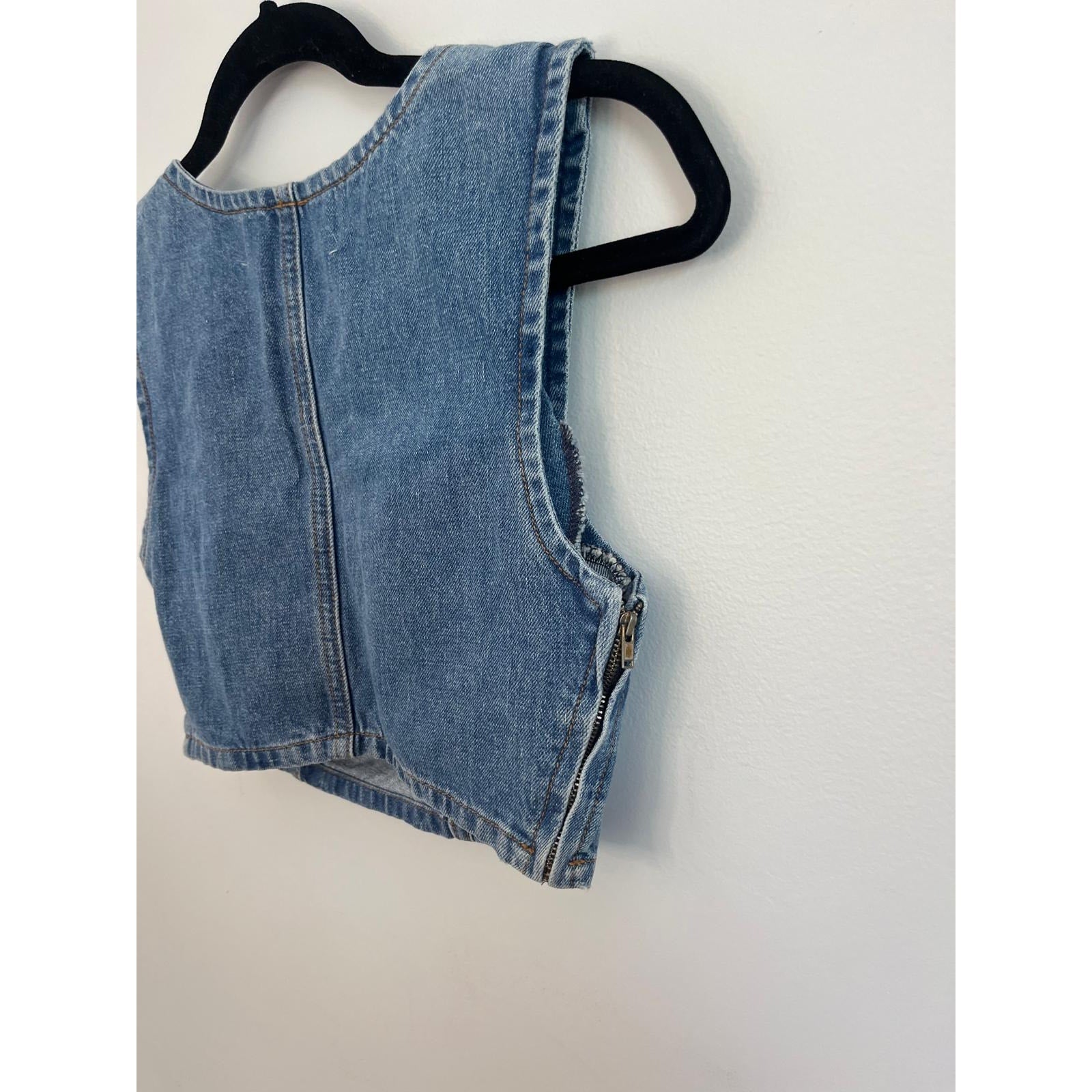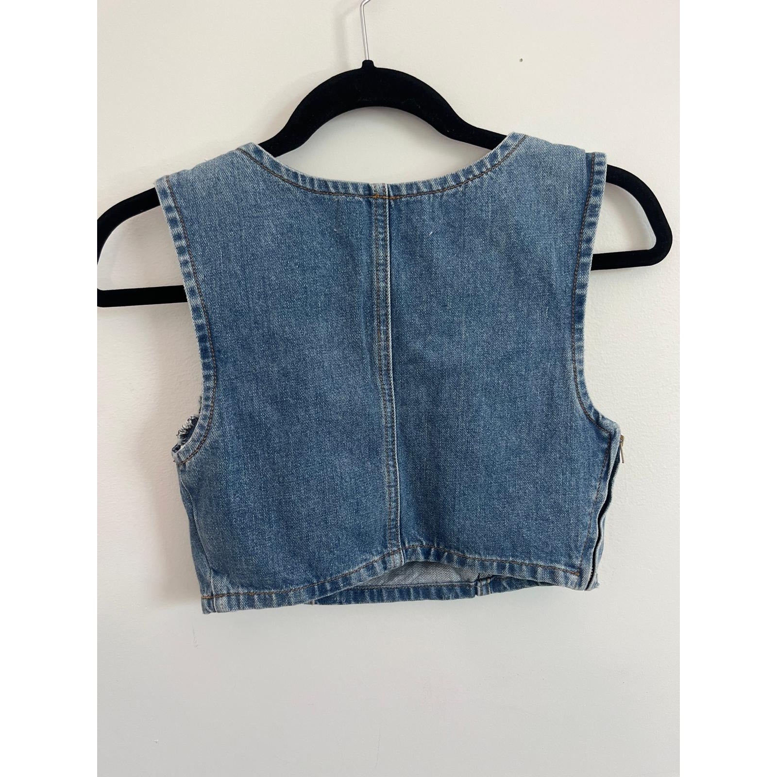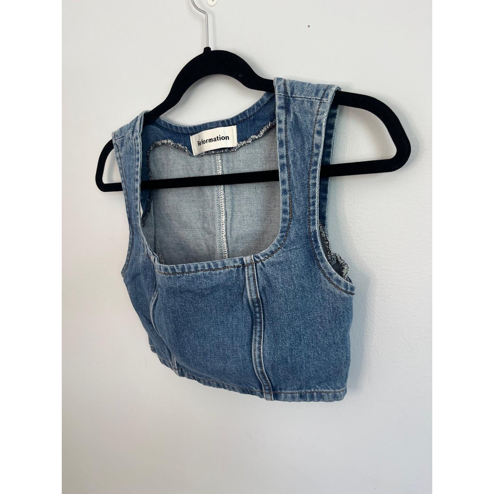Reformation Denim Crop Top Women 0 Blue Square Neck Corset Stitch Tank