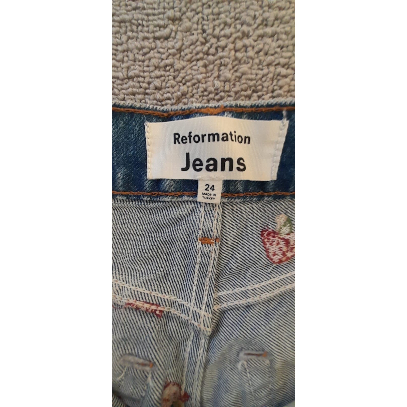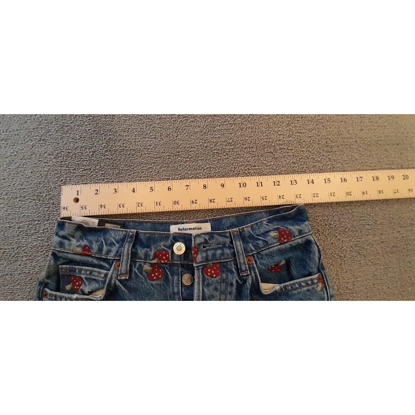 Reformation Jeans Womens 24 Blue Mushroom Print Straight Leg Denim