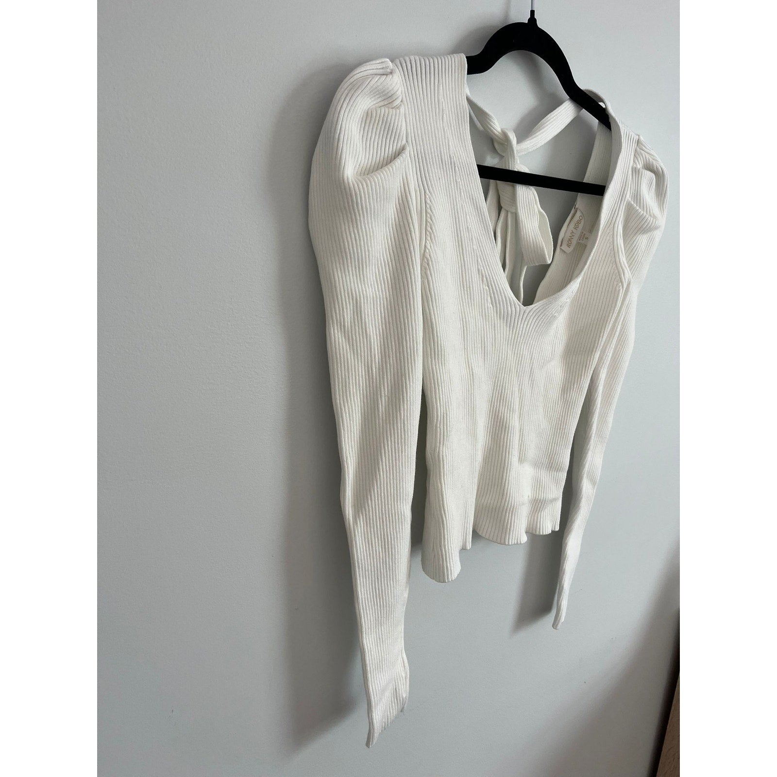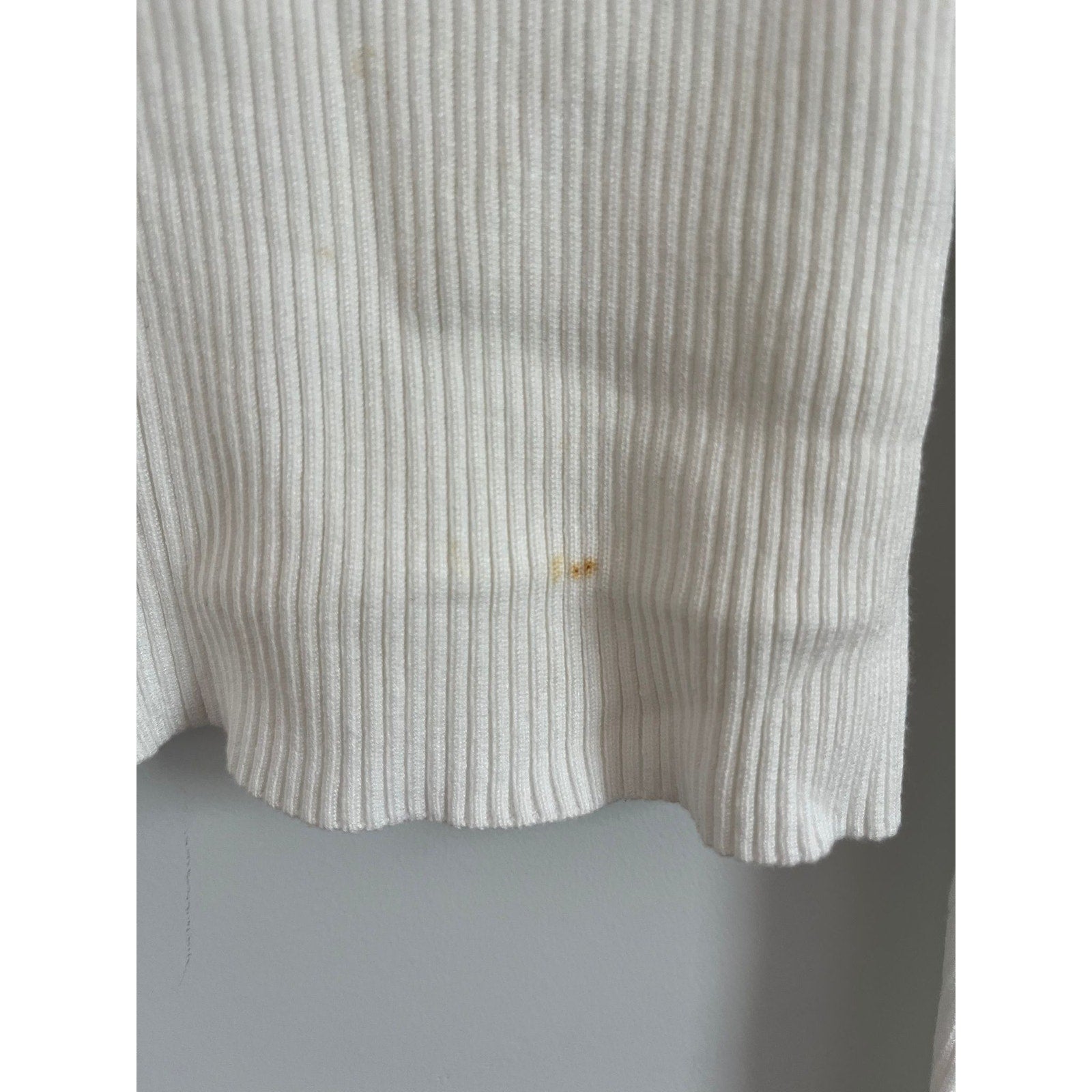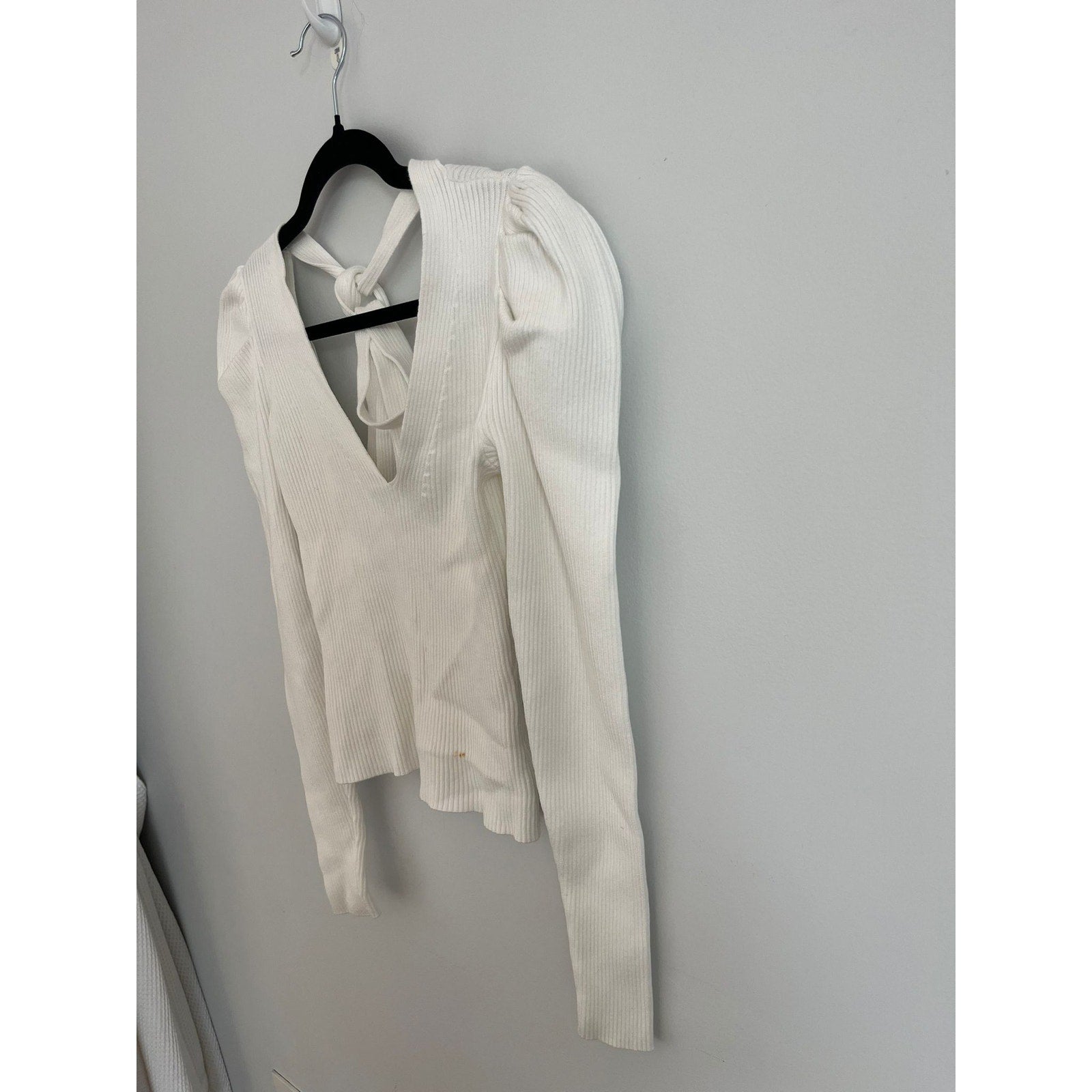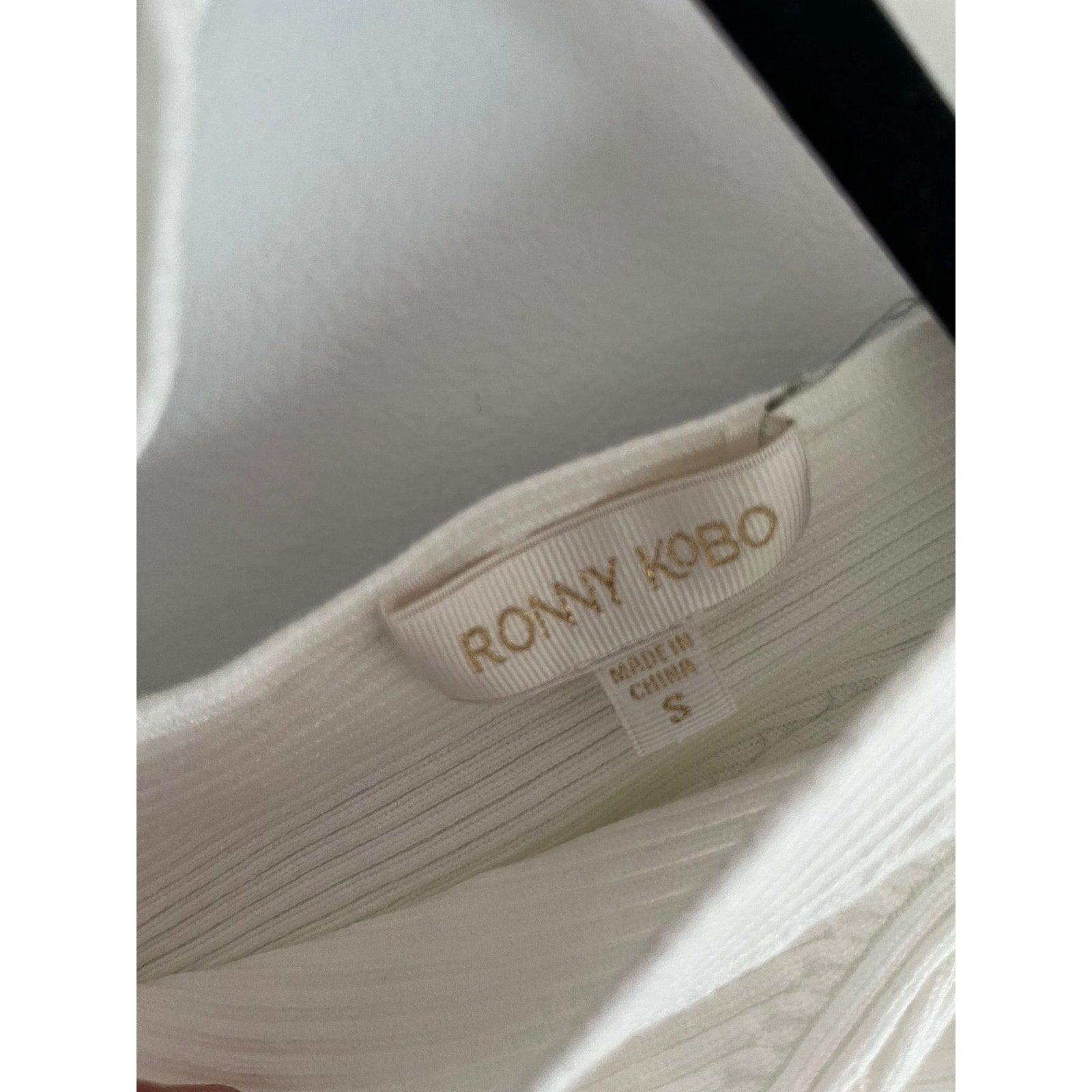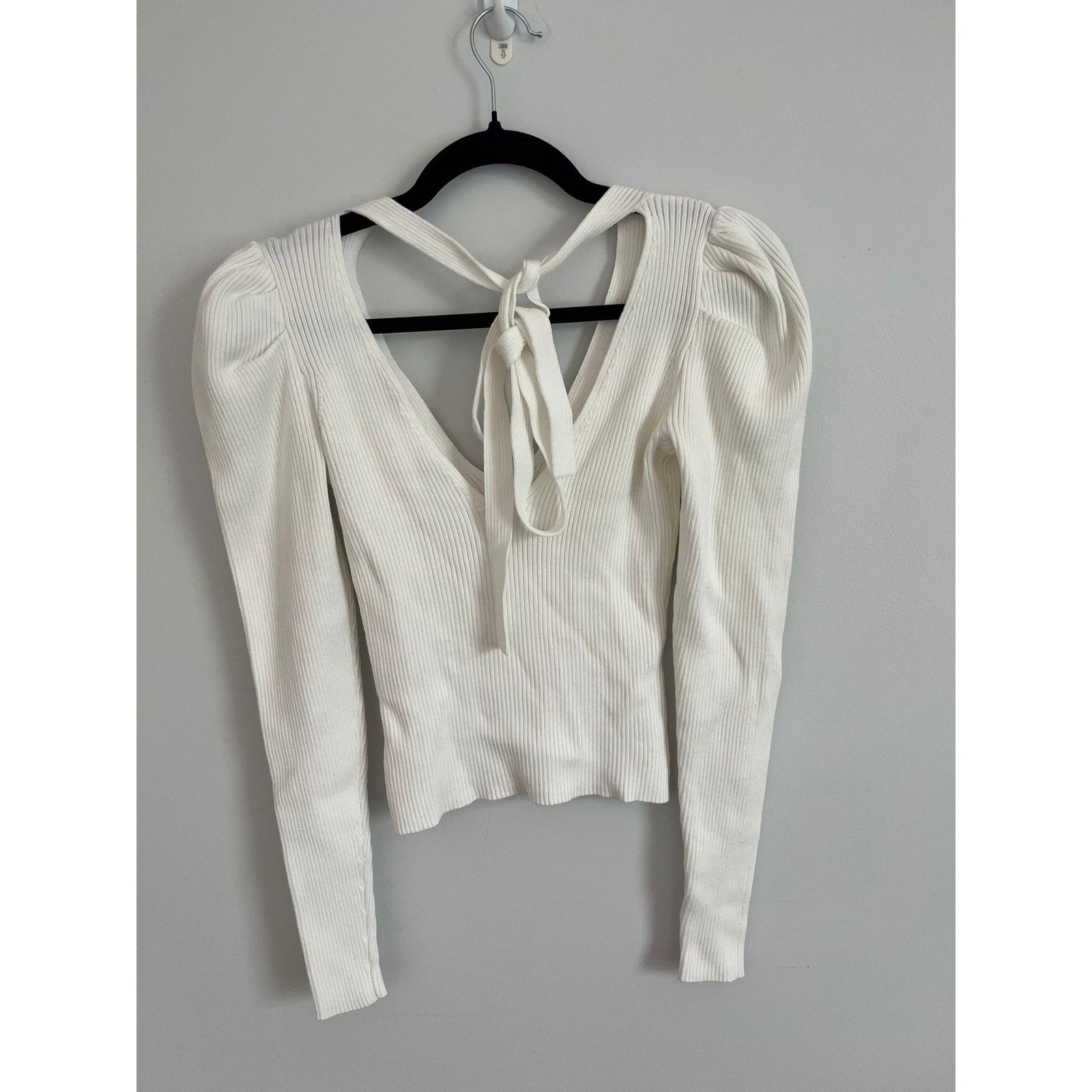Ronny Kobo Top Women S White Ribbed Knit Puff Sleeve Tie Back Stretch V Neck