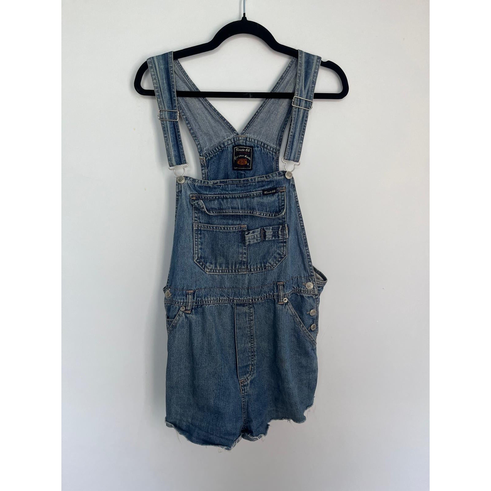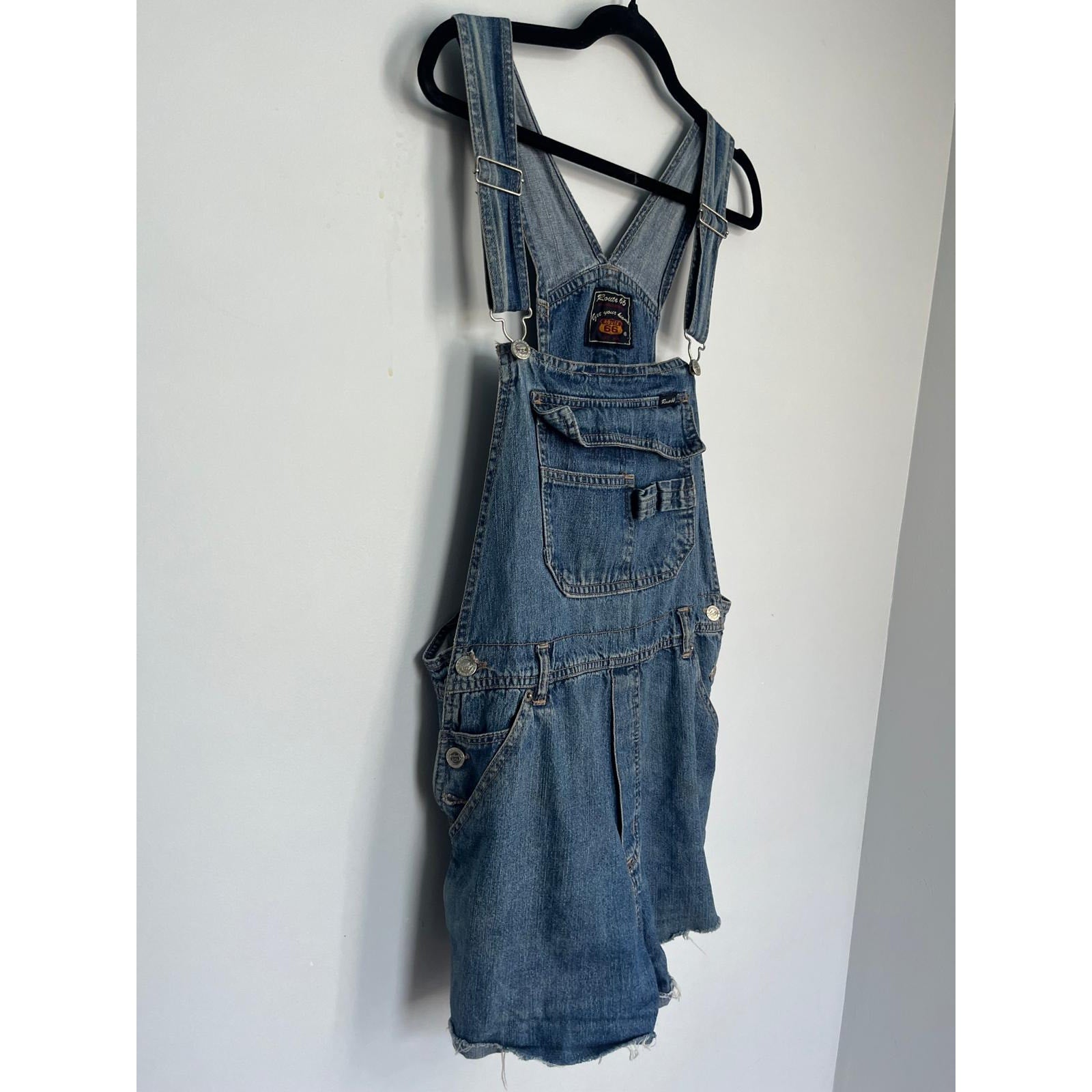 Route 66 Denim Overalls Shorts Women L Vintage Distressed Carpenter Utility