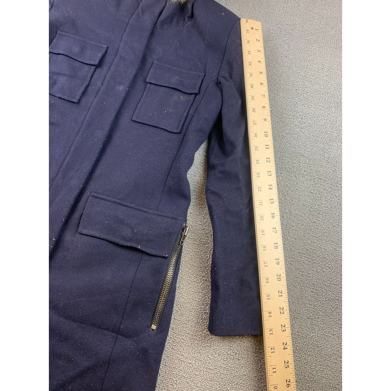 SAM Parka Women's Size Small Blue Jacket Wool Blend Real Fur Hood