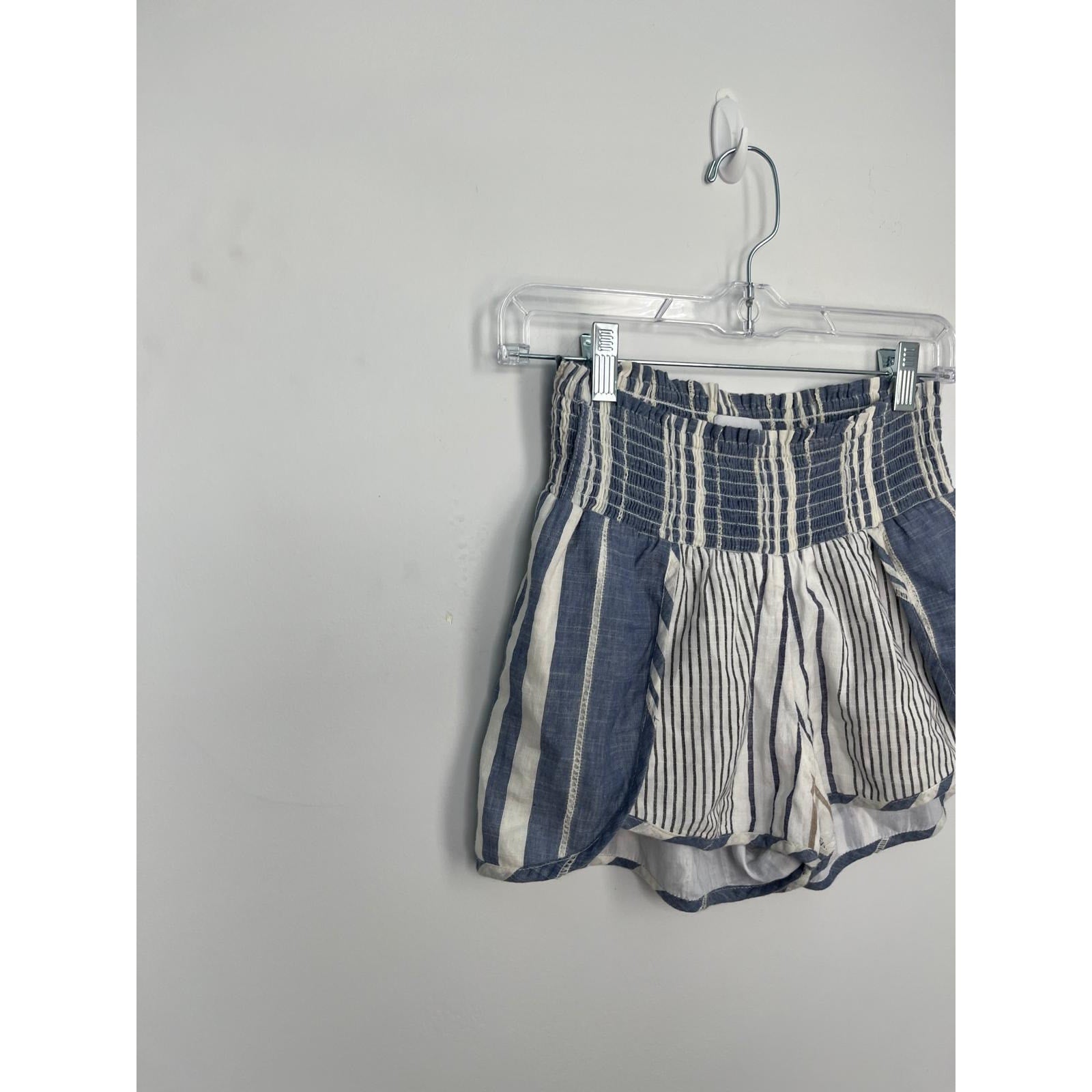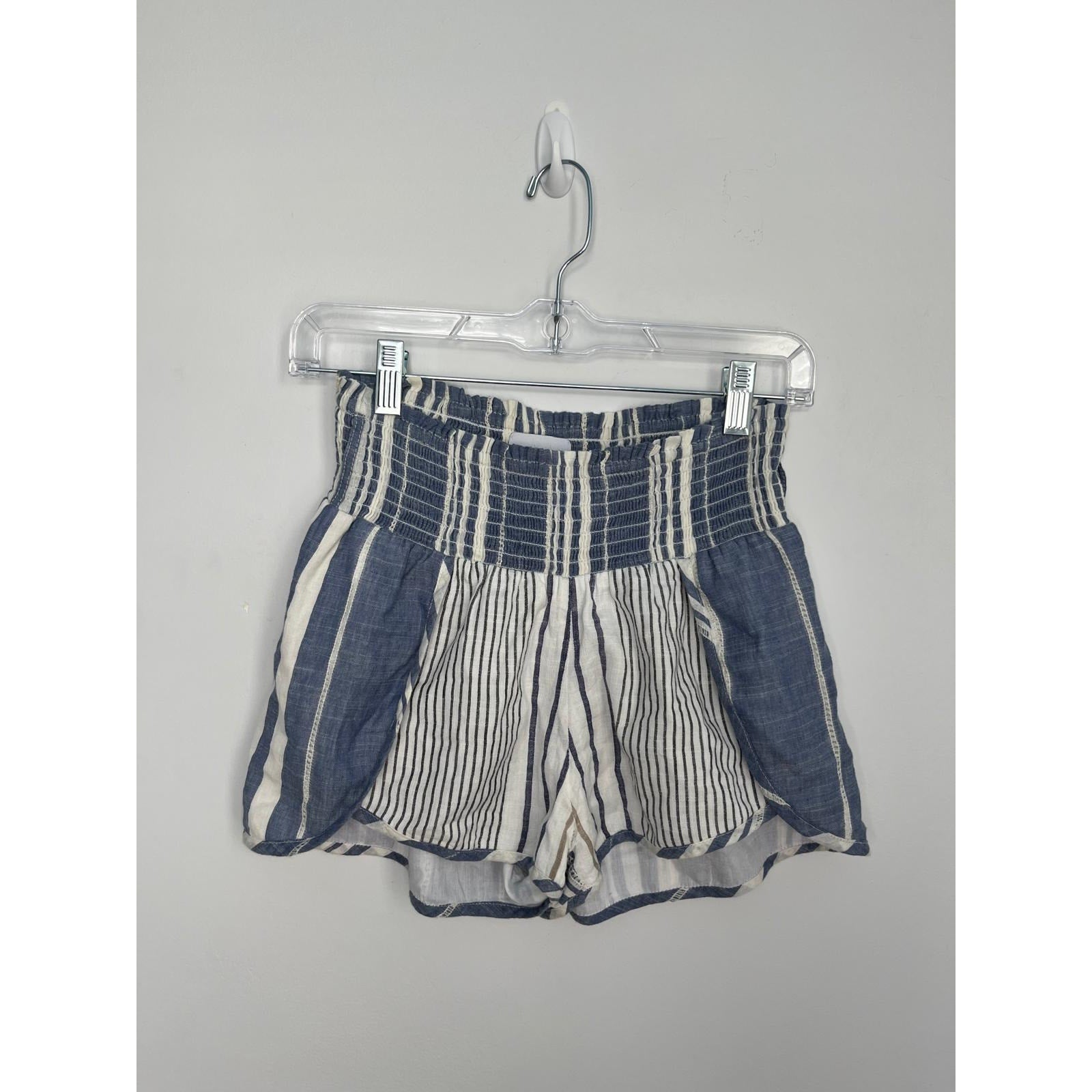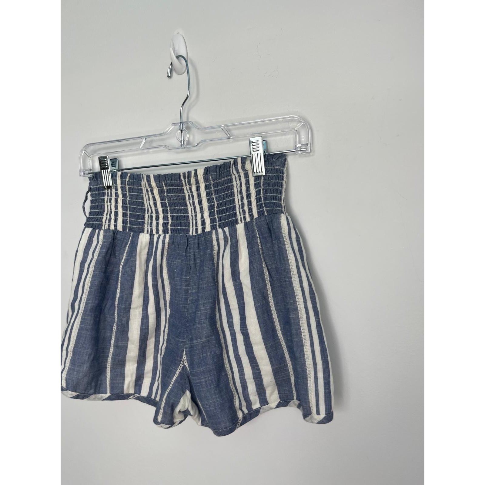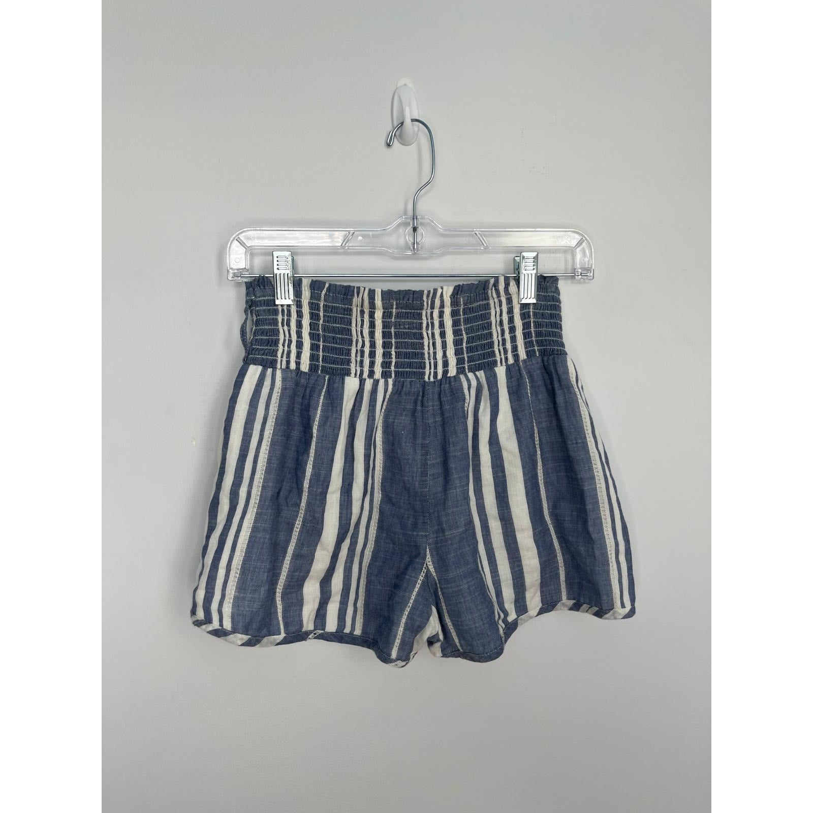 Saylor Striped Linen Blend Shorts Women XS Blue White Smocked High Waist