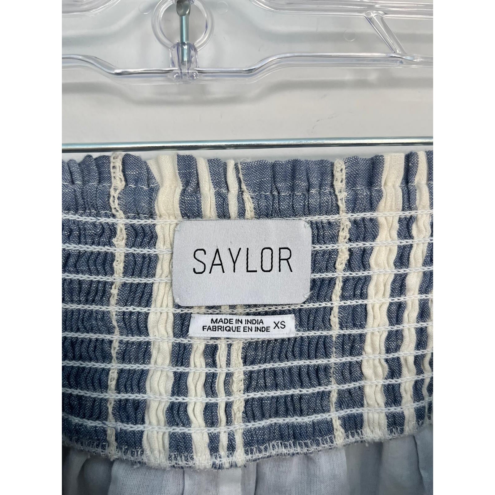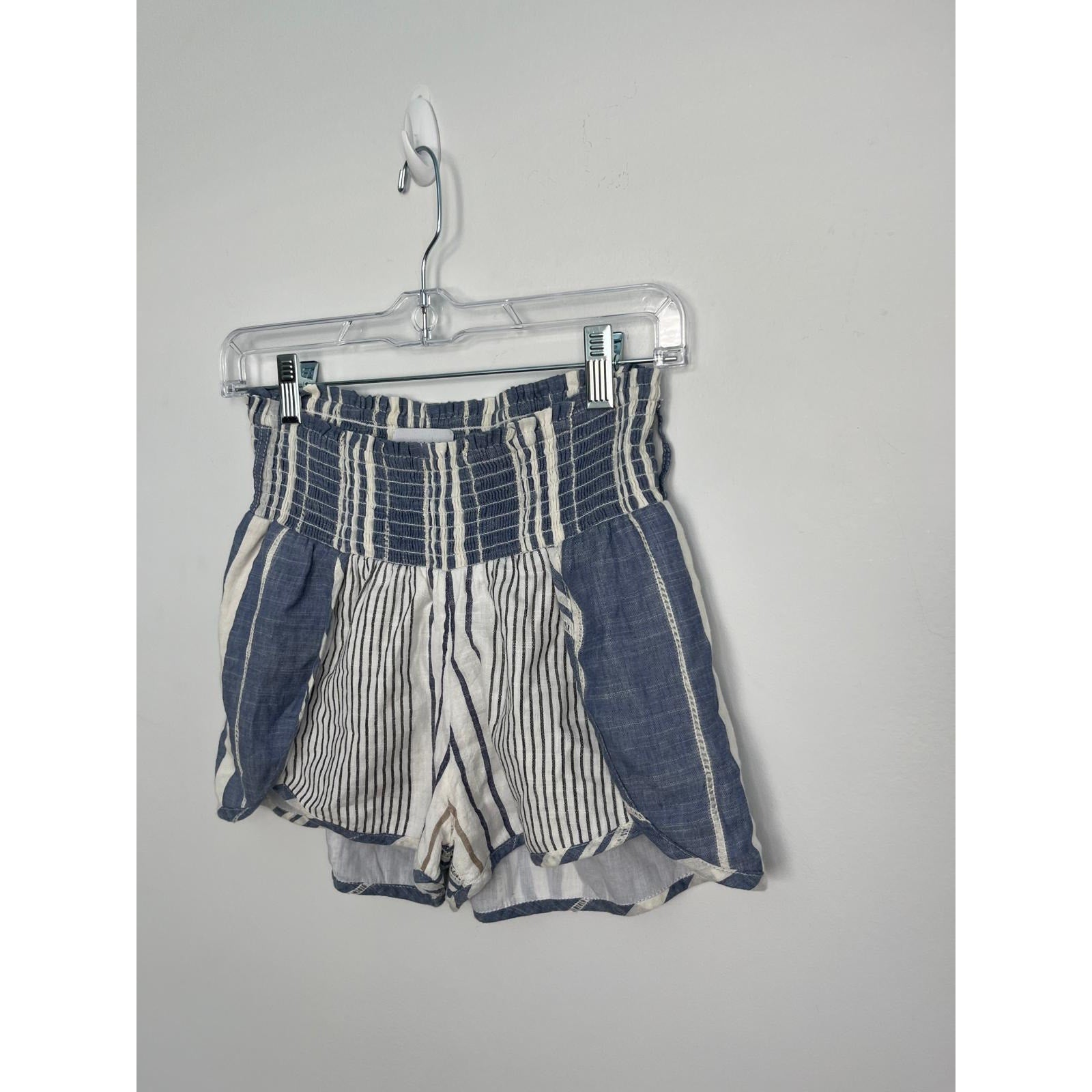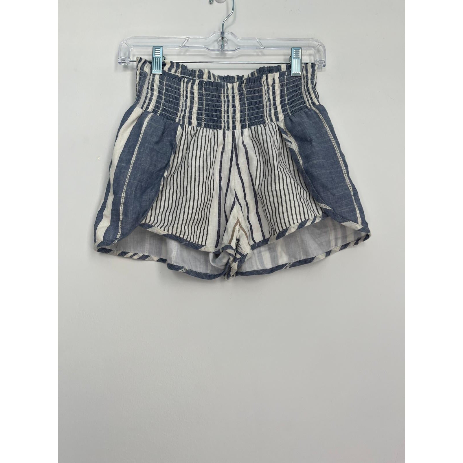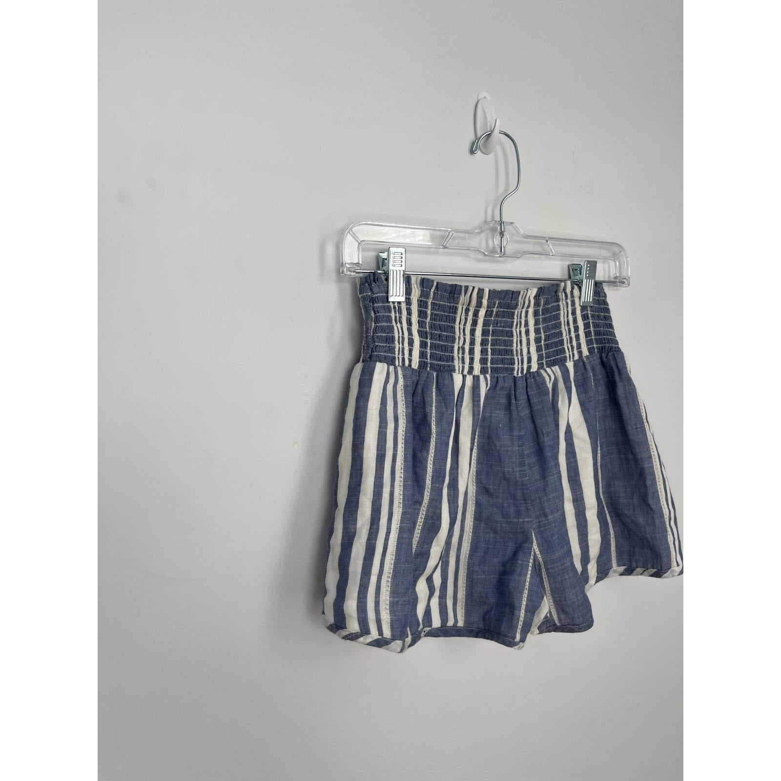 Saylor Striped Linen Blend Shorts Women XS Blue White Smocked High Waist