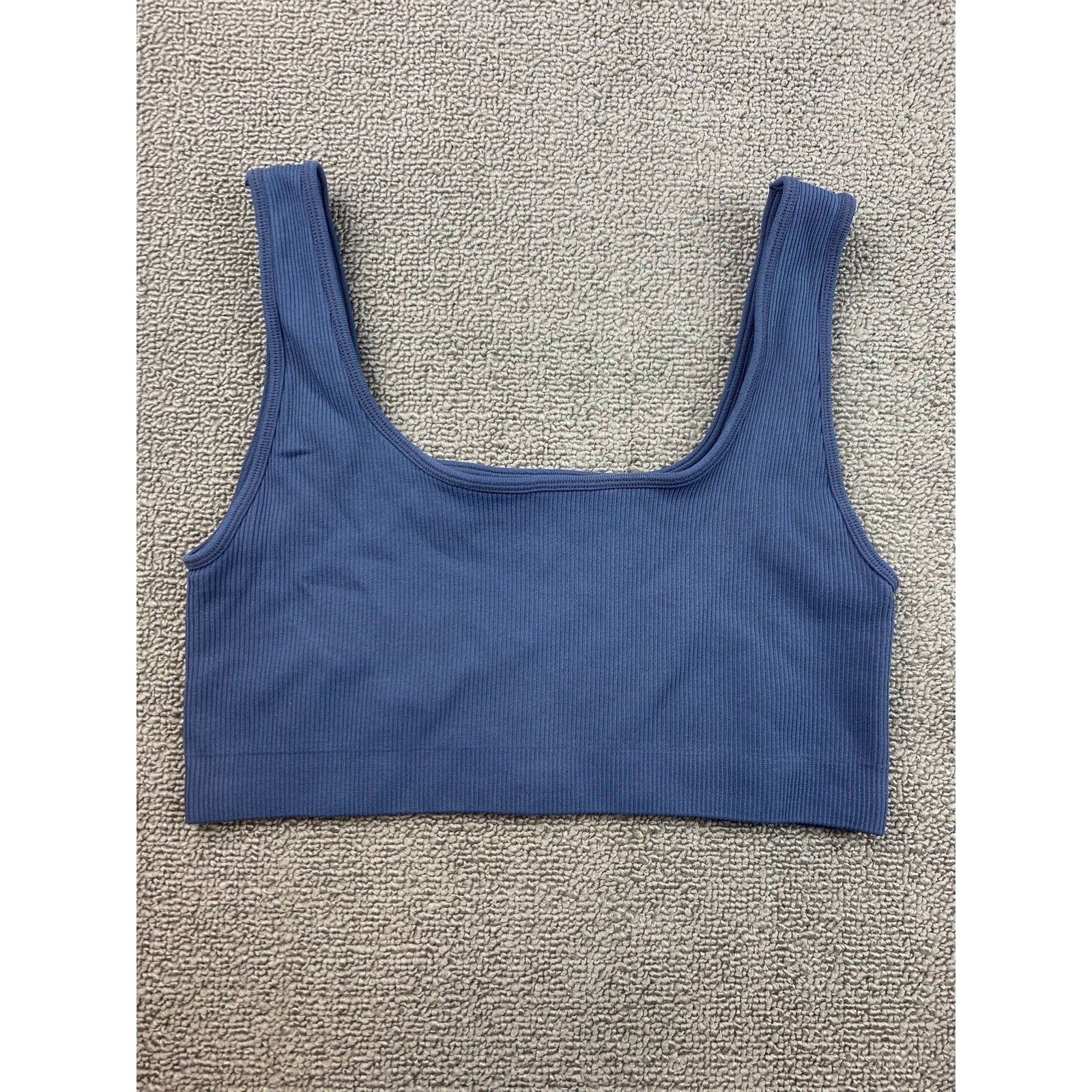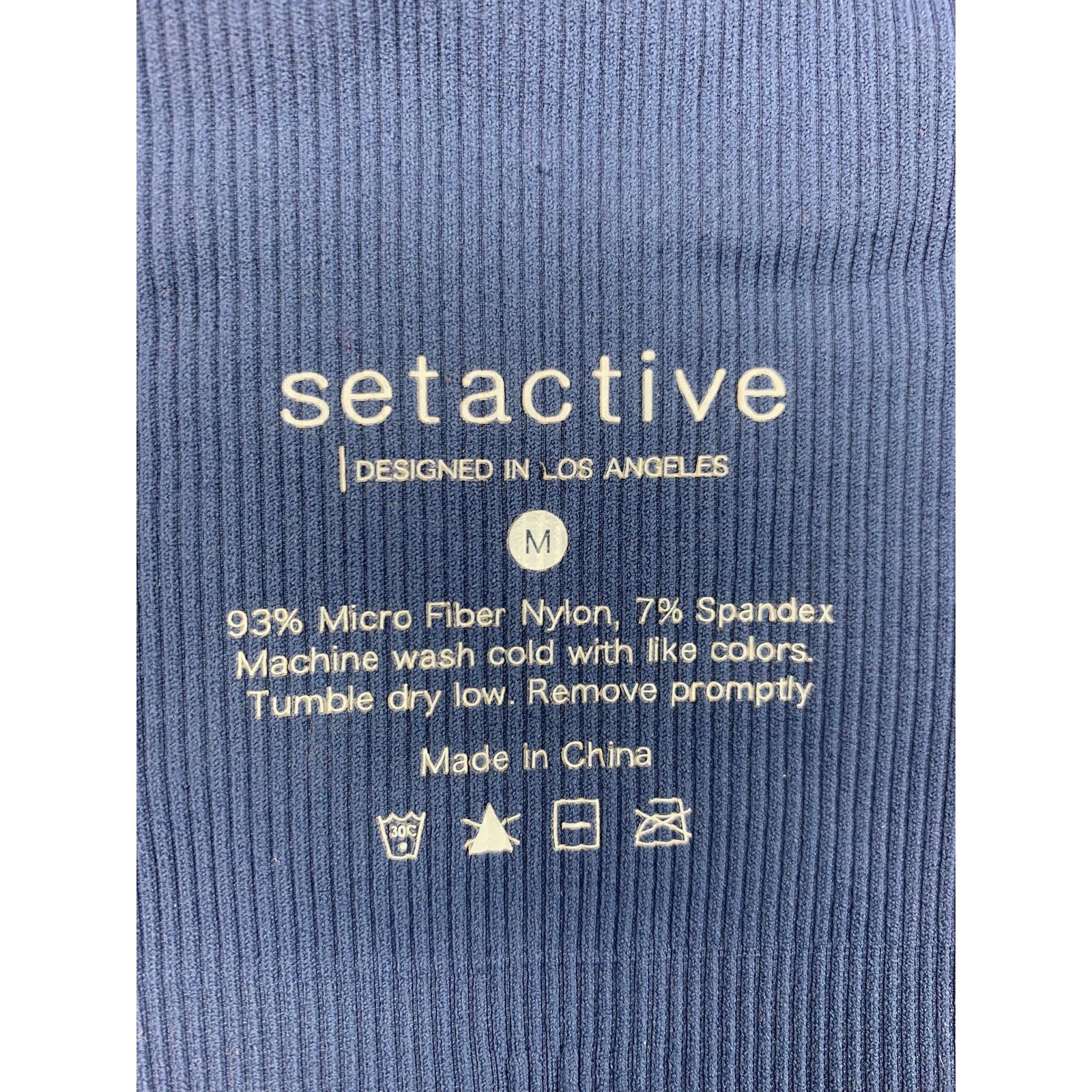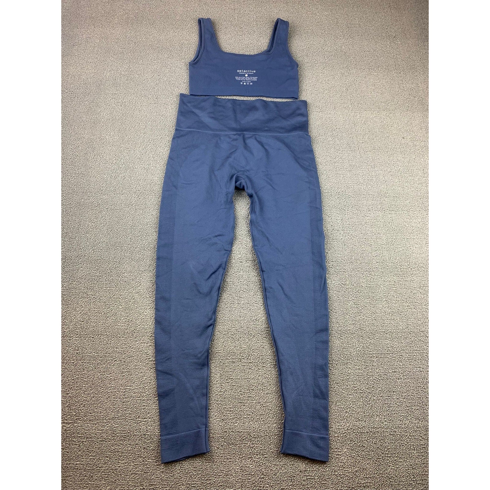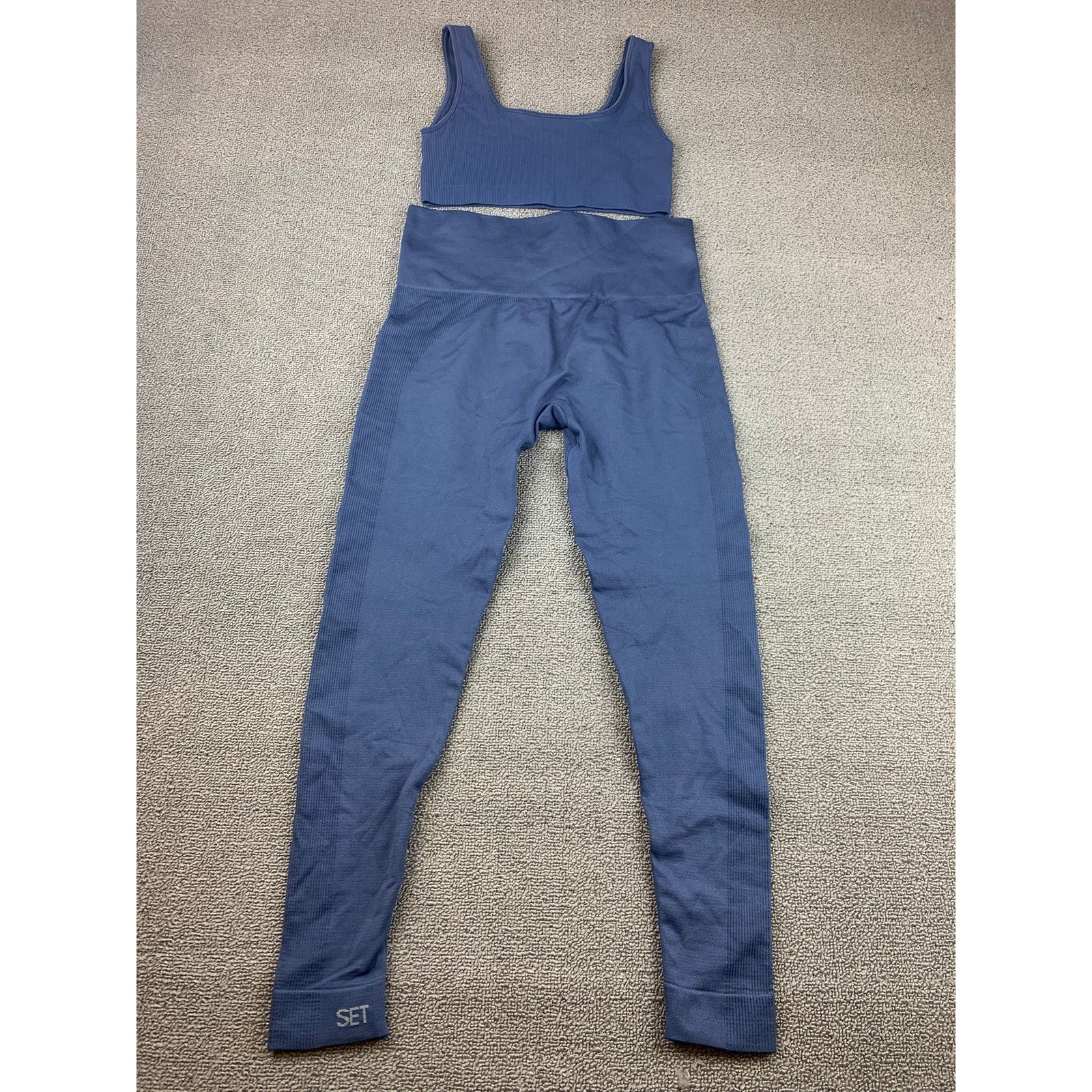 Set Active Women's Medium Blue Ribbed Activewear Sports Bra Leggings Set