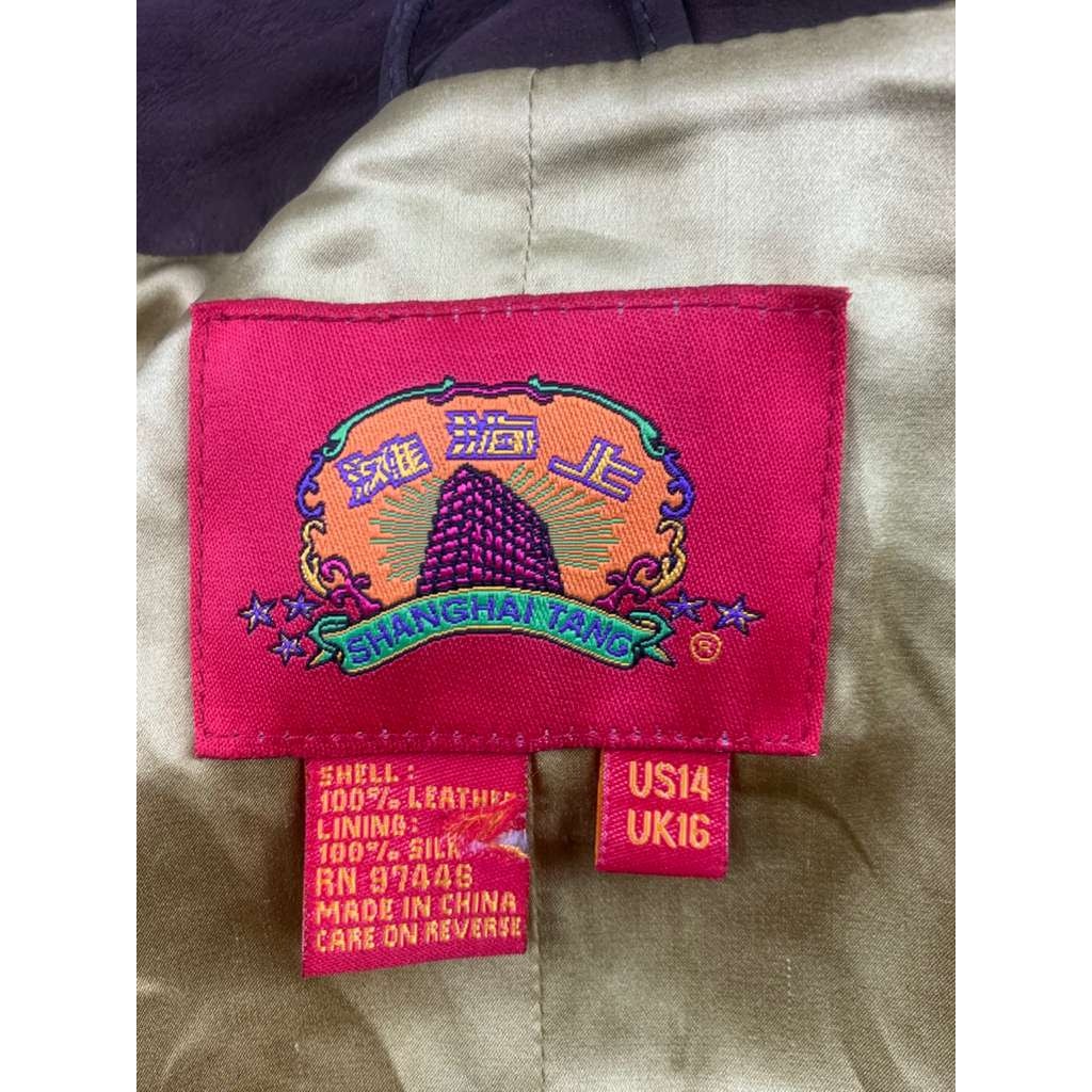 Shanghai Tang Jacket Size 14 Brown 100% Suede Leather Silk Lining