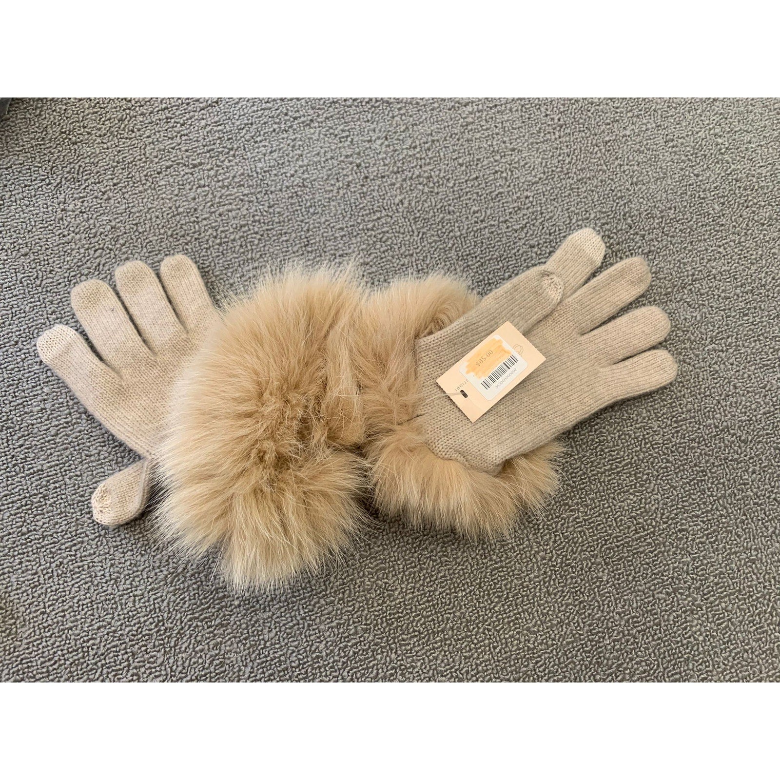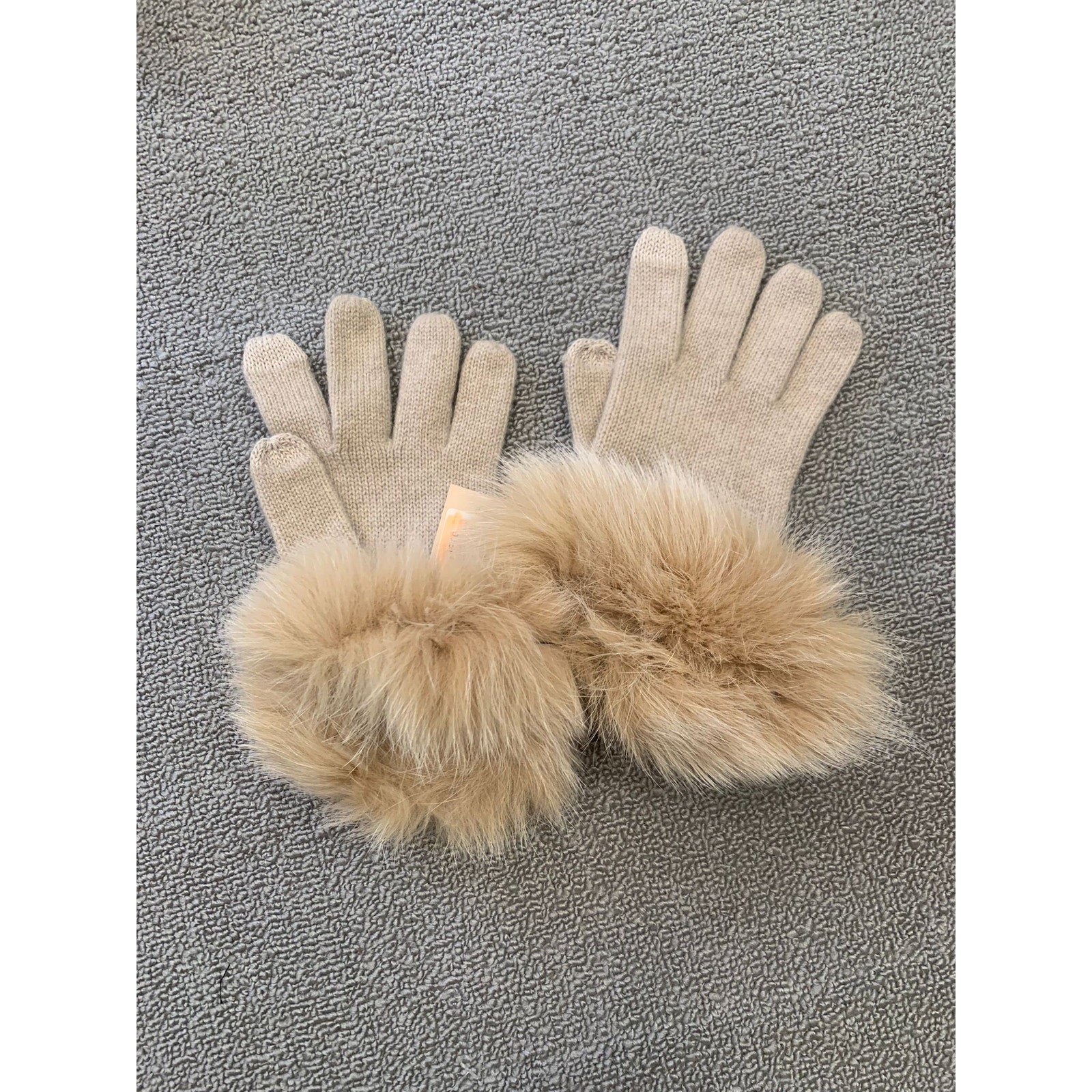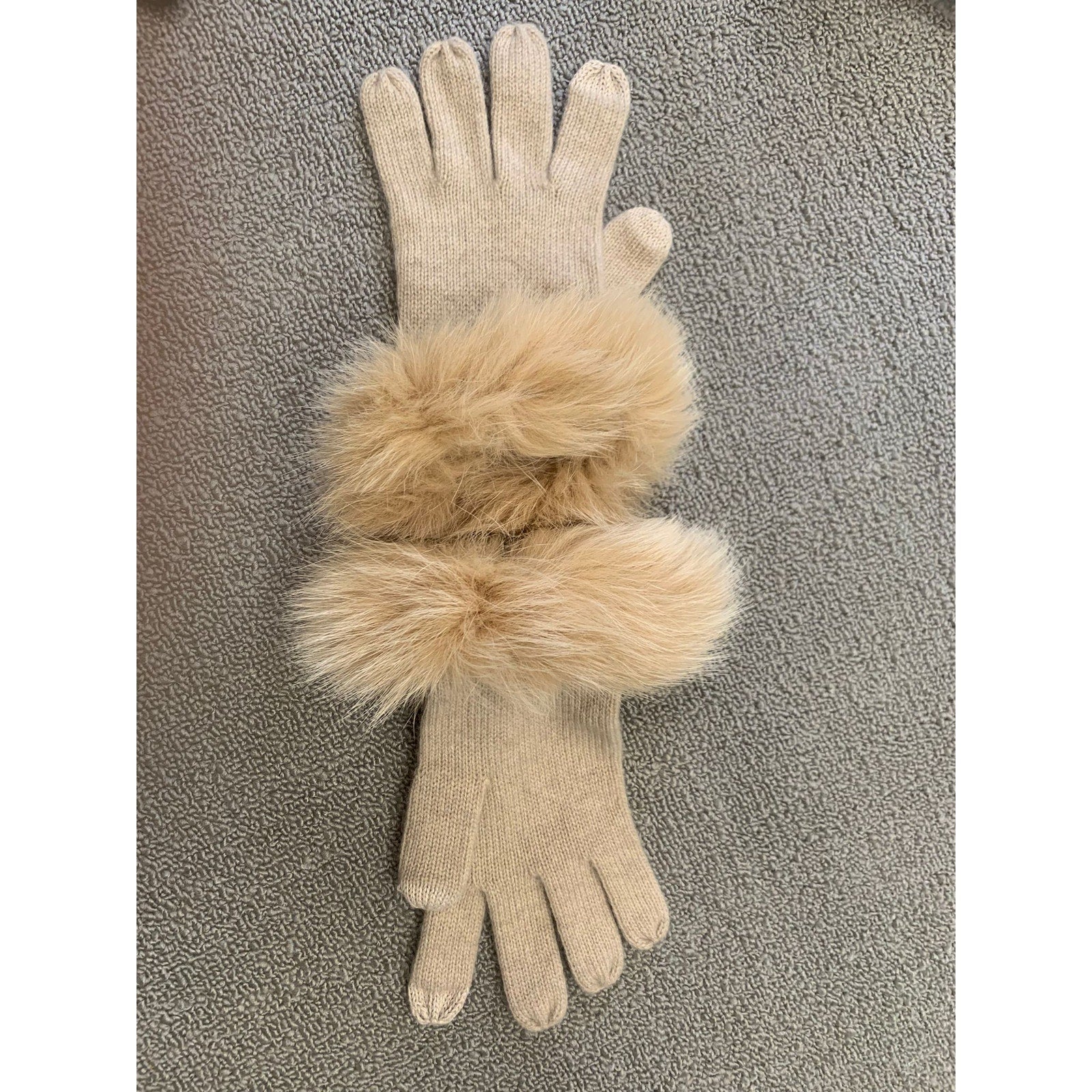 Sofia Cashmere Womens One Size Beige 100% Cashmere Gloves With Real Fur Trim