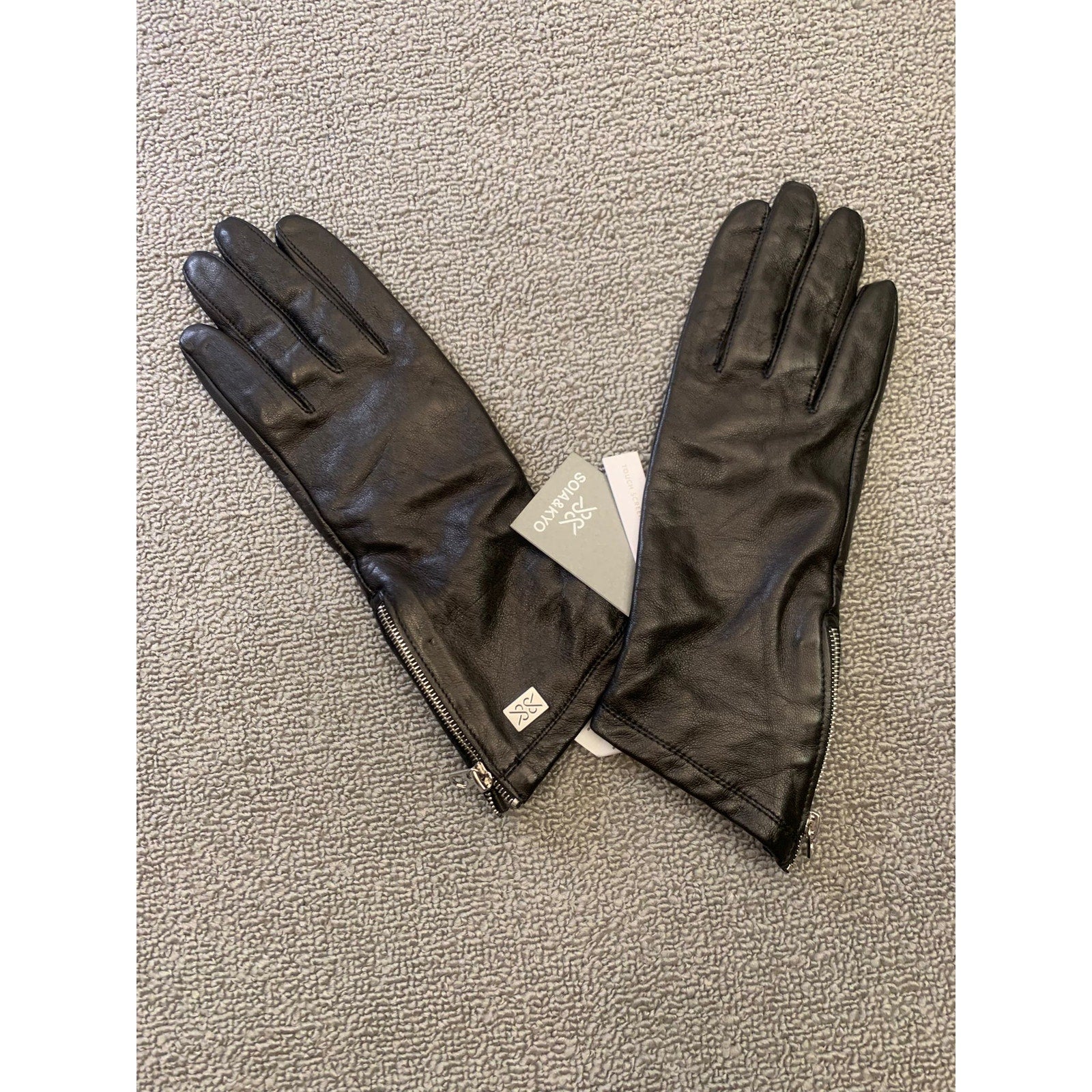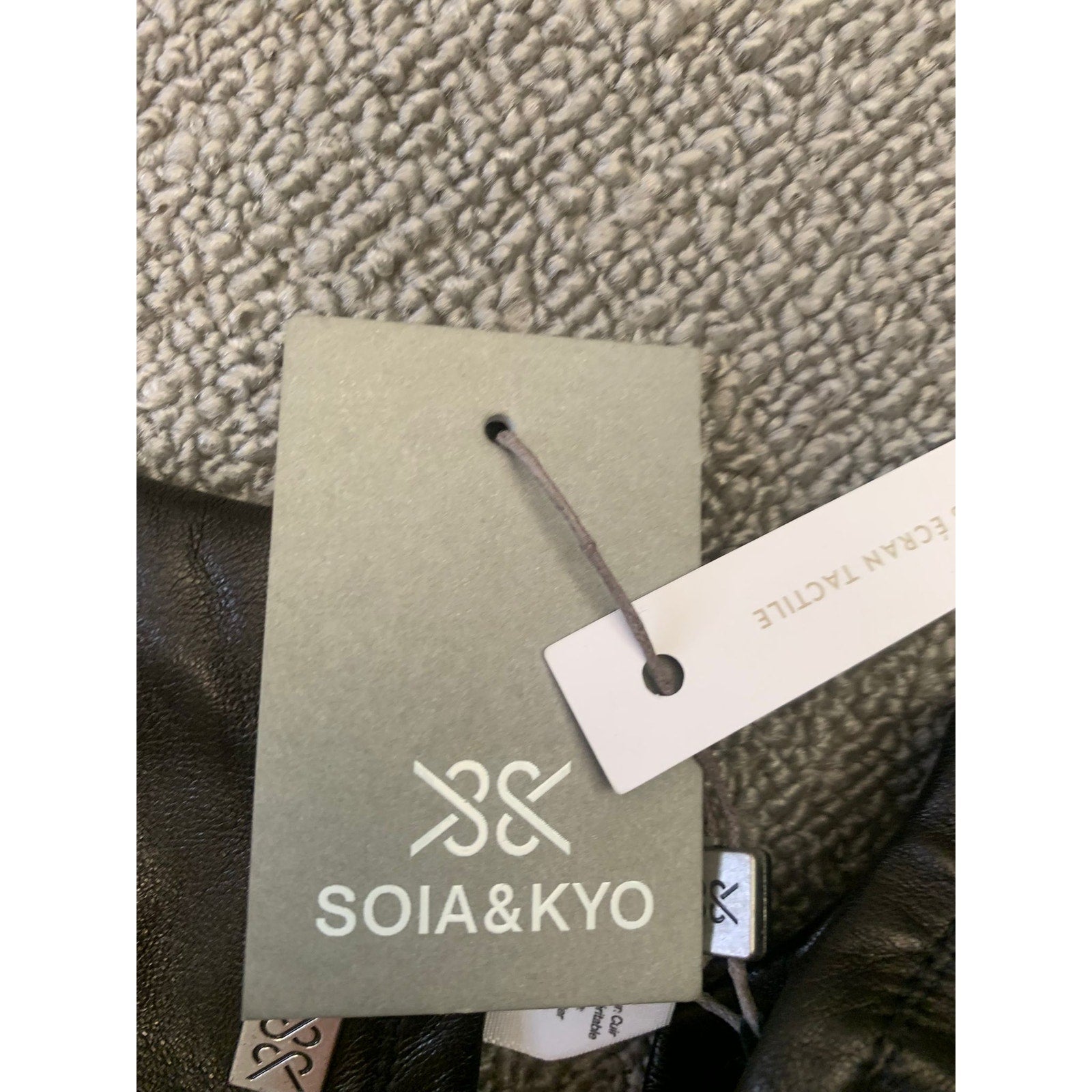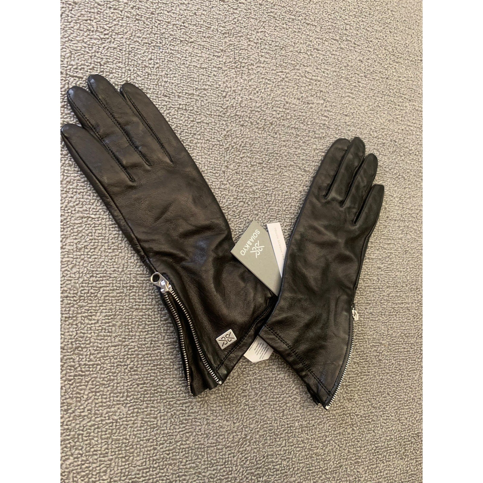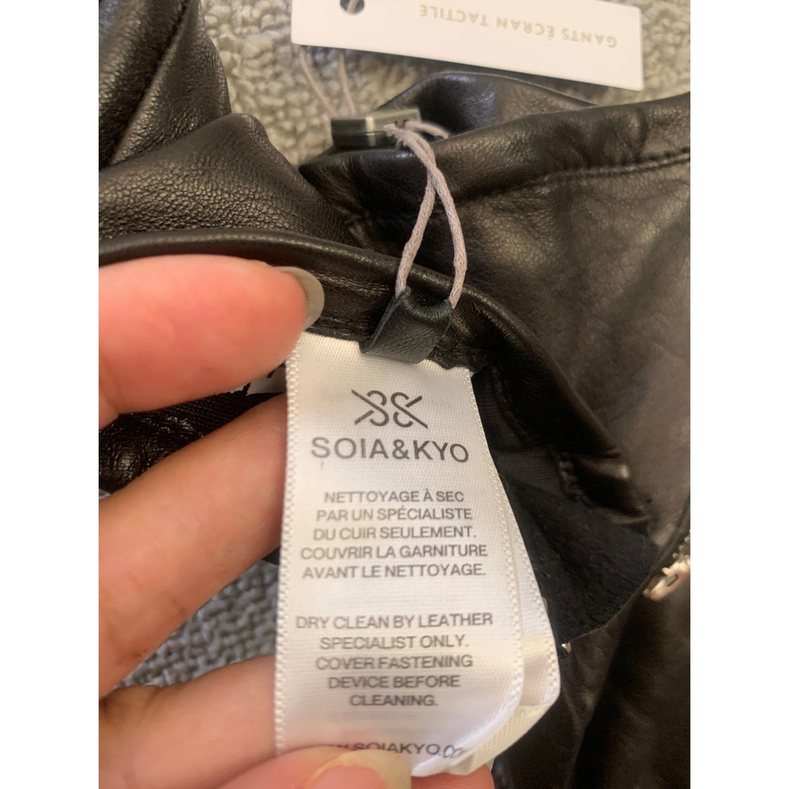 Soia & Kyo Women M Black Leather Zipper Gloves