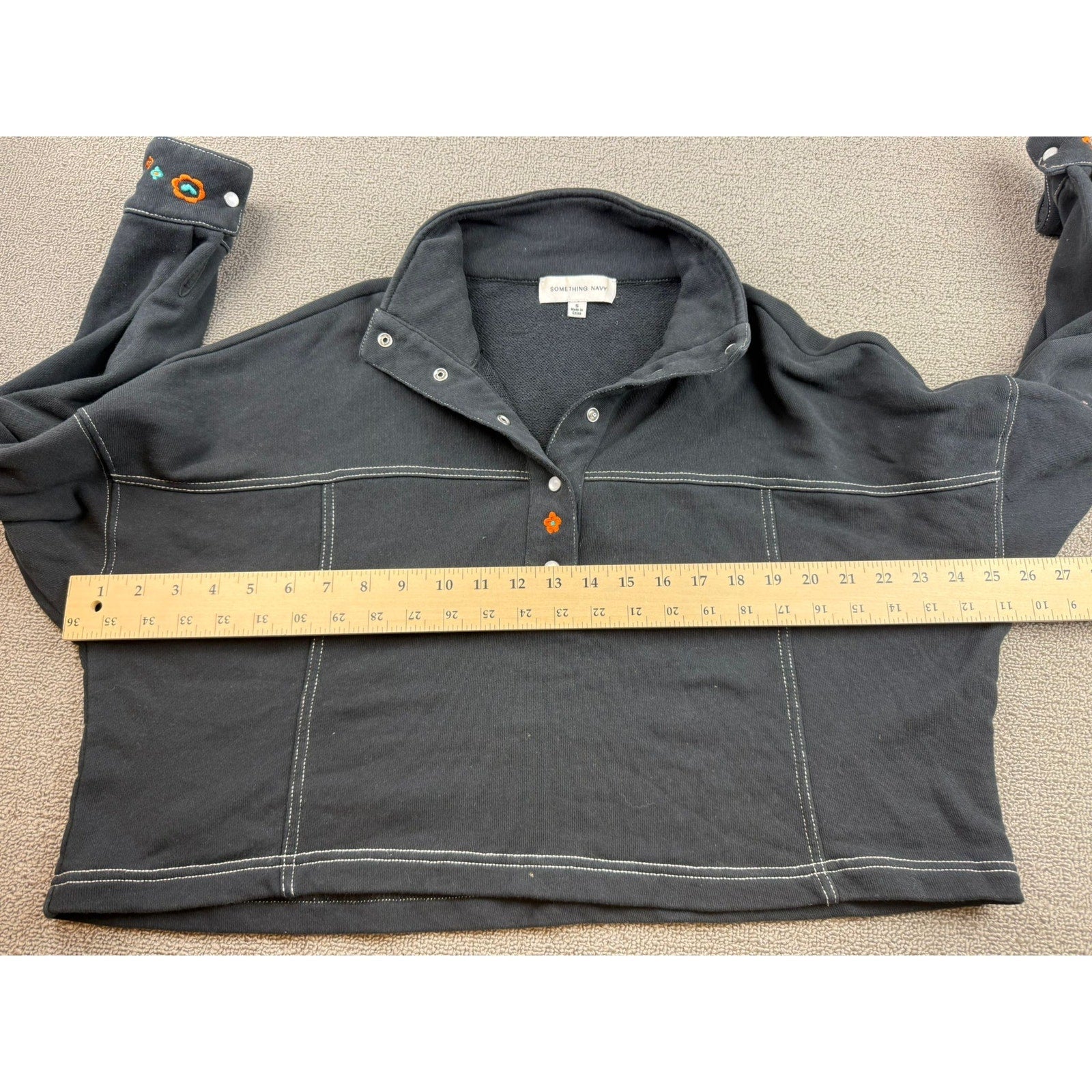 Something Navy Women Small Black Cropped Sweatshirt Contrast Stitching