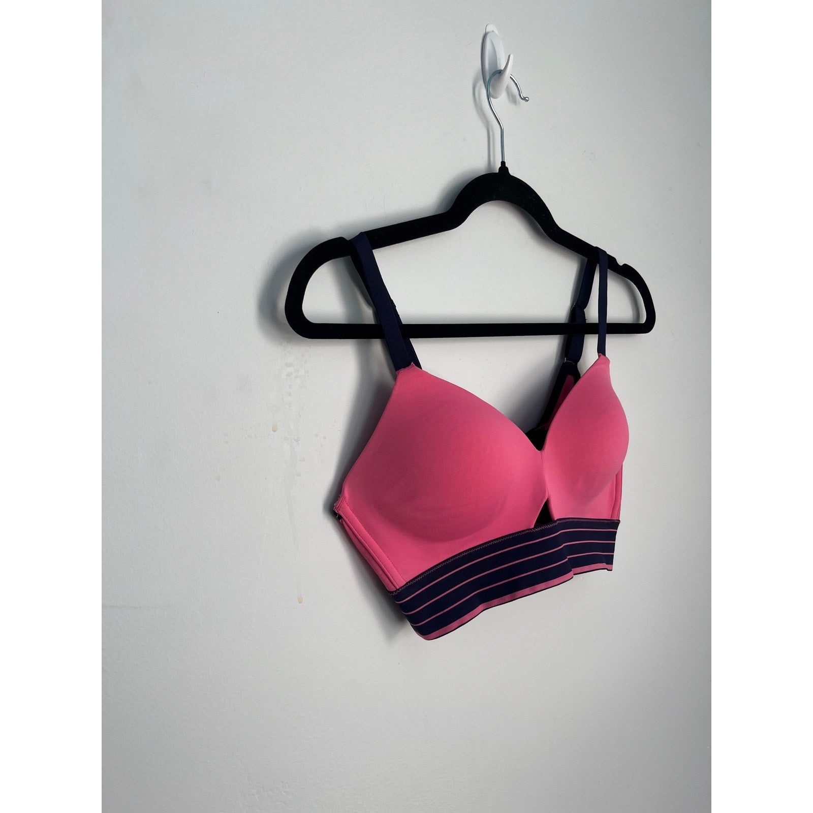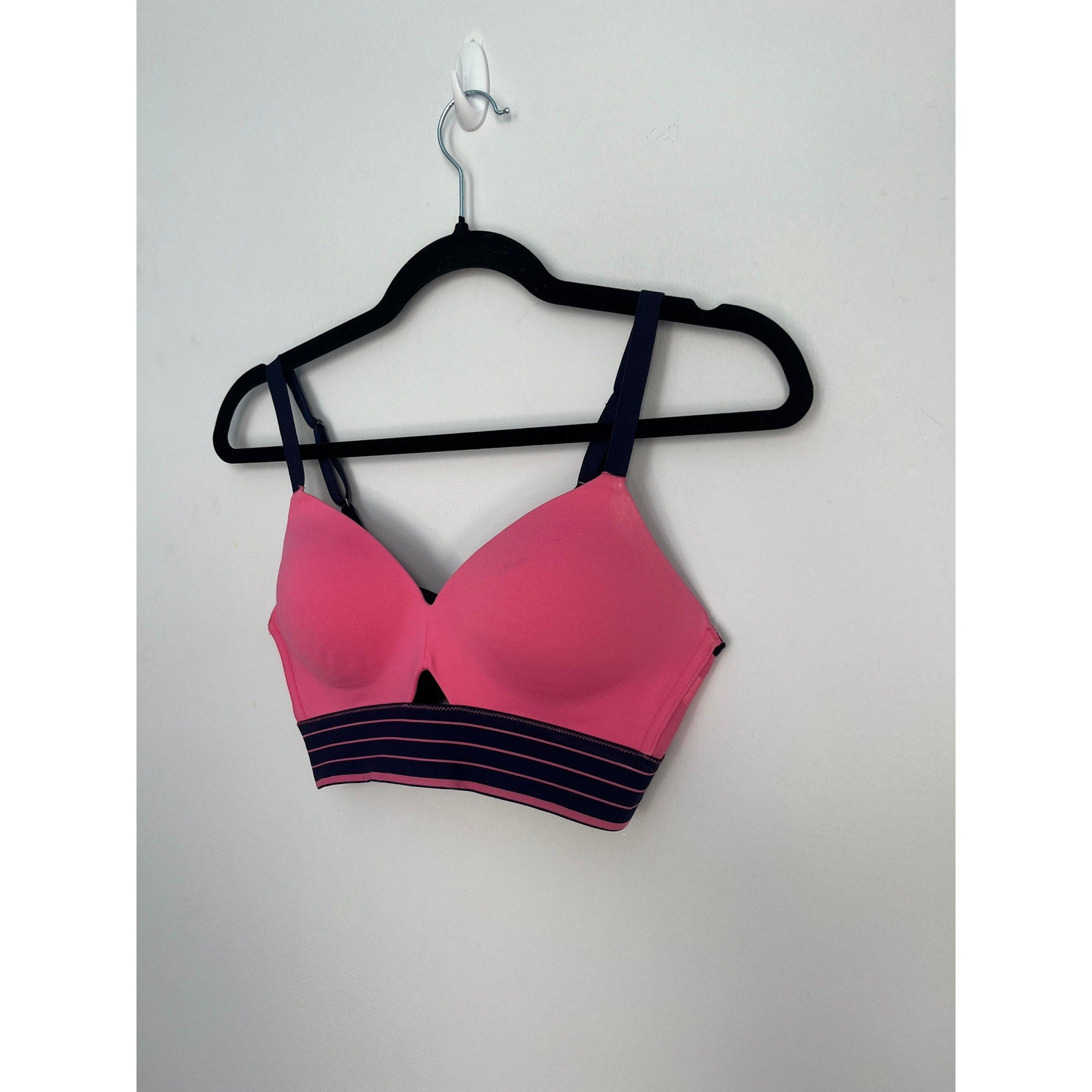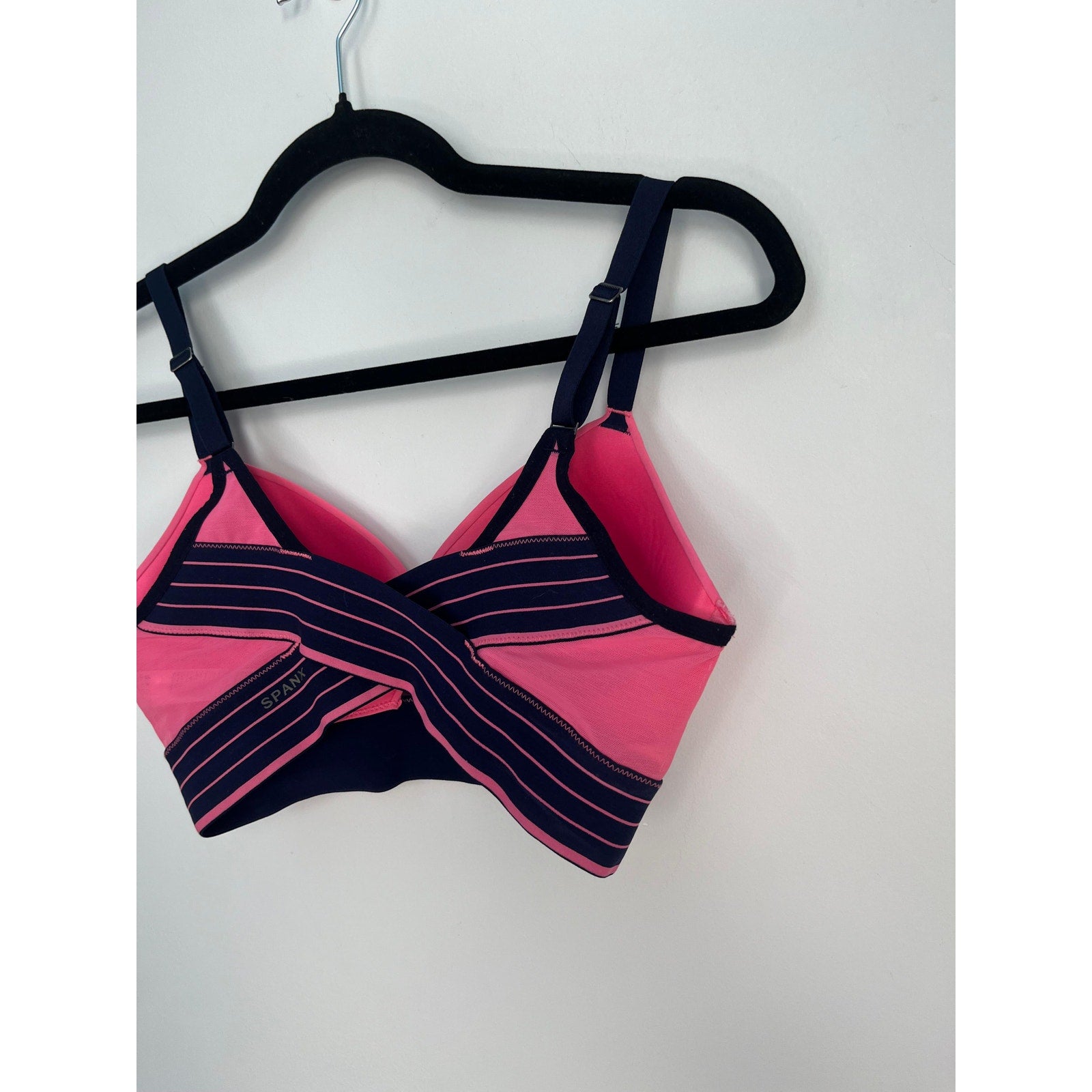 Spanx Bralette Women S Pink Navy Striped Wireless Padded Stretch Bra