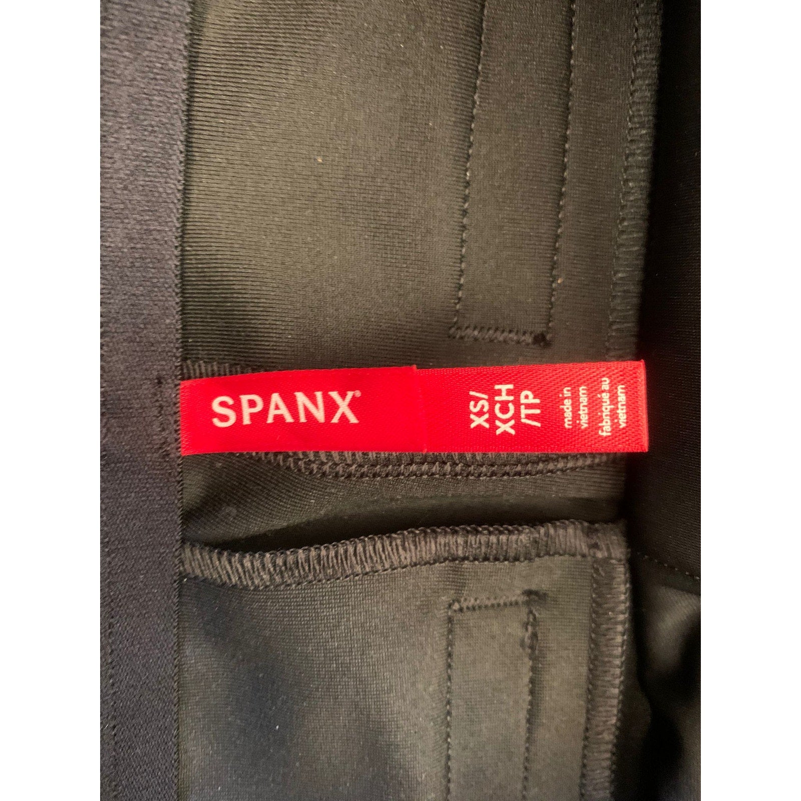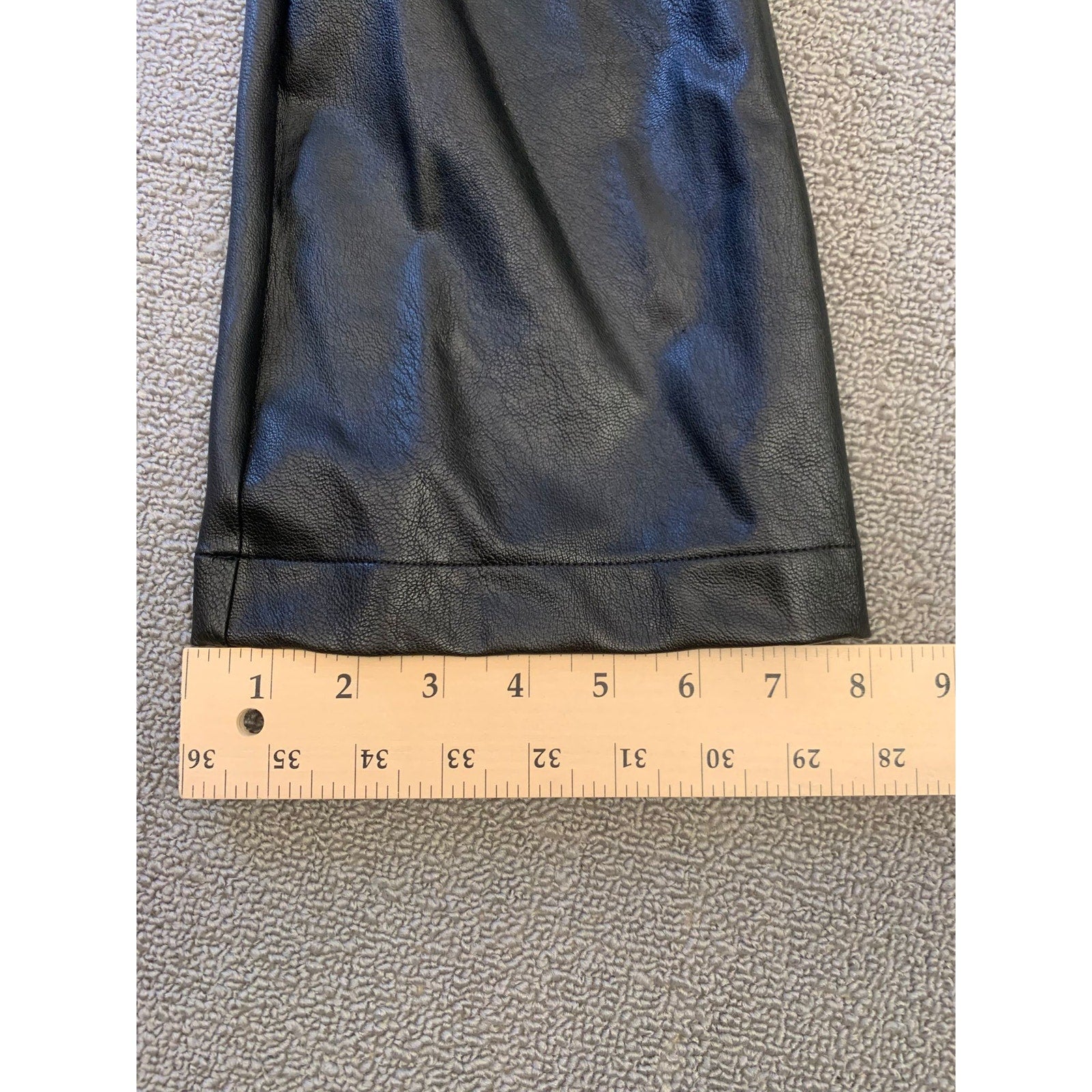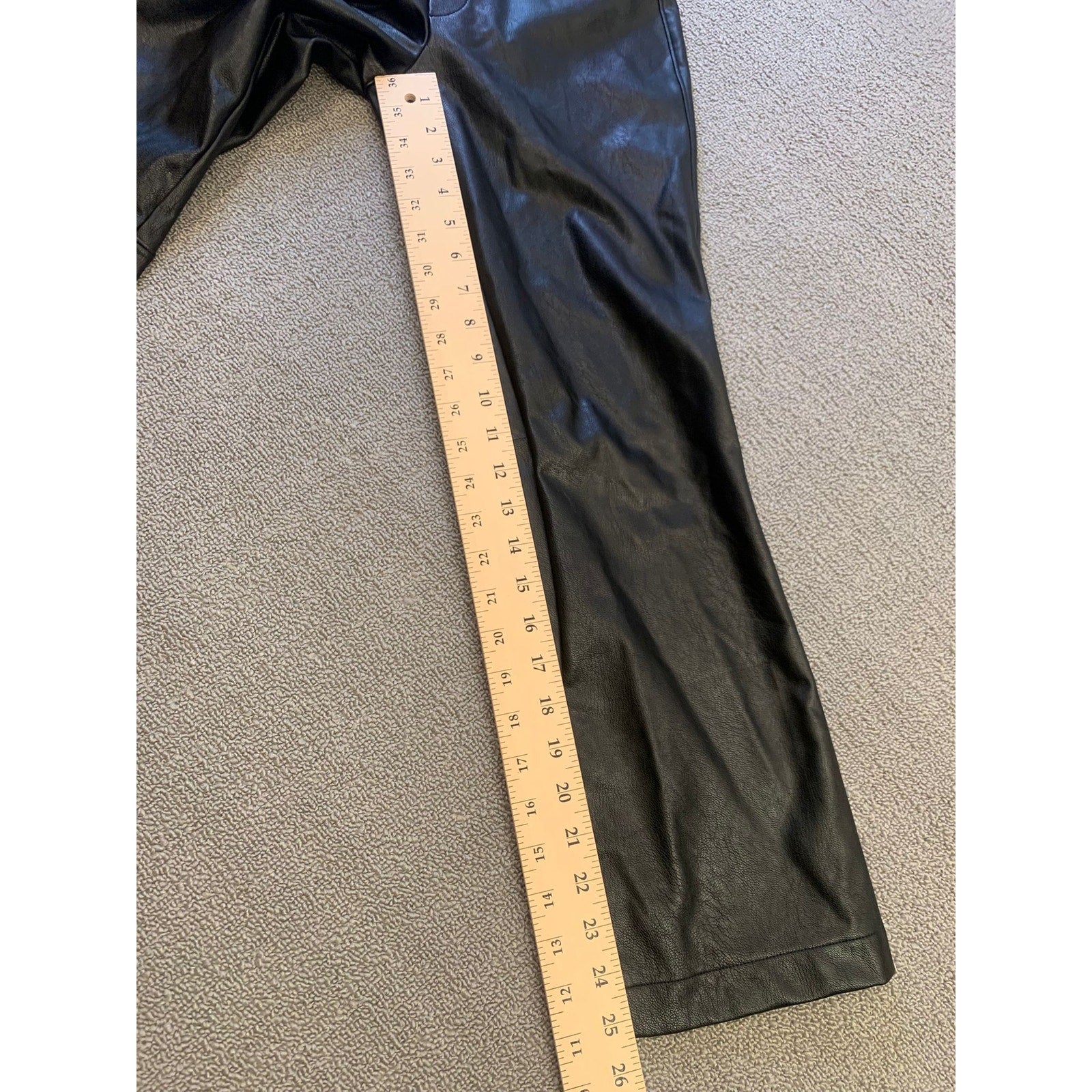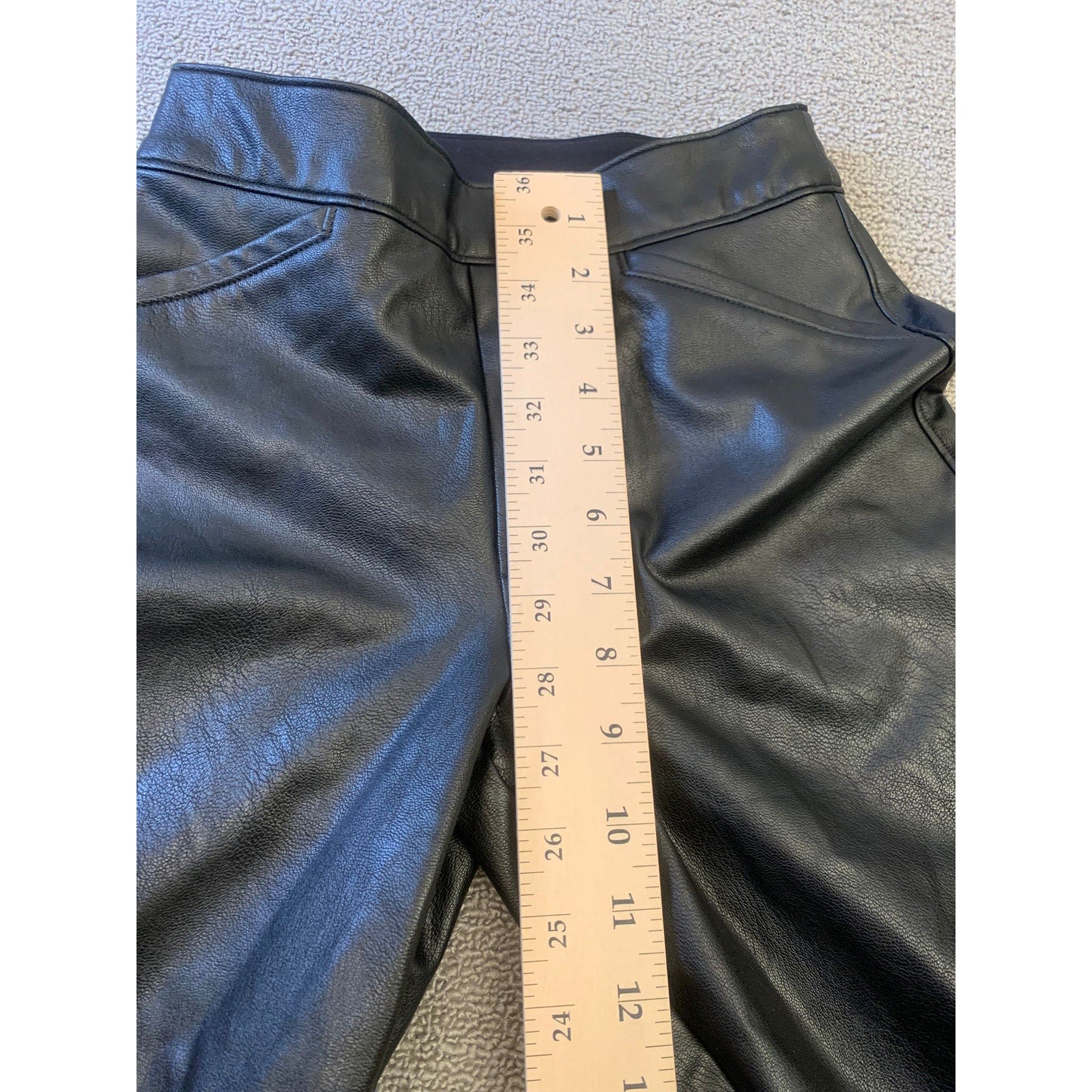 Spanx faux leather pants in sleek black. Features a high-rise waistband for a smoothing fit, flare leg silhouette, and pull-on stretch design. Perfect for night out or styled with boots for a chic look.