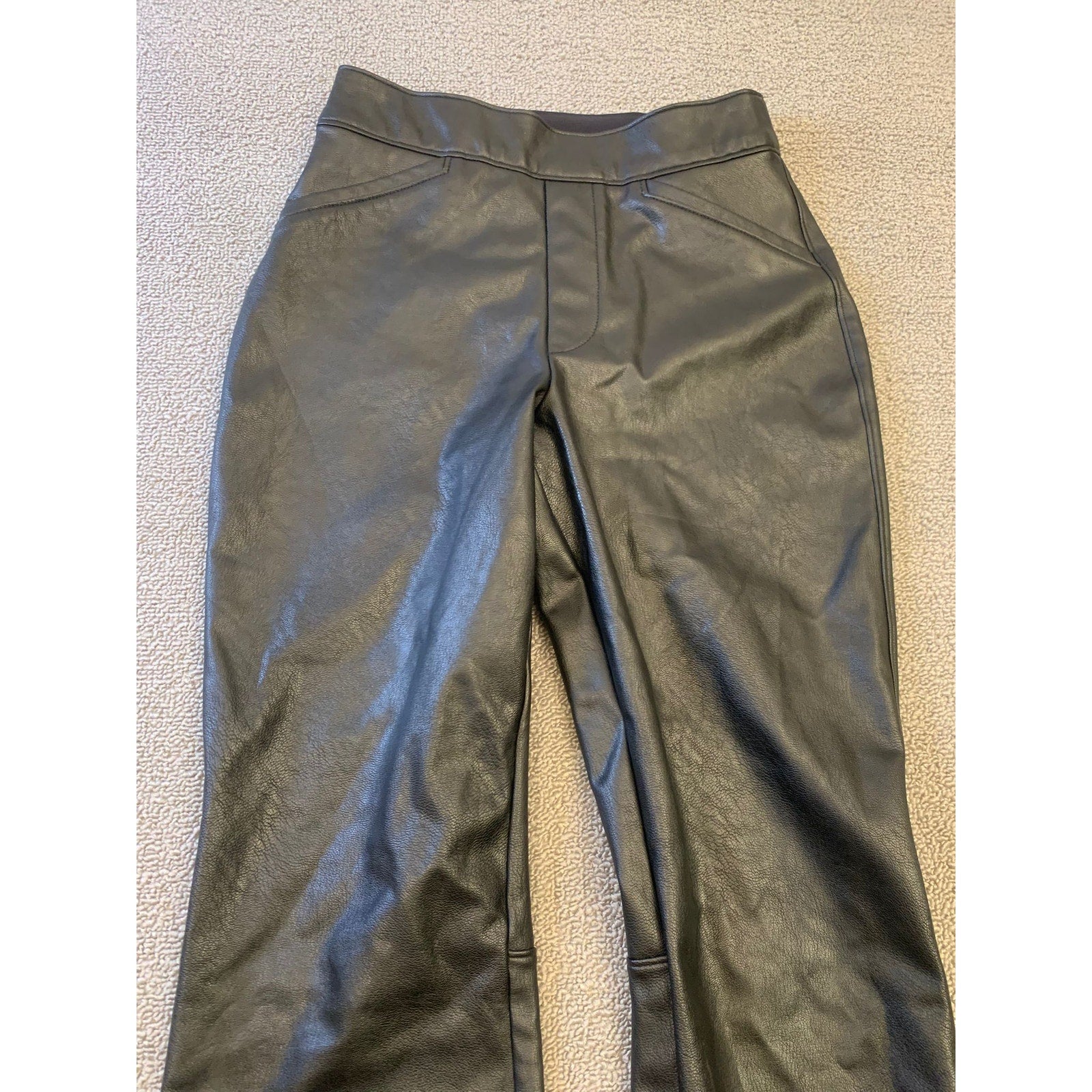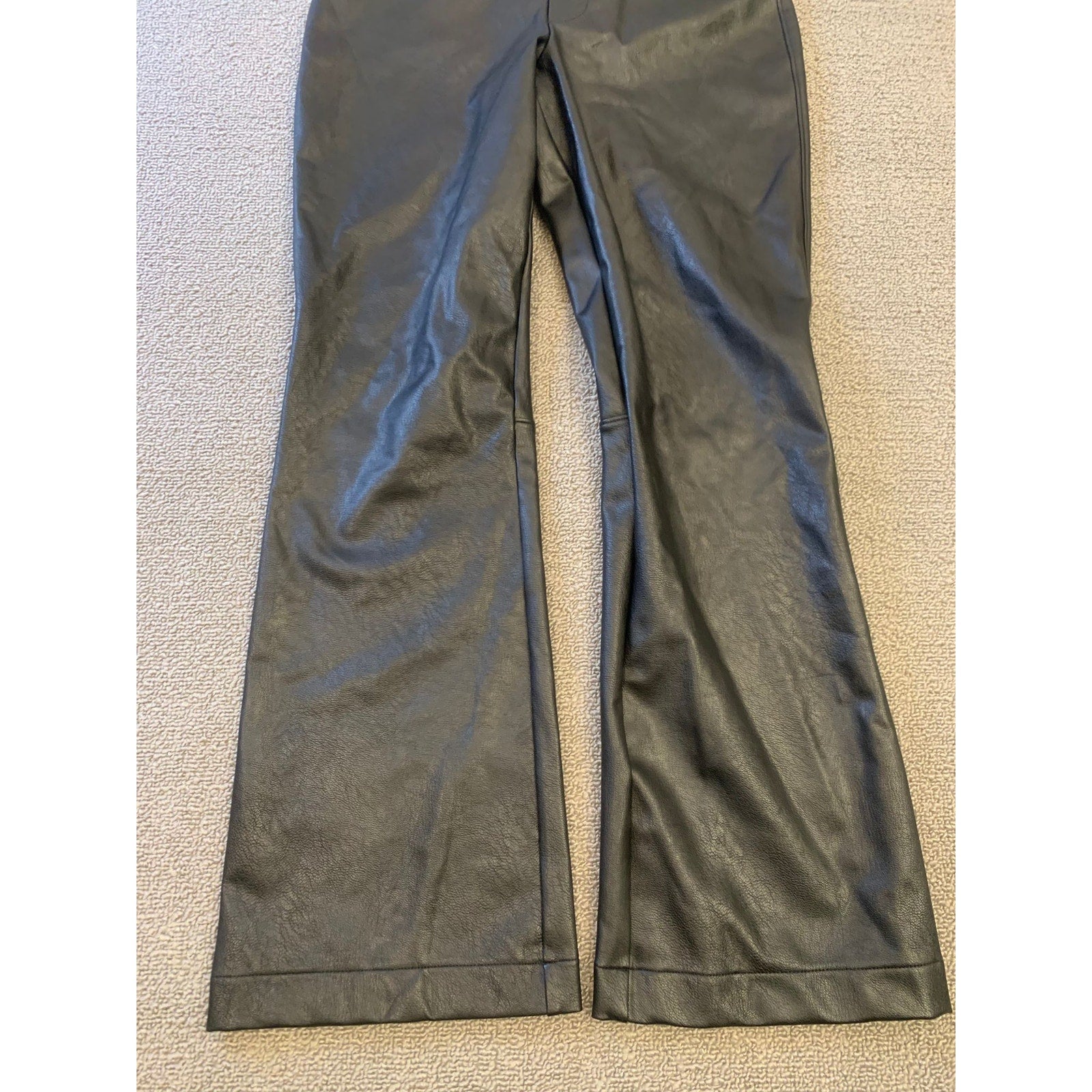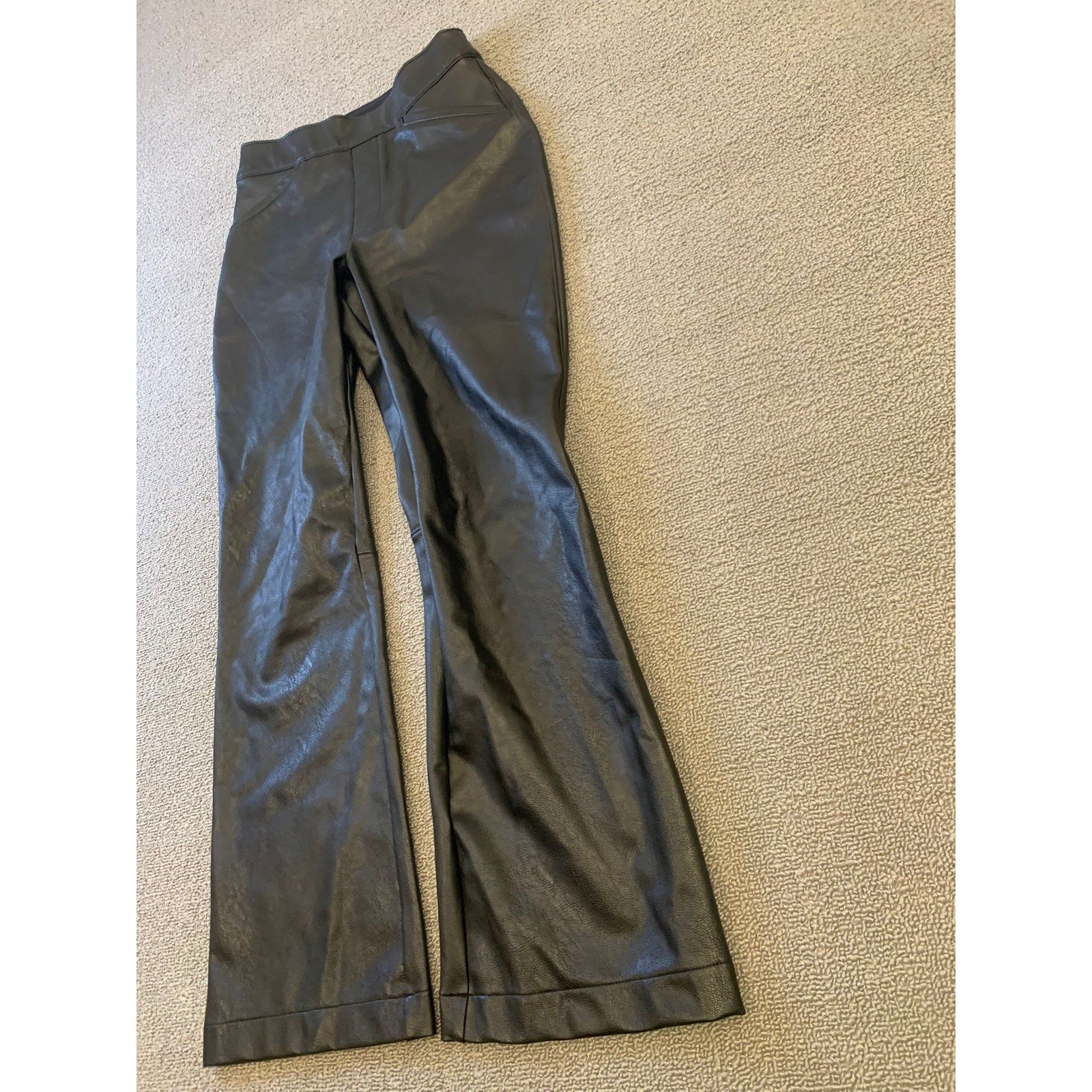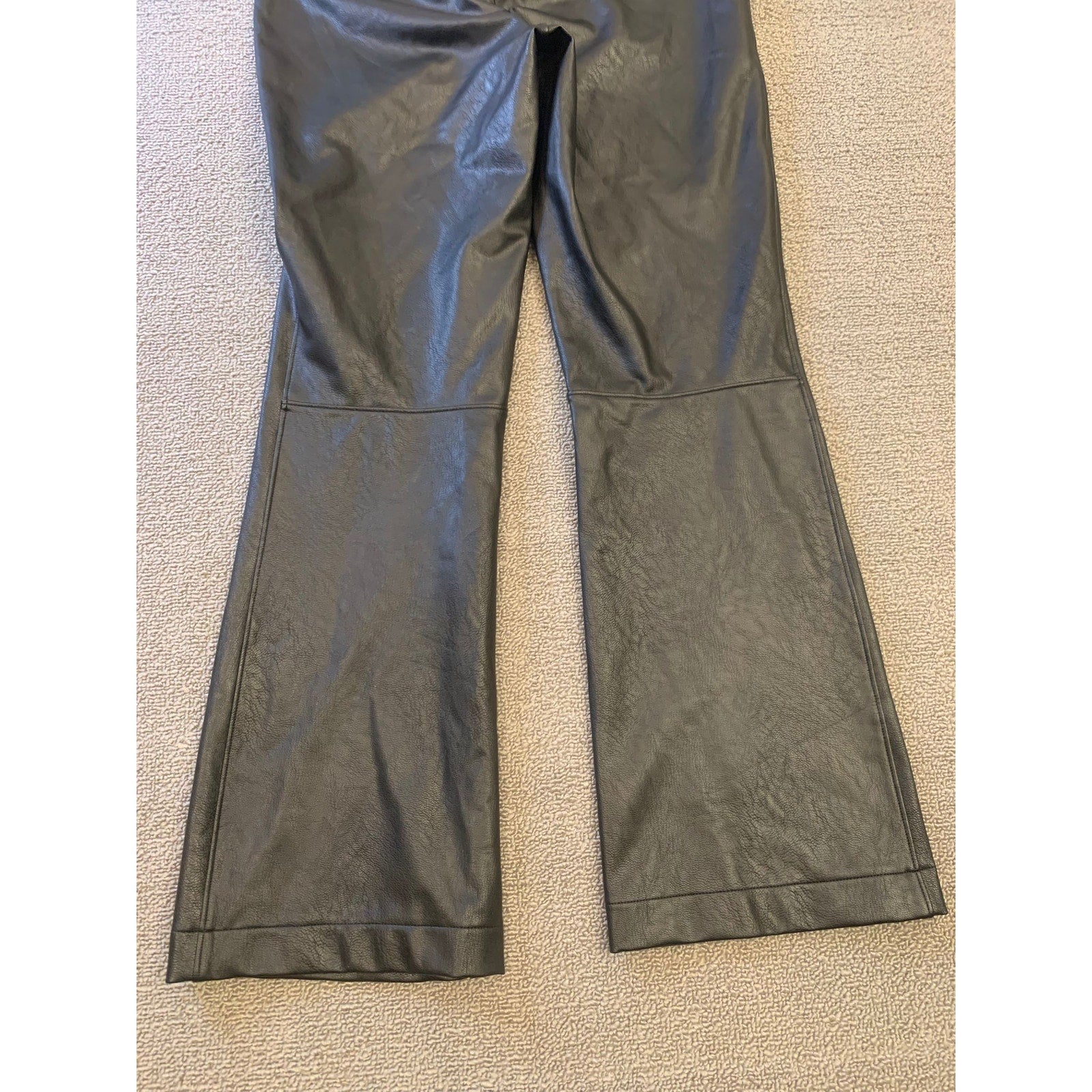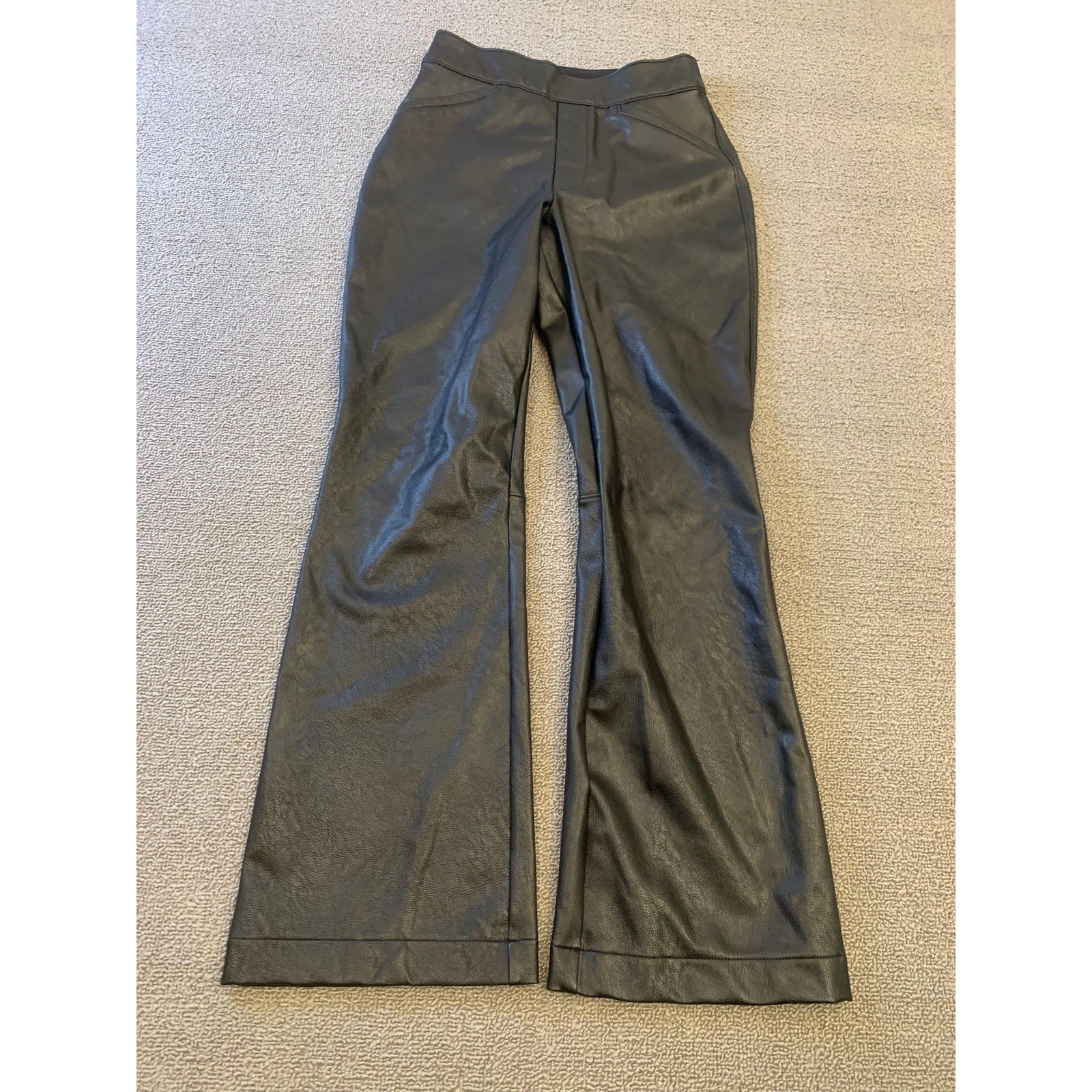 Spanx faux leather pants in sleek black. Features a high-rise waistband for a smoothing fit, flare leg silhouette, and pull-on stretch design. Perfect for night out or styled with boots for a chic look.