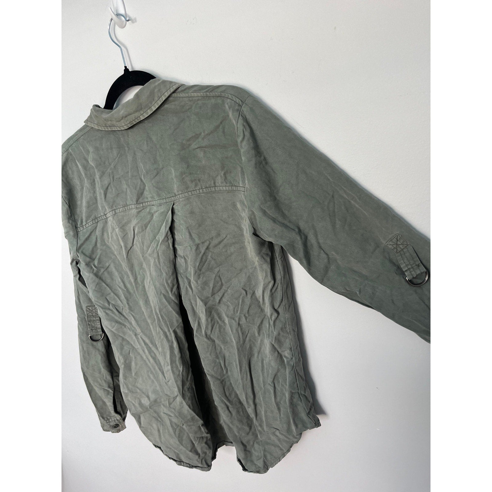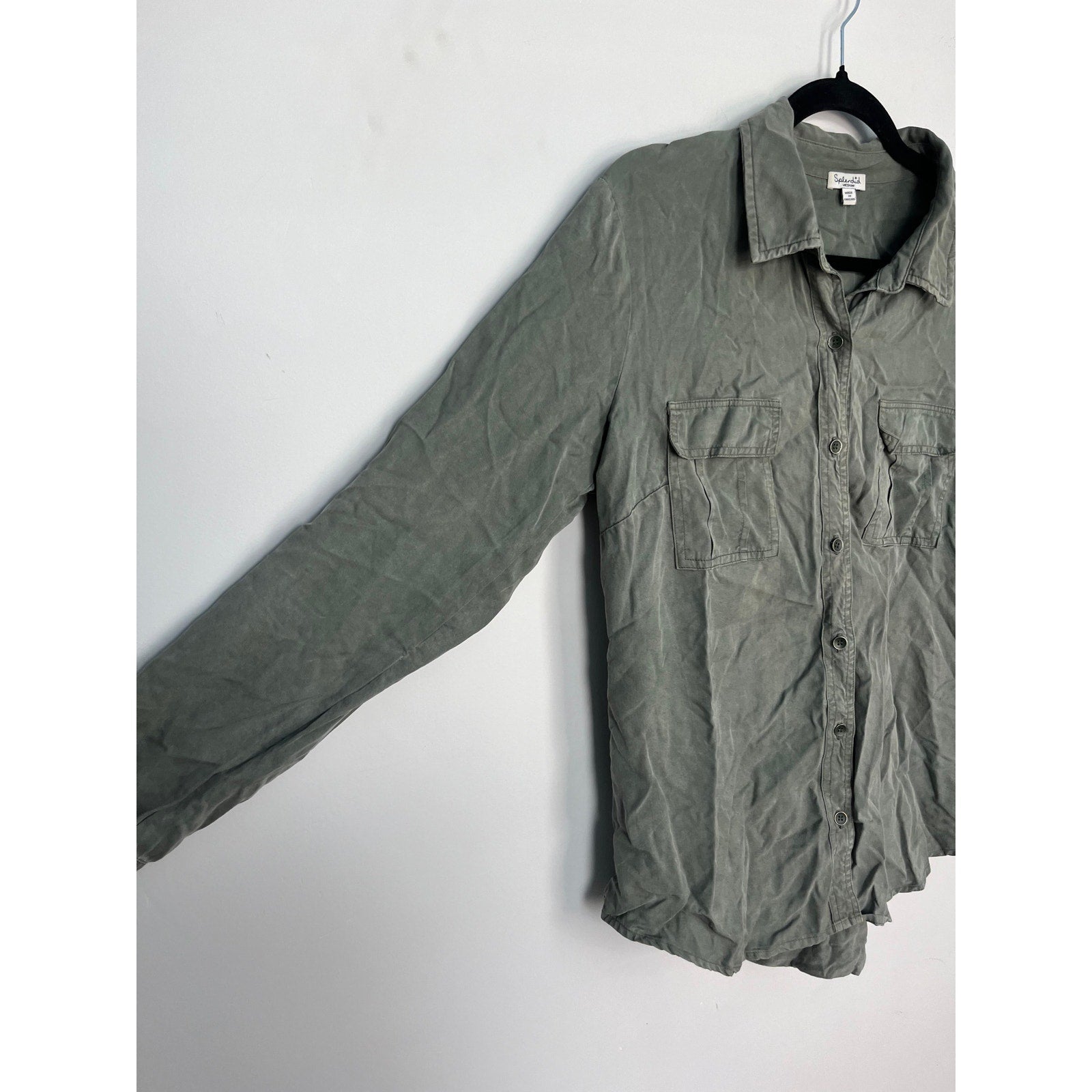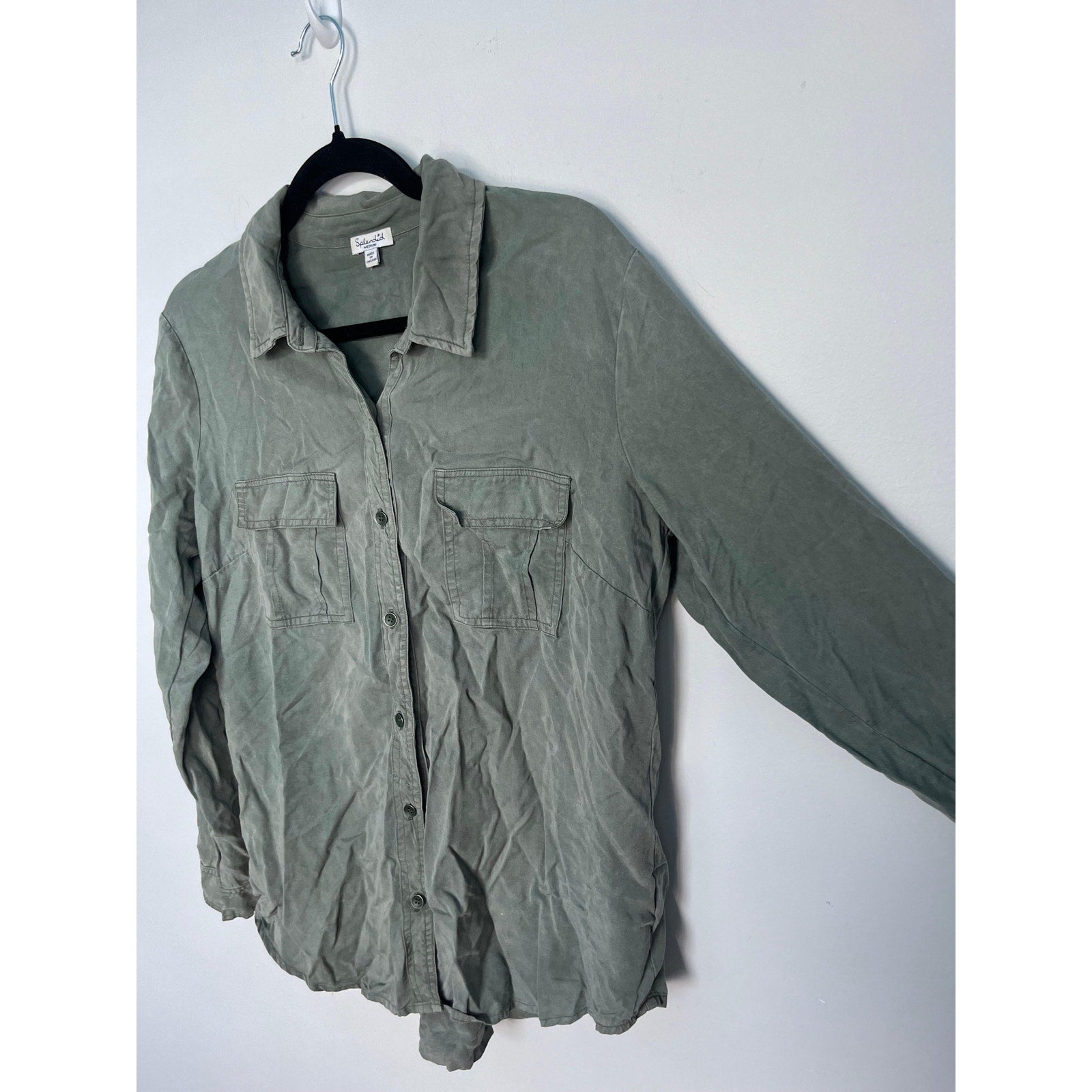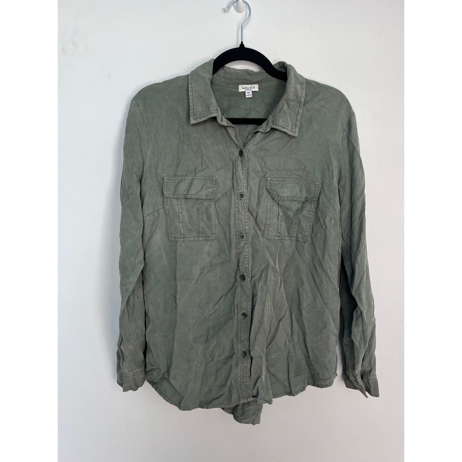Splendid Button Down Shirt Women Medium Green Long Sleeve Casual Utility