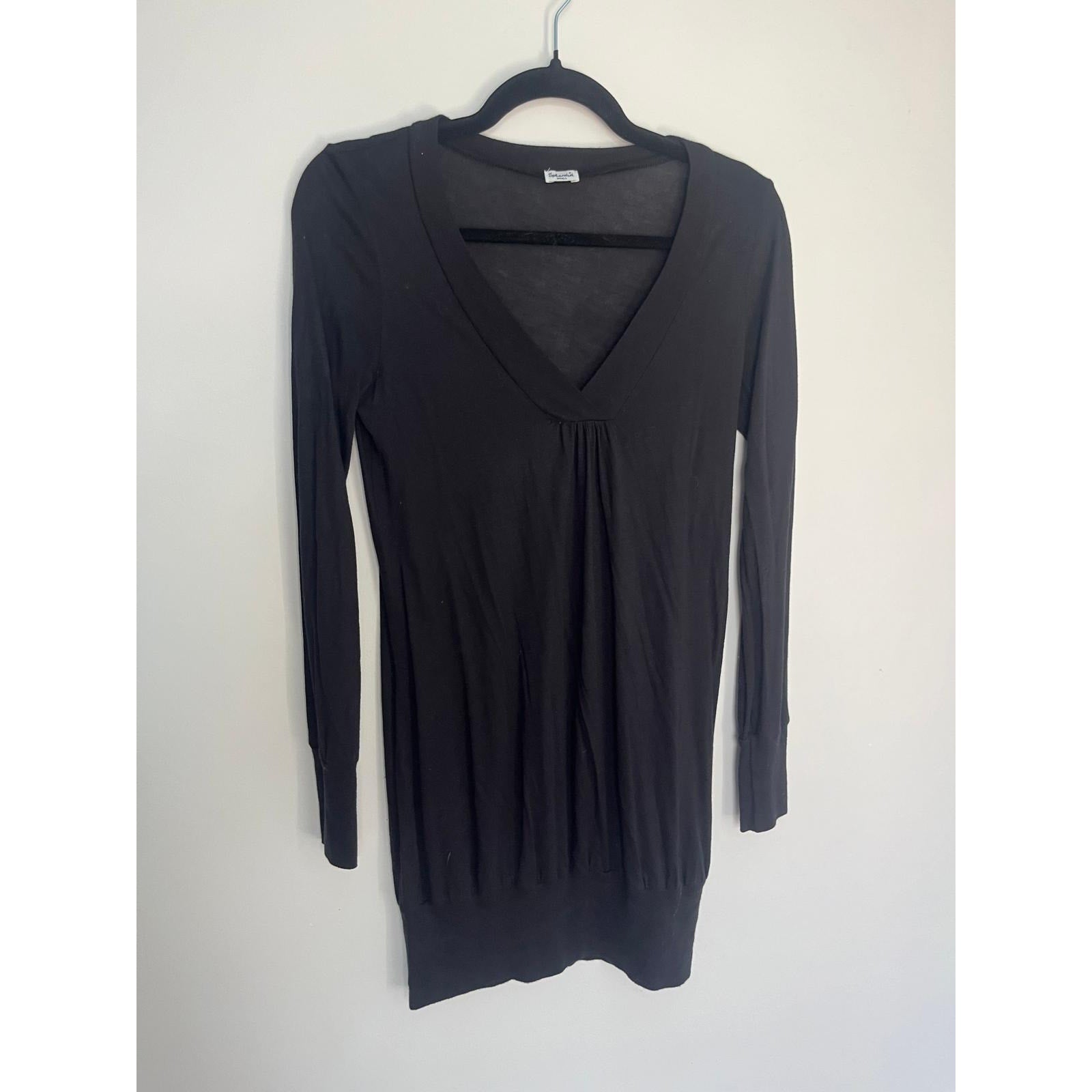 Splendid Long Sleeve V Neck Tunic Top Women Small Black Stretch Basic