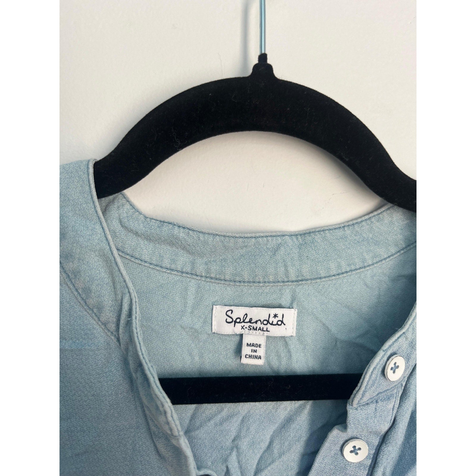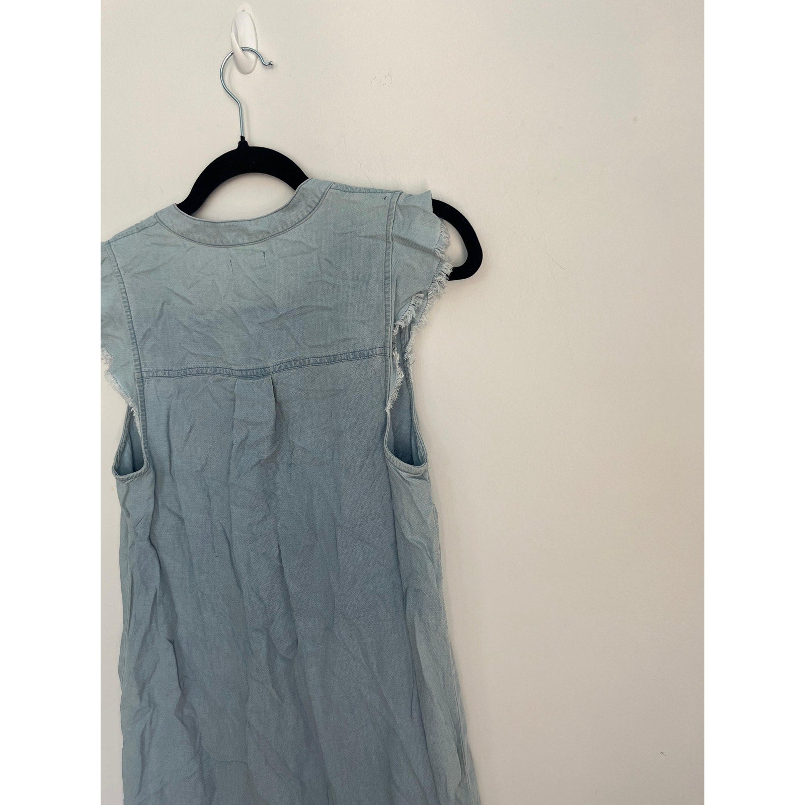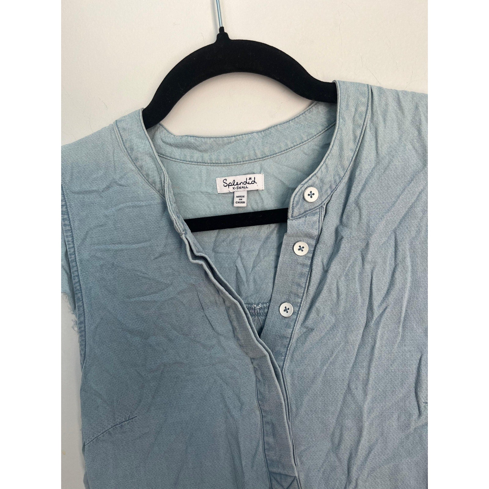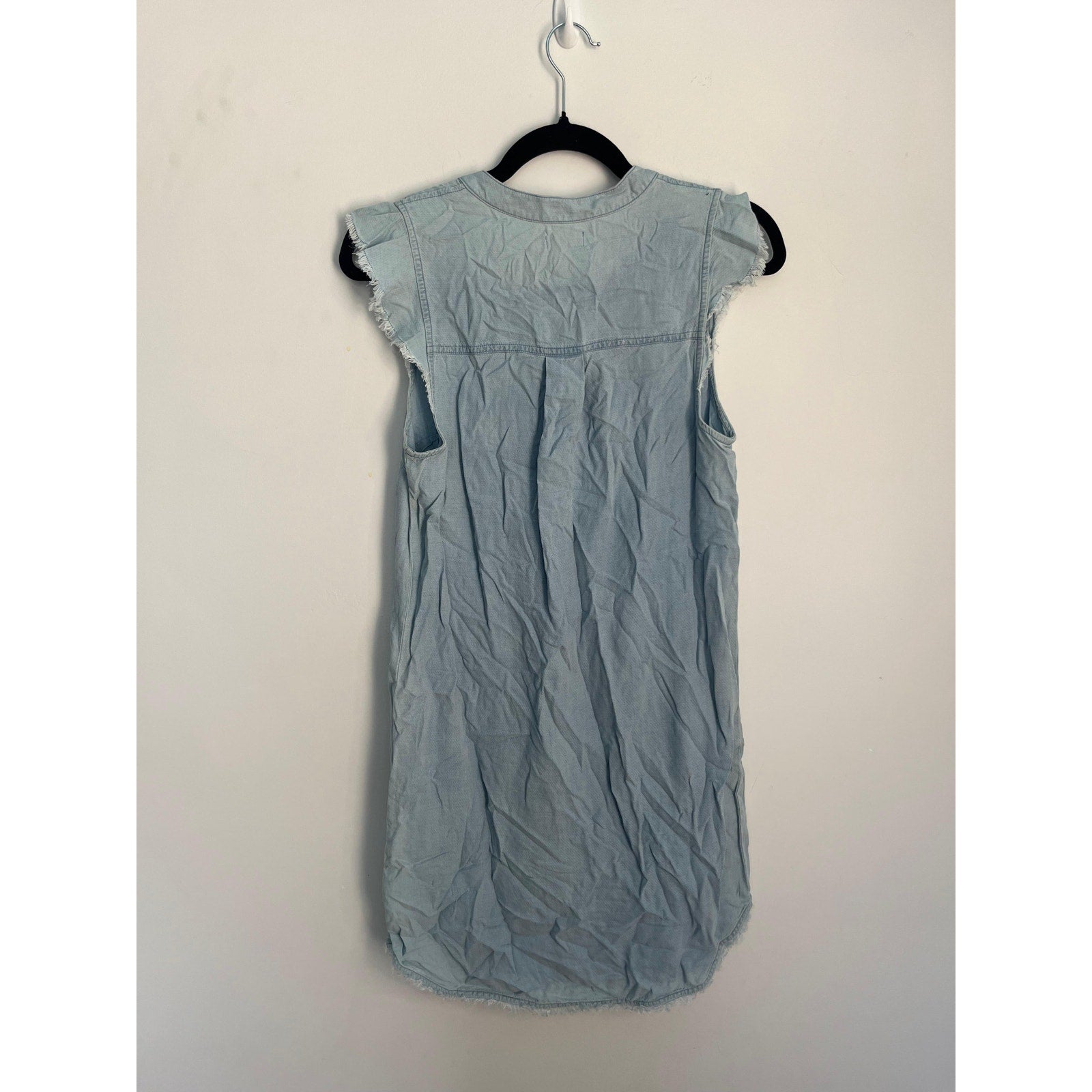 Splendid Sleeveless Henley Dress Women XS Blue Chambray Frayed Hem Casual