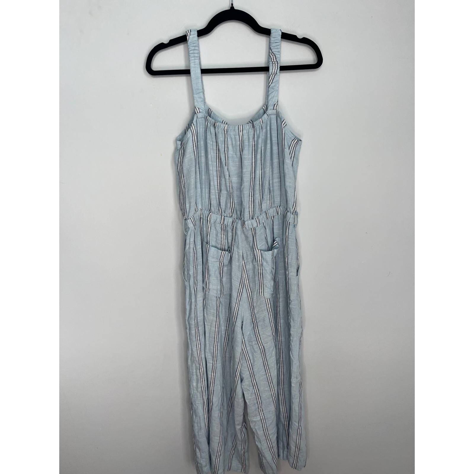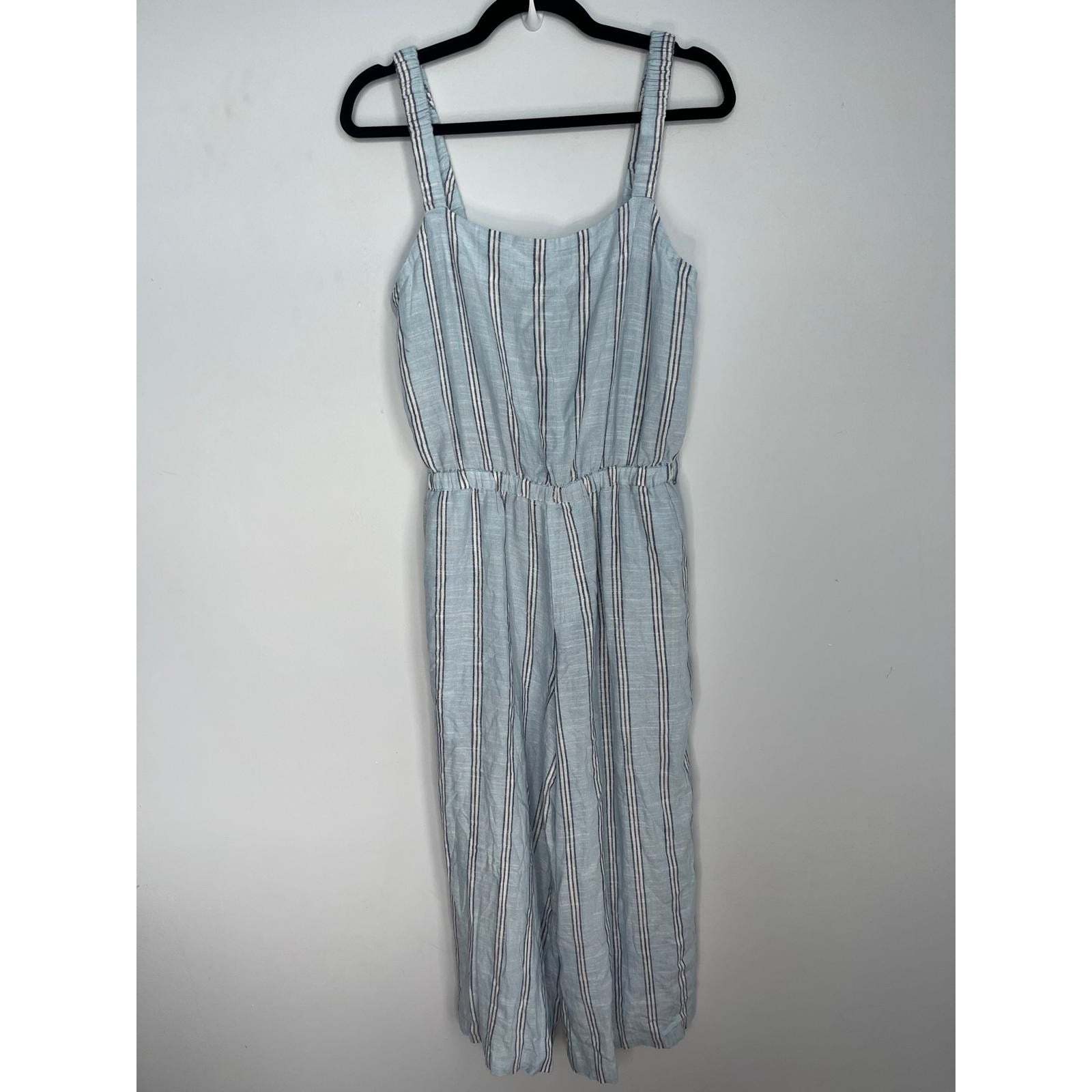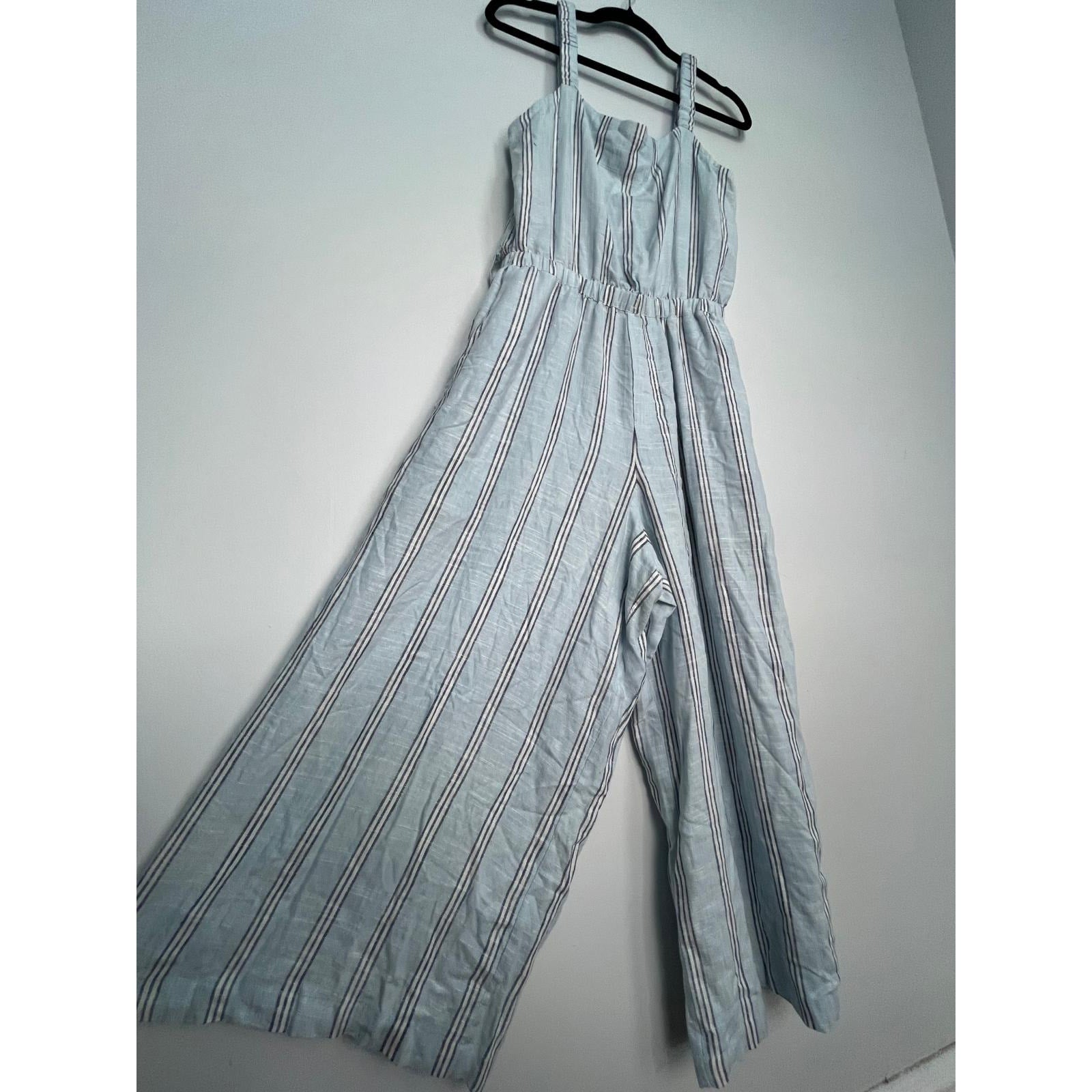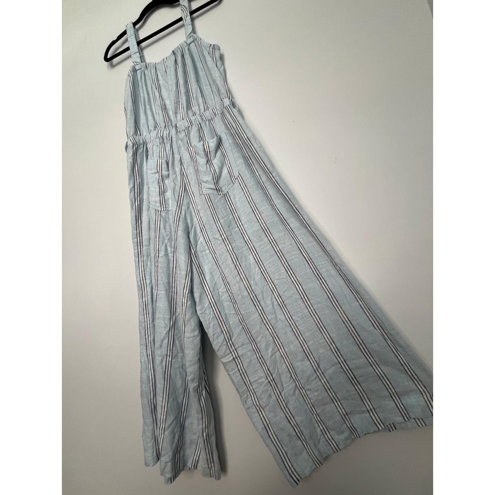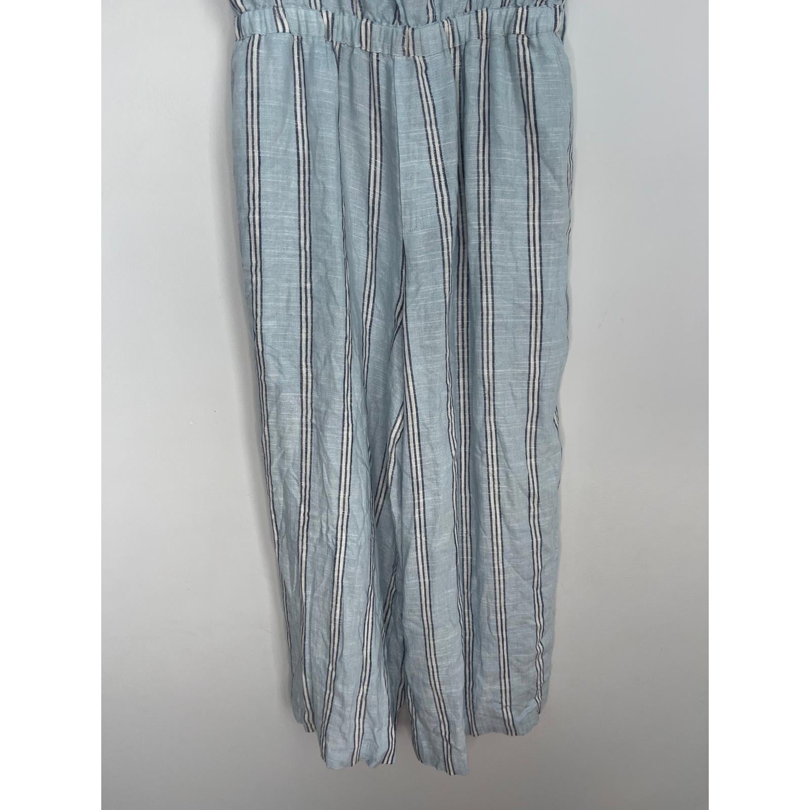 Splendid Striped Jumpsuit Women M Blue White Sleeveless Wide Leg Linen Blend