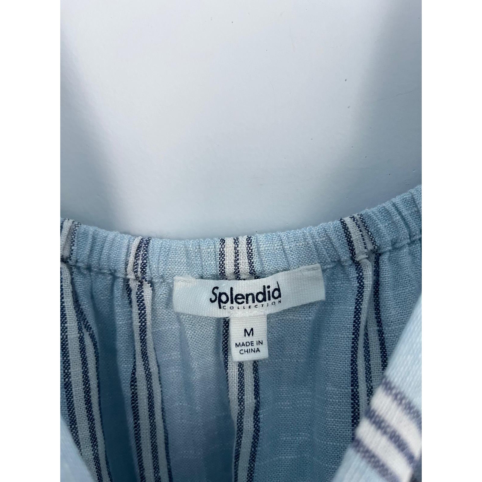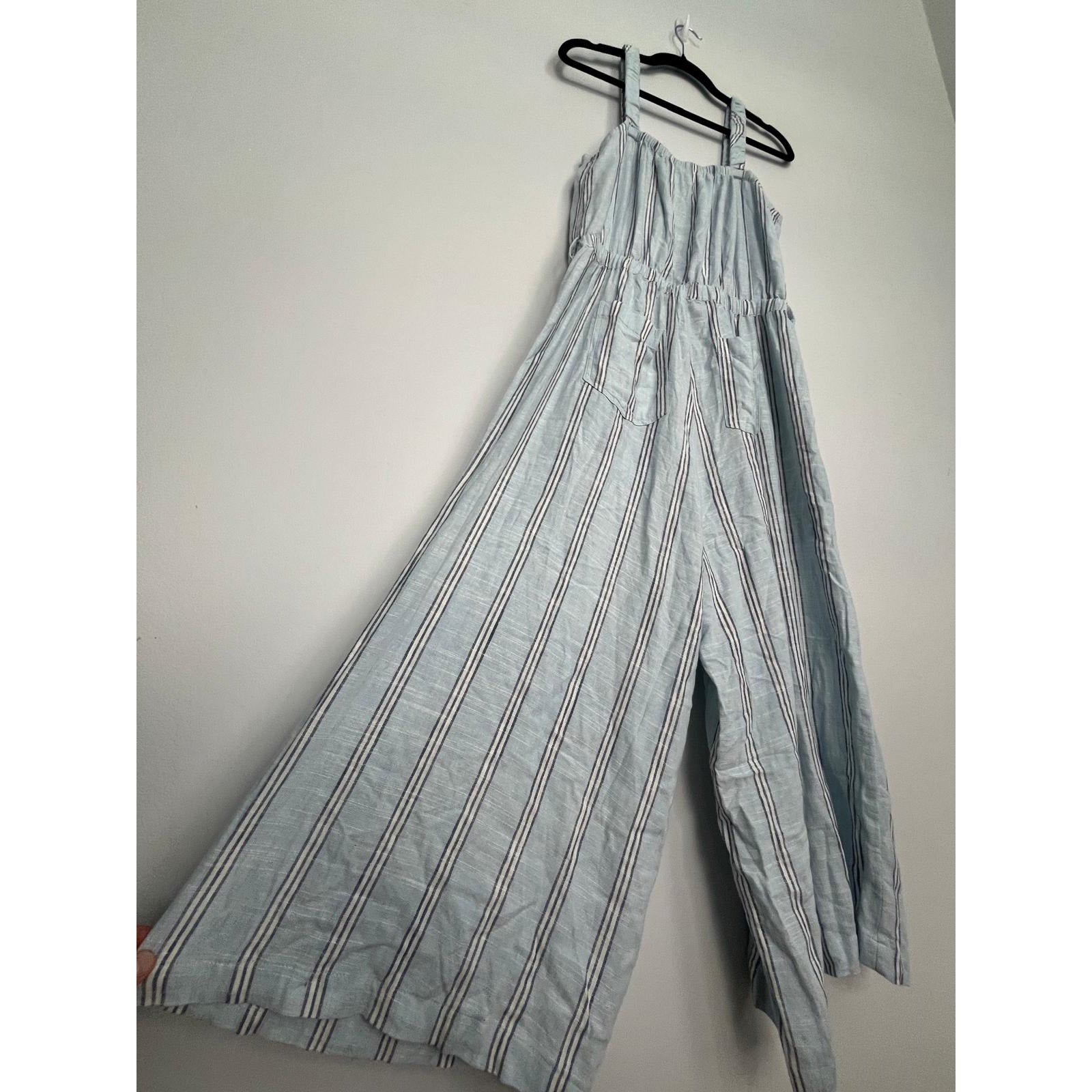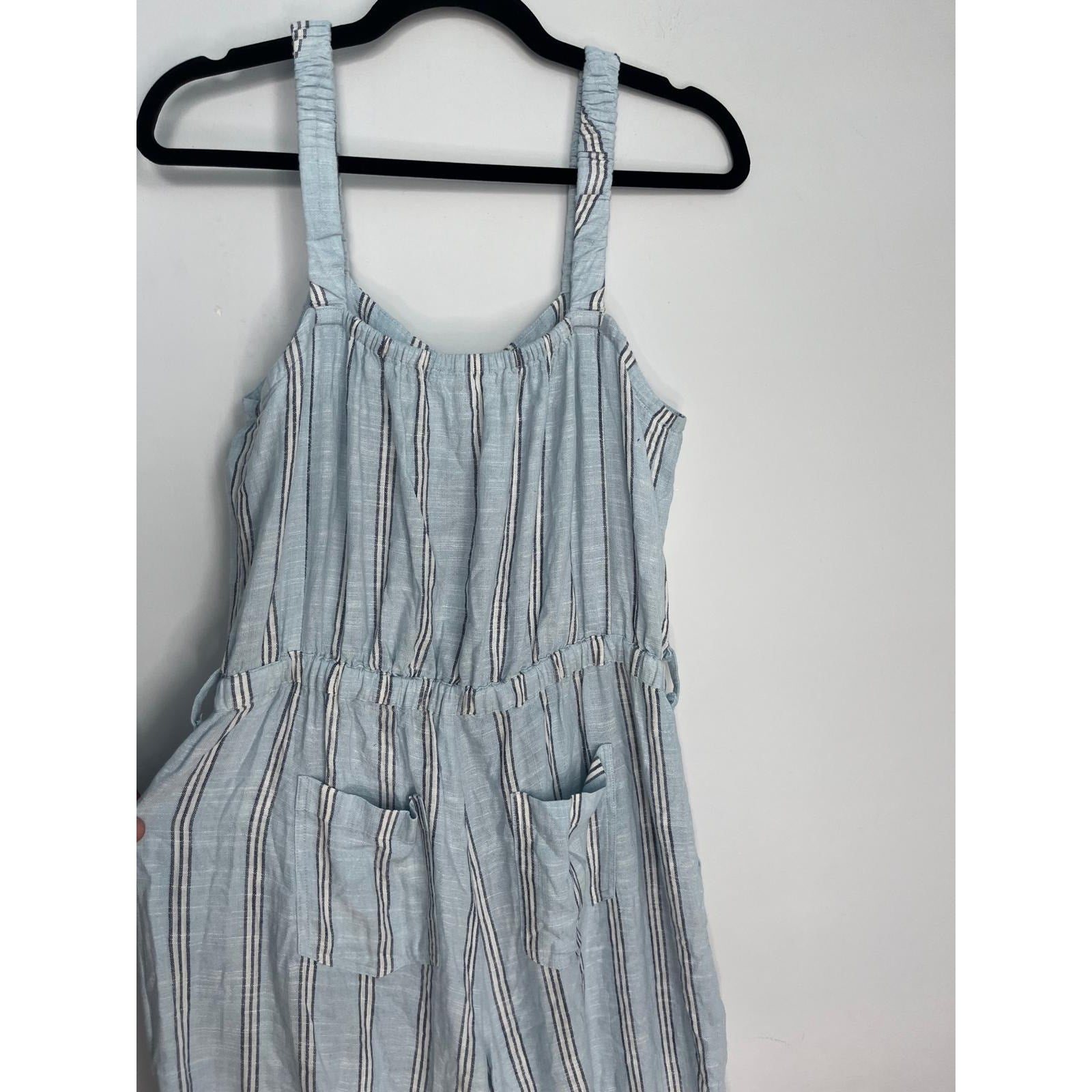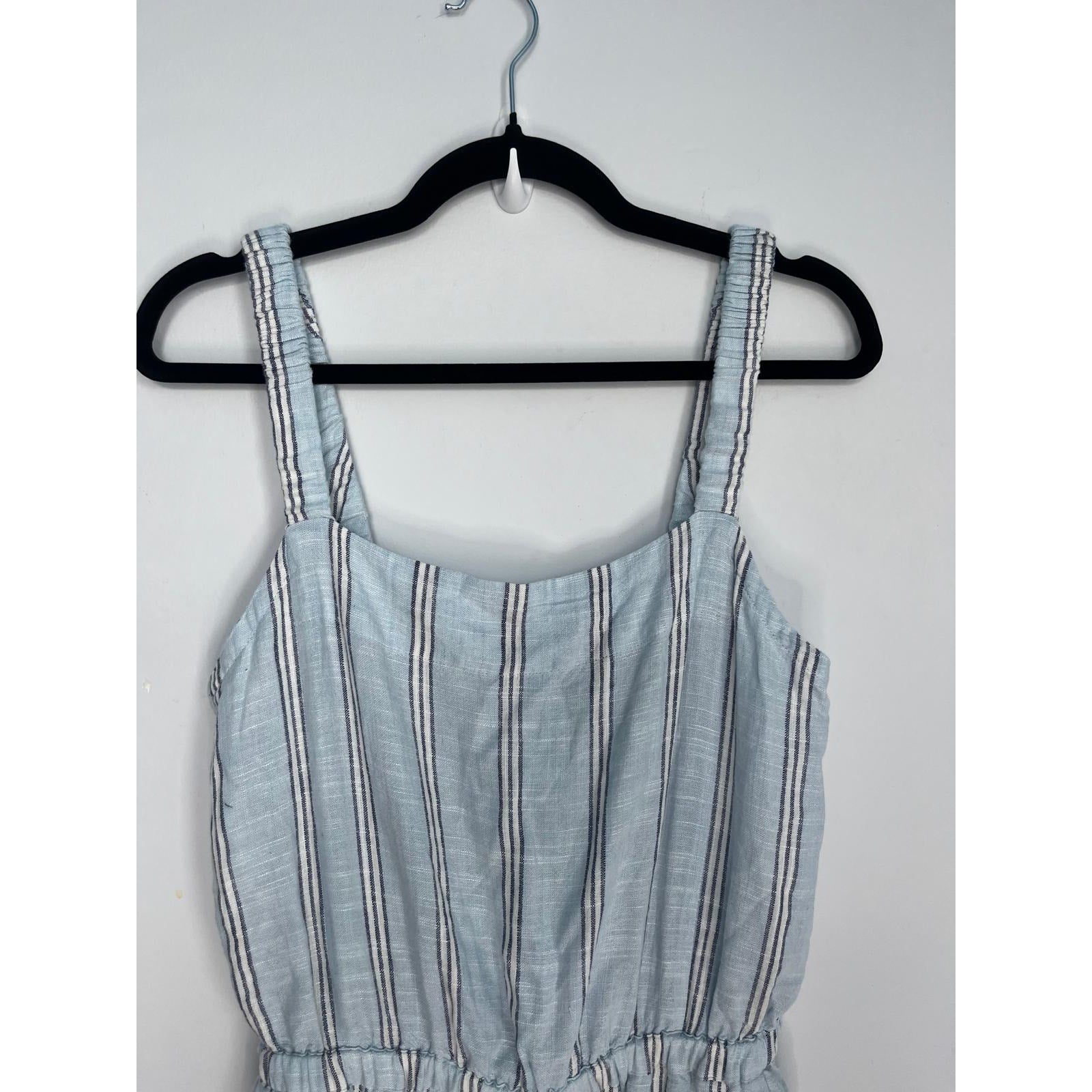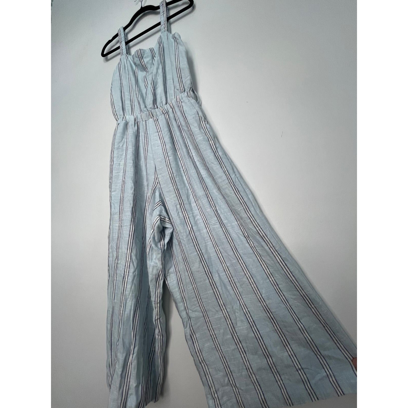 Splendid Striped Jumpsuit Women M Blue White Sleeveless Wide Leg Linen Blend