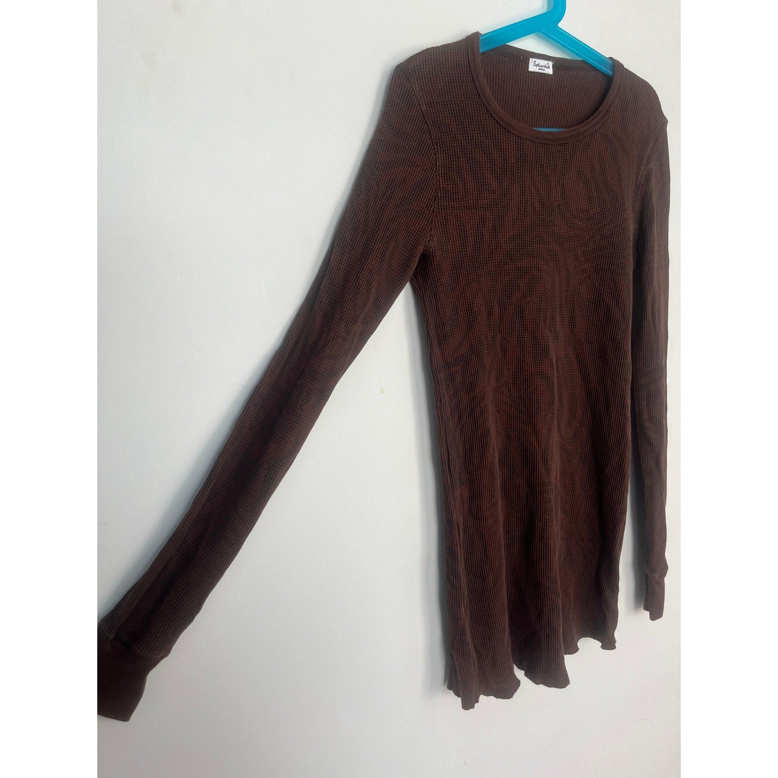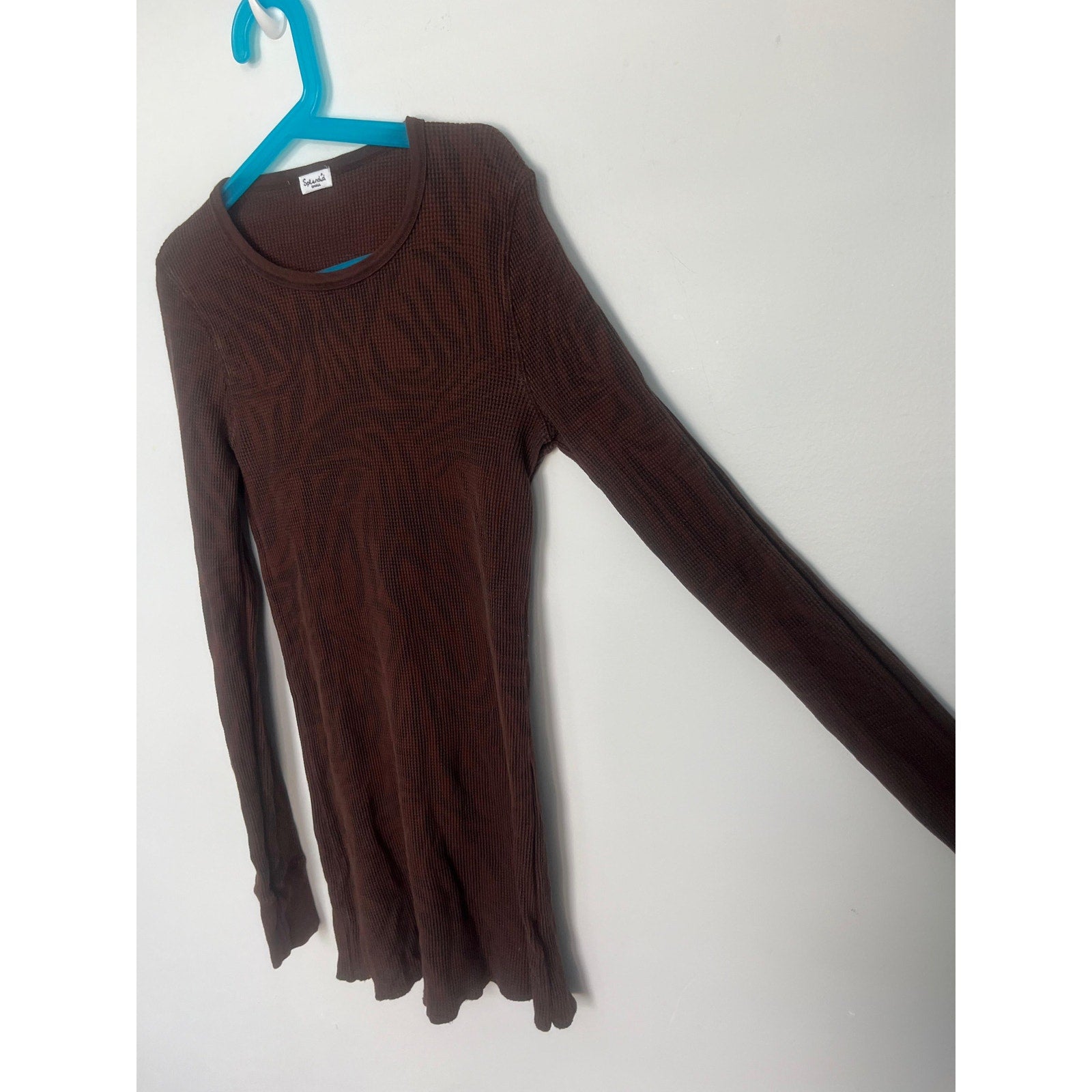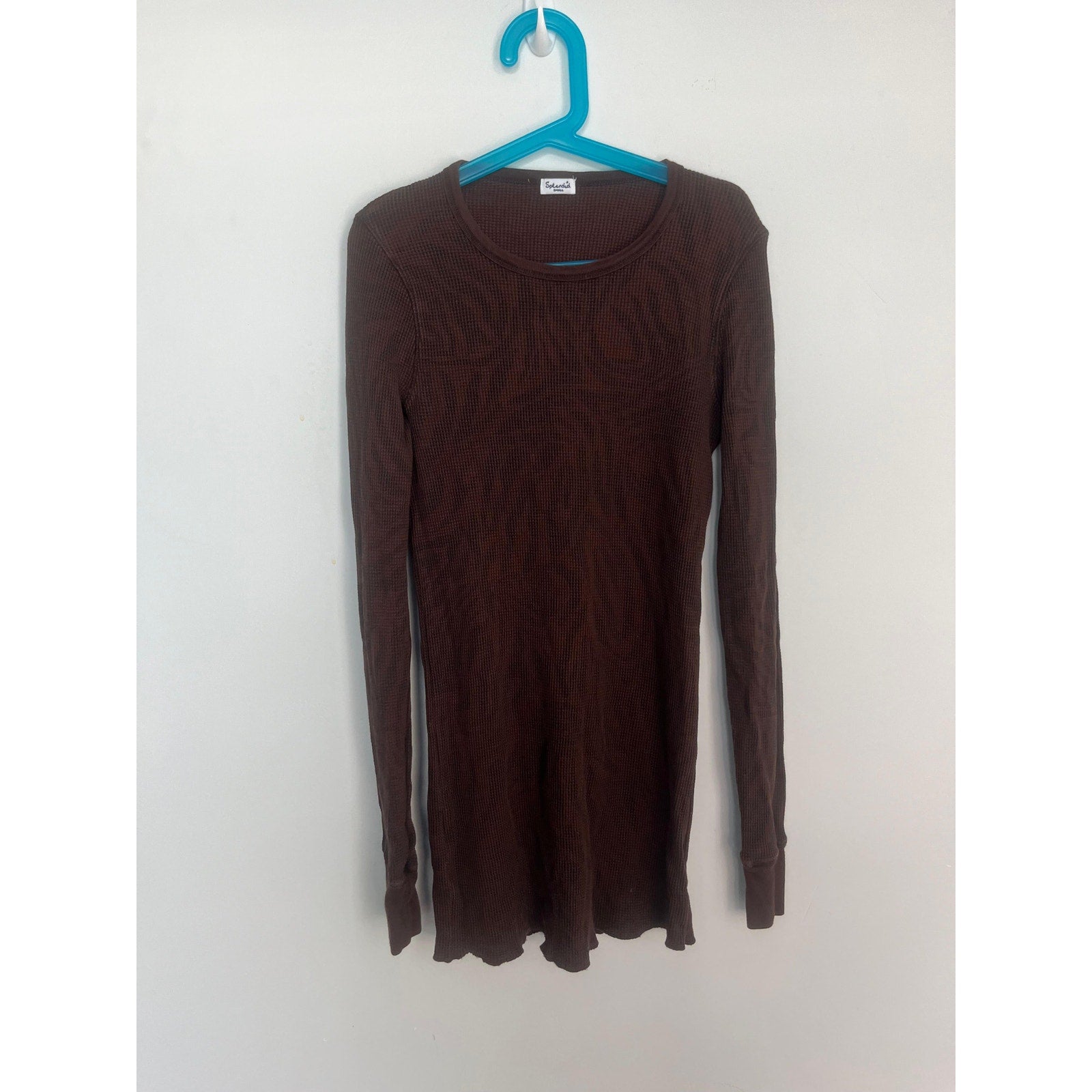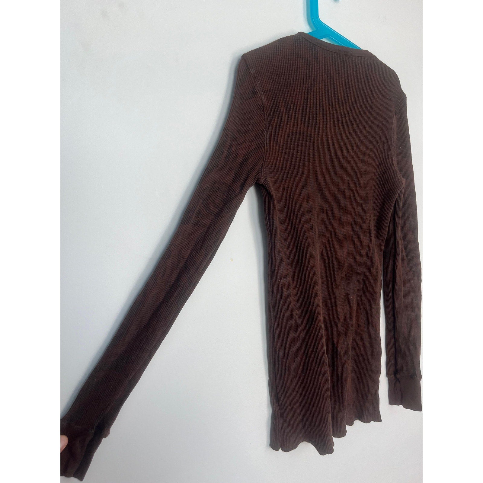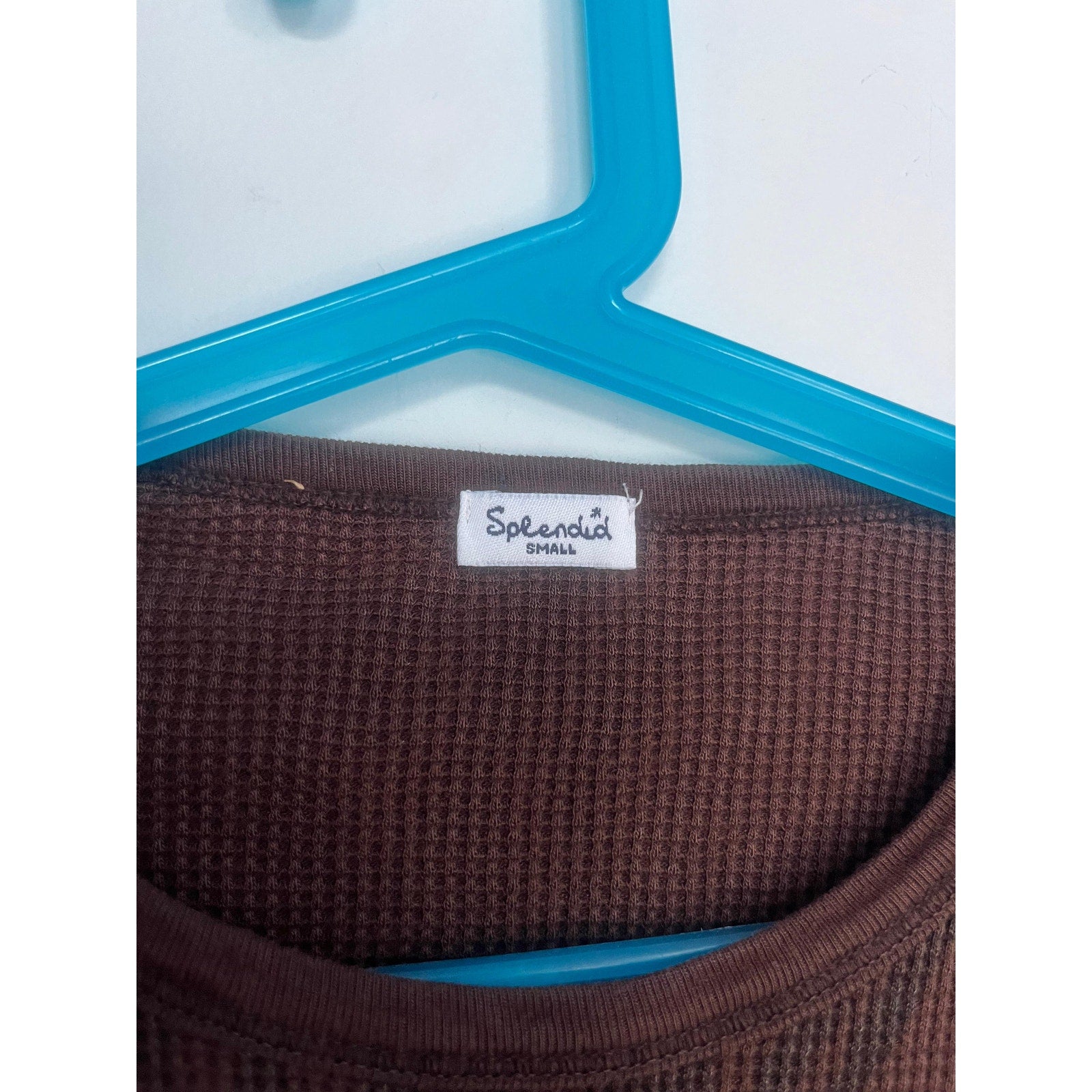 Splendid Thermal Long Sleeve Top Women Small Brown Waffle Knit Basic Layer